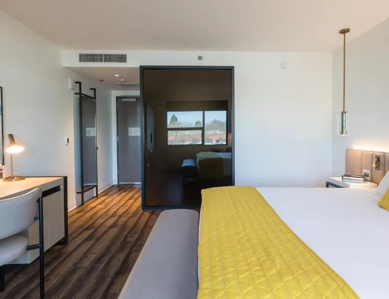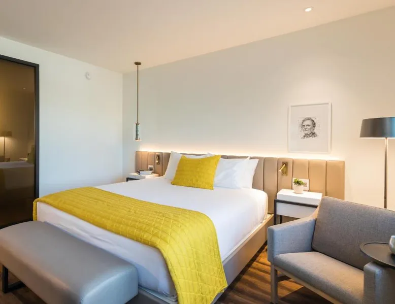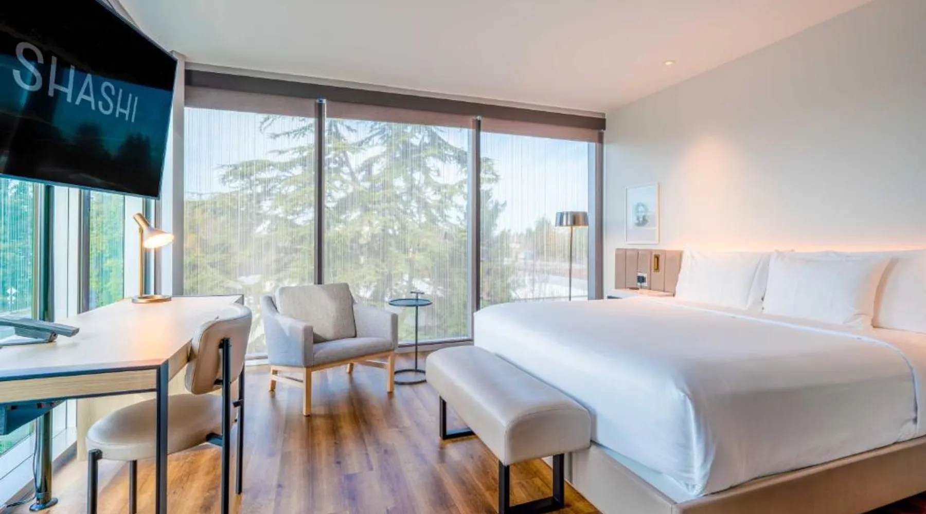 Elegant Accommodations: Shashi Hotel Mountain View Palo Alto in Mountain View offers luxurious rooms with air-conditioning, private bathrooms, and modern amenities. Each room features a work desk, flat-screen TV, and free WiFi, ensuring a comfortable stay. Exceptional Facilities: Guests can enjoy spa facilities, a wellness center, sauna, fitness center, and a year-round outdoor swimming pool. Additional amenities include free bicycles, a restaurant, bar, and outdoor seating areas. Dining Experience: The family-friendly restaurant serves French, American, and Spanish cuisines with vegetarian, vegan, gluten-free, and dairy-free options. Live music and outdoor fireplace enhance the dining experience. Prime Location: Located 8.7 mi from Norman Y. Mineta San Jose International Airport and an 18-minute walk to Shoreline Amphitheater, the hotel is near San Jose Convention Center (14 mi). Guests appreciate the convenient location and attentive staff. Offering free toiletries and bathrobes, this double room includes a private bathroom with a walk-in shower, a hairdryer and slippers. The spacious air-conditioned double room offers a flat-screen TV with streaming services, a private entrance, a seating area, a wardrobe as well as city views. The unit offers 1 bed.