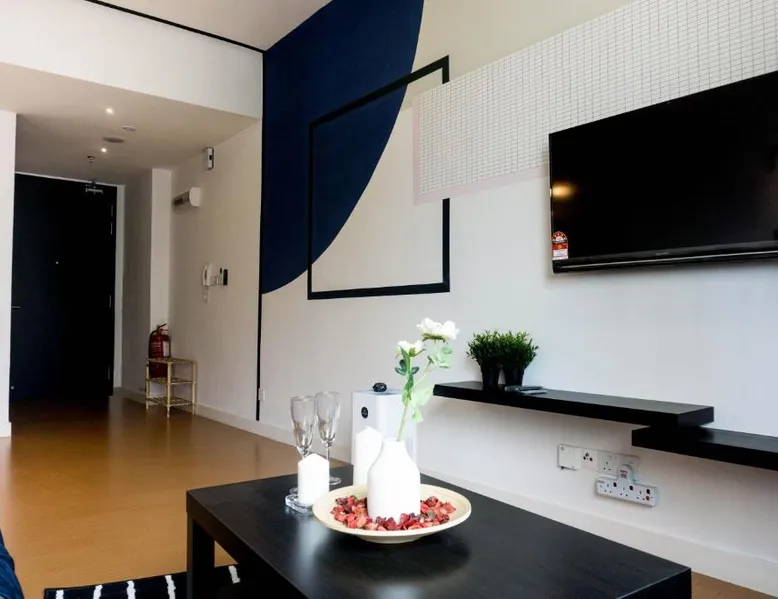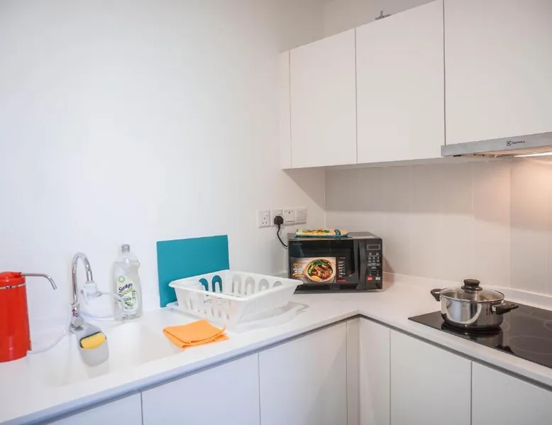 Elegant Accommodations: Manatidur@THE HUB SS2 in Petaling Jaya offers an adults-only apartment with a rooftop swimming pool, fitness center, and lush garden. Free WiFi is available throughout the property. Comfortable Amenities: Guests enjoy air-conditioning, private bathrooms with bidets, and modern amenities such as streaming services and a dining area. Additional facilities include a hot tub, hairdresser, and full-day security. Prime Location: Located 6.2 mi from Sultan Abdul Aziz Shah Airport, the apartment is near Evolve Concept Mall (3.7 mi) and Mid Valley Megamall (5 mi). A restaurant is located in the surroundings, providing convenient dining options. The rooftop pool is the standout feature of this studio. The studio includes a private bathroom fitted with a shower, a bidet and a hairdryer. Meals can be prepared in the well-fitted kitchen, which has a stovetop, a refrigerator, kitchenware and a microwave. The spacious air-conditioned studio offers a flat-screen TV with streaming services, a seating area, a wardrobe, an electric kettle as well as city views. The unit has 1 bed.
