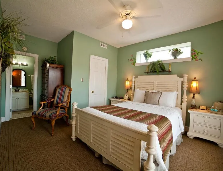 Elegant Accommodations: DeSoto Beach Bed and Breakfast in Tybee Island offers adults-only rooms with private bathrooms, air-conditioning, and sea views. Each room includes a balcony or patio, soundproofing, and modern amenities such as a microwave and TV. Exceptional Facilities: Guests enjoy a sun terrace, lush garden, and a year-round outdoor swimming pool with a view. Free WiFi is available throughout the property, ensuring connectivity. Additional facilities include a lounge, outdoor seating area, and picnic spots. Comfortable Amenities: The bed and breakfast provides free on-site private parking, bicycle parking, and a tour desk. Free toiletries, fruits, and champagne are offered in each room, enhancing the stay experience. Prime Location: Located a few steps from Tybee Island Beach, the property is 25 mi from Savannah/Hilton Head International Airport. Nearby attractions include Savannah Bend Marina (13 mi) and Tidewater Boatworks Marina (14 mi). Guests appreciate the friendly host and excellent service. This suite's standout feature is the pool with a view. Featuring a private entrance, this air-conditioned suite is consisted of of 1 living room, 1 separate bedroom and 1 bathroom with a shower and a hairdryer. This suite features soundproof walls, a dining area, flat-screen TV with cable channels, as well as wine/champagne for guests. The unit offers 1 bed.