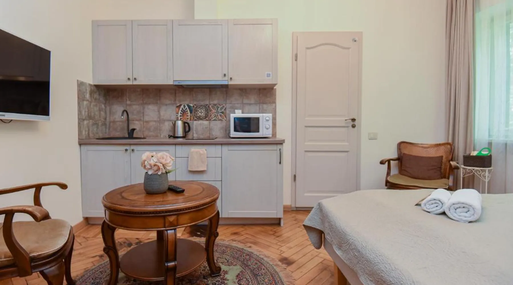KUBU svečių namai offers accommodations in Klaipėda. It features a sauna and a hot tub that guests can use at an extra charge. All rooms include a flat-screen TV. Some units have a seating area to relax in after a busy day. You will find a kettle in the room. New Ferry Terminal for pedestrians and cars is 2.2 mi from KUBU svečių namai, while Akropolis Shopping and Entertainment Center is 2.1 mi from the property. The nearest airport is Palanga International Airport, 17 mi from the property. The family room features a seating area, a dining area, as well as a private bathroom boasting a shower and a hairdryer. Guests can make meals in the kitchenette that features a stovetop, a refrigerator, kitchenware and a microwave. The family room offers a flat-screen TV, a wardrobe, an electric kettle, heating as well as an inner courtyard view.