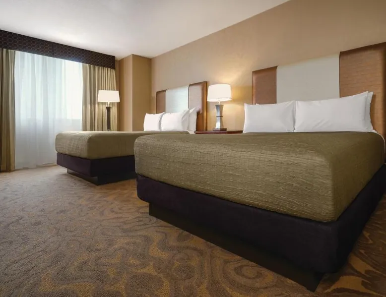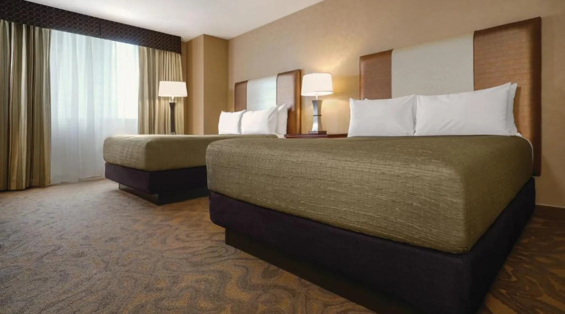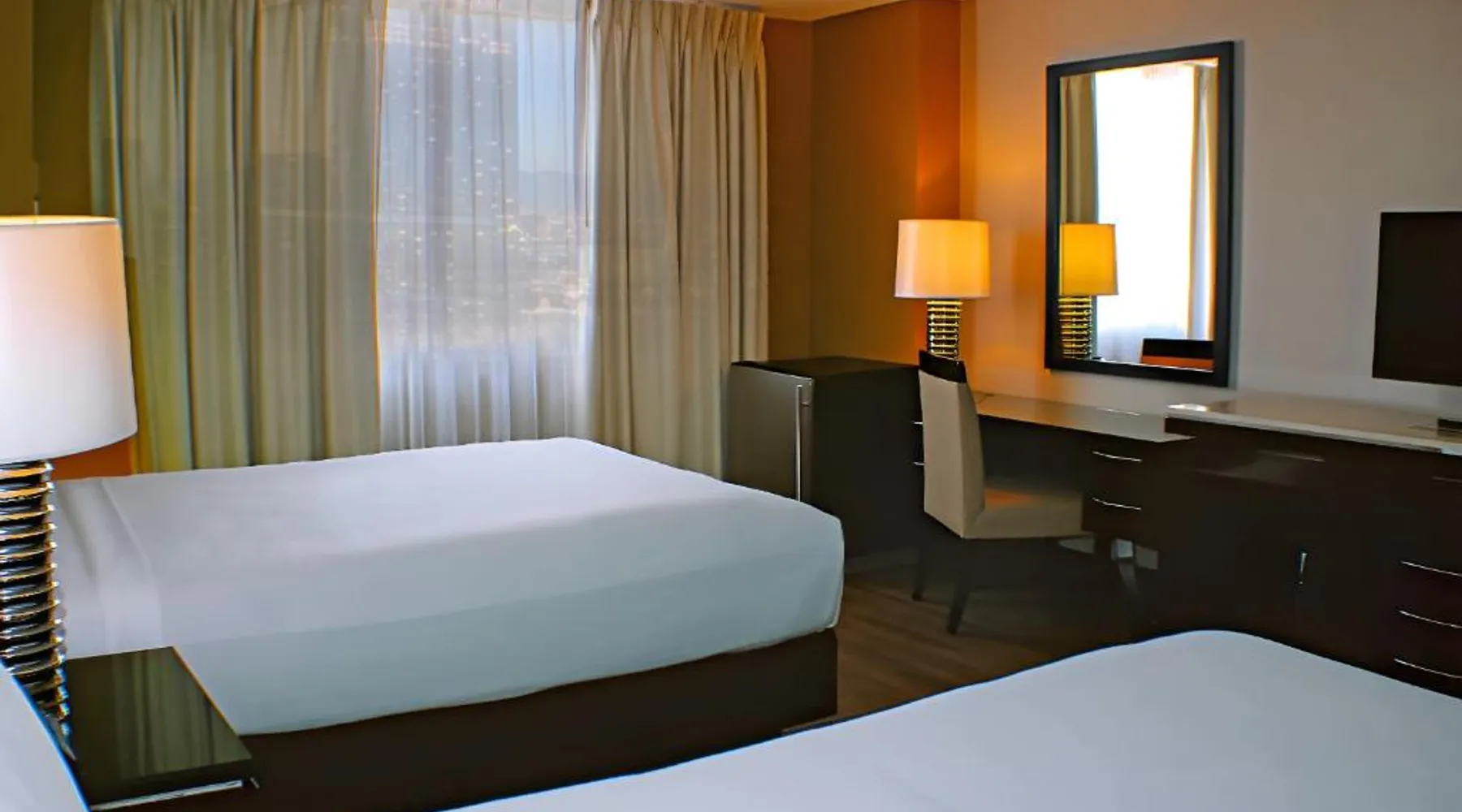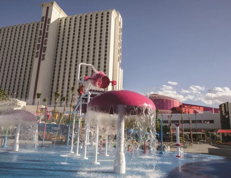 This Las Vegas Strip hotel is 5 minutes' drive from the Las Vegas Convention Center. It features Adventuredome, an indoor theme park with a large roller coaster, plus circus-themed acts. Circus Circus Splash Zone pool experience features a 50 foot waterslide tower with three slides, a splash pad water playground, shaded cabanas, hot tubs and two pools. At Circus Circus Las Vegas, each spacious nonsmoking guest room is equipped with a cable TV. Circus Circus features 40,000 square feet of shopping at the Promenade. The Carnival Midway is also on site and features 200 popular and classic games for all ages. There is also an outdoor pool available and free parking. Slots and table games are located at the Circus Circus Casino. Guests can watch races and sports on 32 large-screen TVs as well as a 103-inch TV that shows the game of the day. A 40-inch flat-screen TV is featured in this nonsmoking room. An in-room safe and ironing facilities are also included. Valid for stays between June 19th, 2025, and September 2nd, 2025, each room includes a Buy 1 Get 1 Free Adventuredome pass, also if you buy a $30 Midway Game Card, you will receive an extra $20 in game credits.