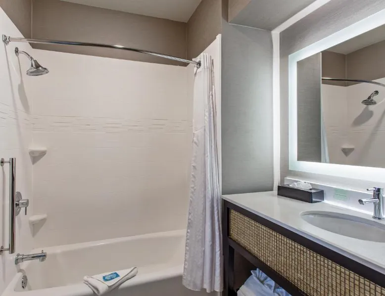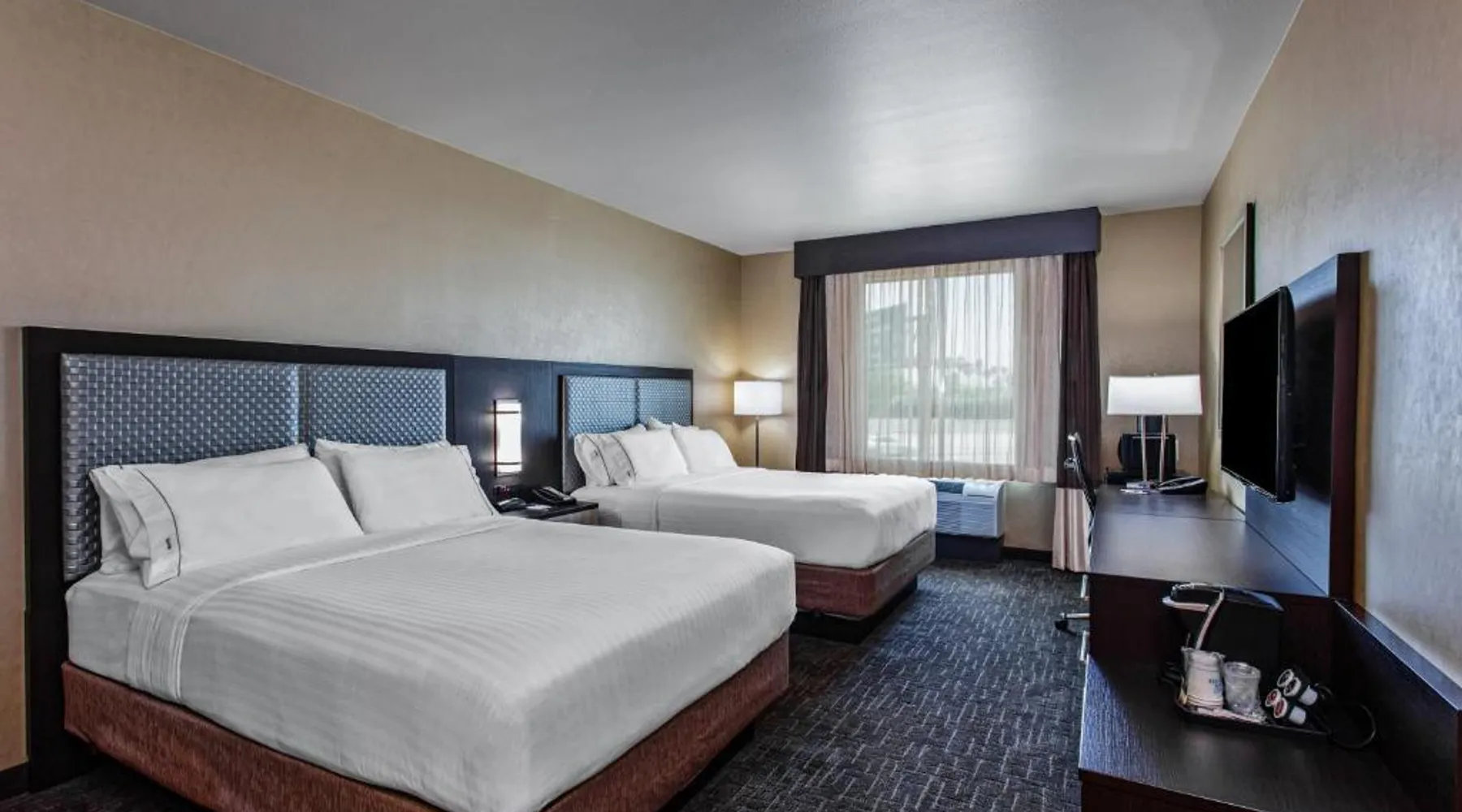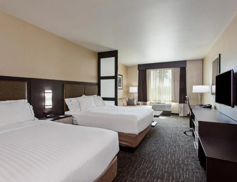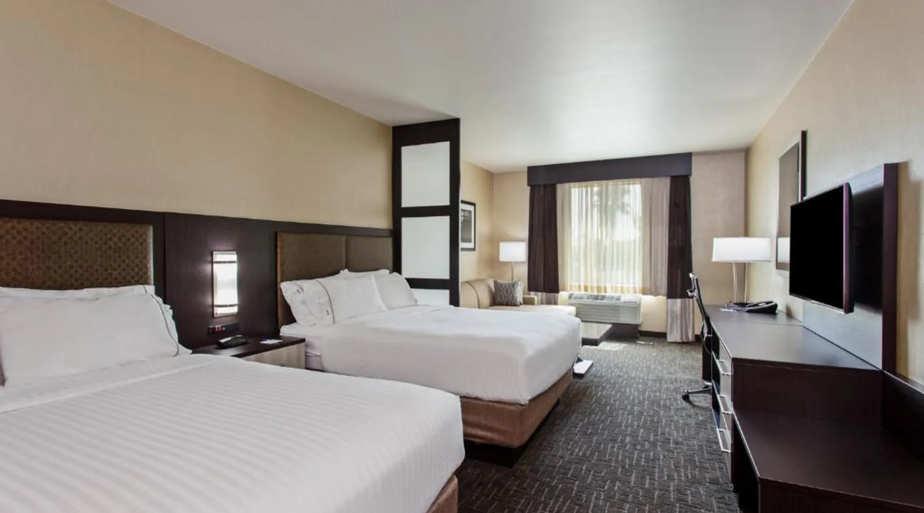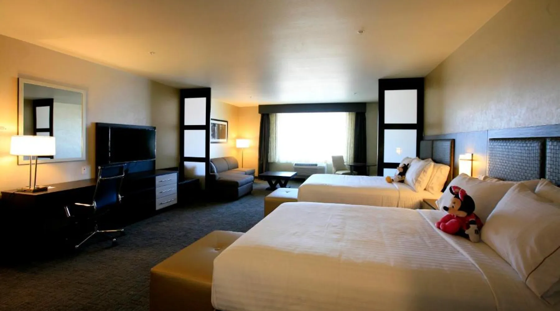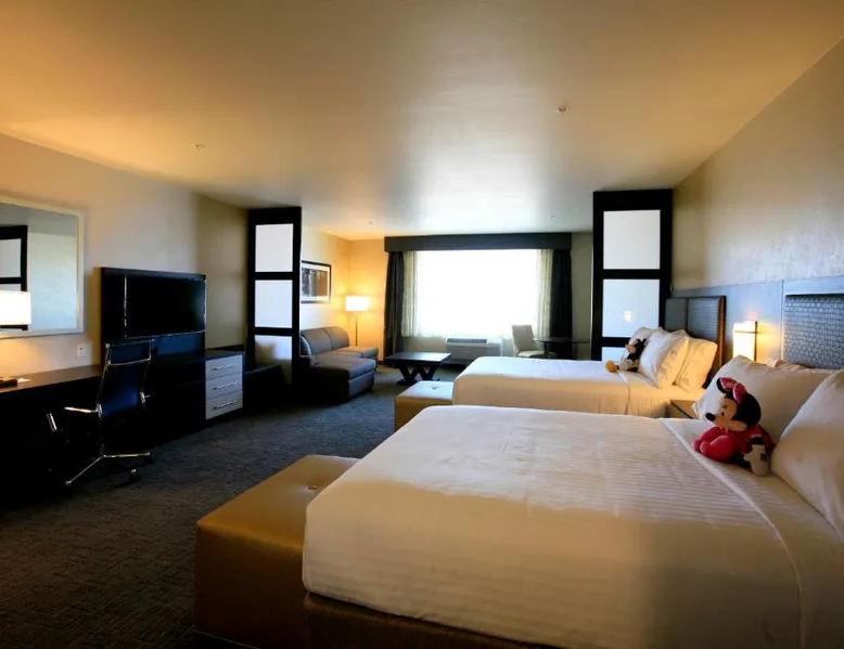 Offering an outdoor pool and a fitness center, Holiday Inn Express Anaheim Resort Area is located 10 minutes' walk from Disneyland's Harbor Blvd entrance. A complimentary breakfast buffet is available every morning at the property. Every air-conditioned room at the property is complete with a microwave, a flat-screen TV, a mini refrigerator, a coffee & tea maker, and an iron with ironing facilities. Guests can enjoy dining areas and sofa bed in every room as well. At Holiday Inn Express Anaheim Resort Area you will find a mini-market, a fitness center, a business center, and guest laundry facilities. The hotel is 2625 feet from Disney California Adventure and 0.9 mi from Anaheim Convention Center. Los Angeles International Airport is 30 mi away. This air-conditioned suite is consisted of of a flat-screen TV with cable channels and a private bathroom. The unit has 2 beds.