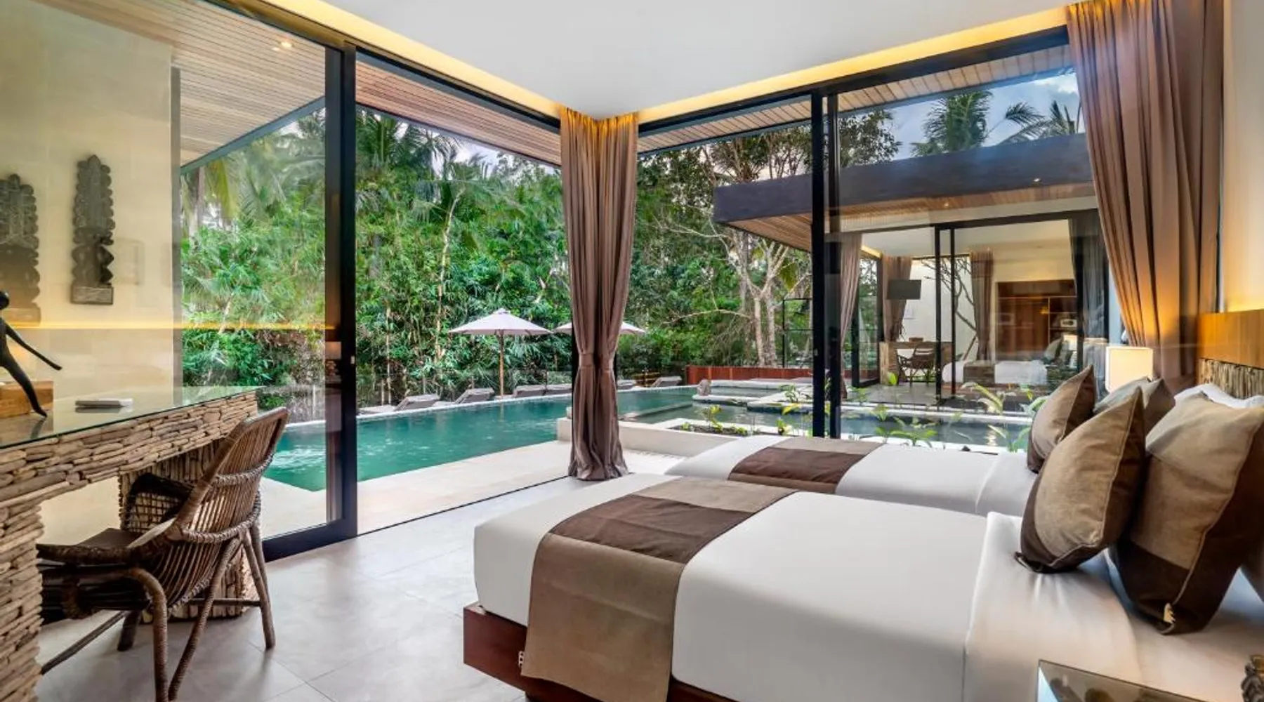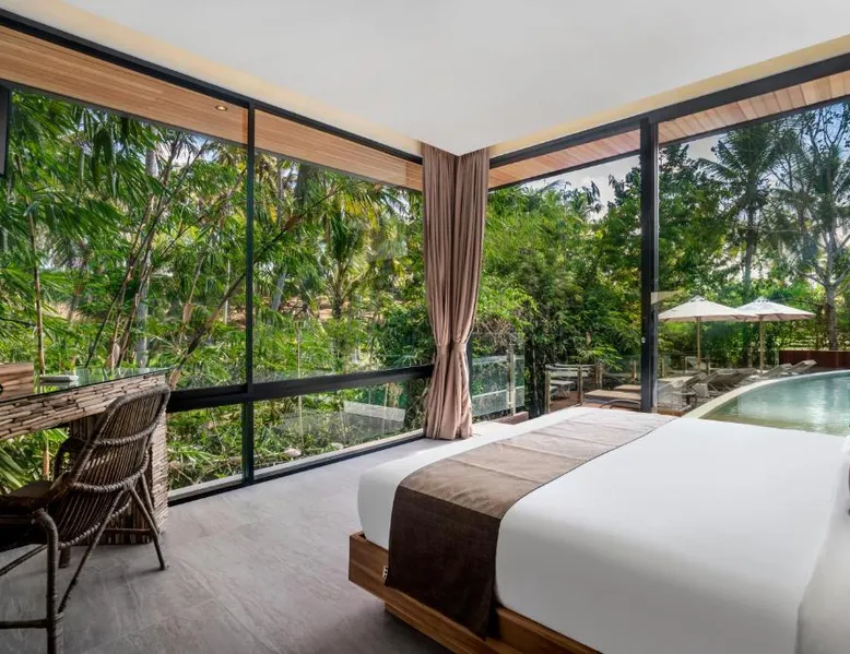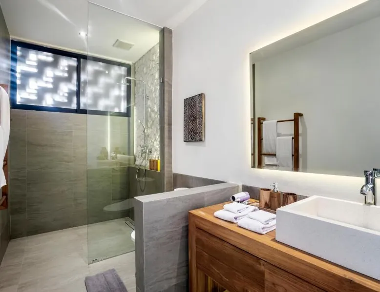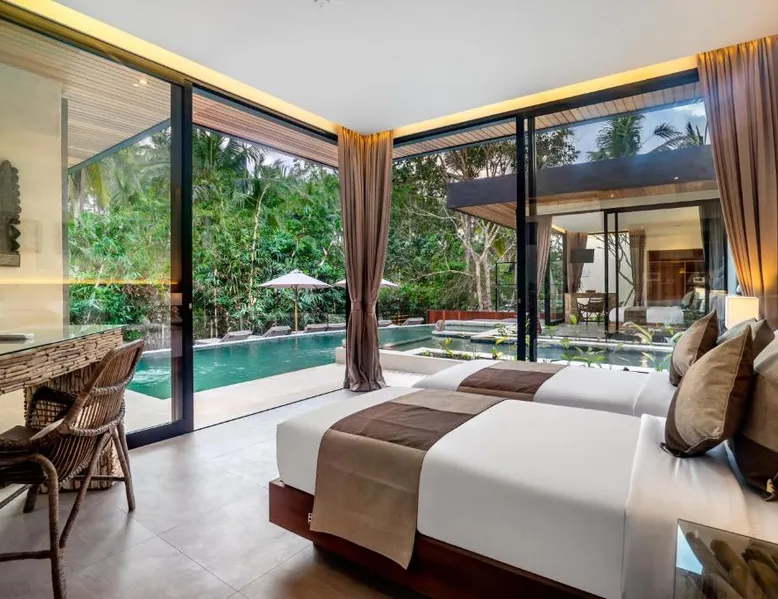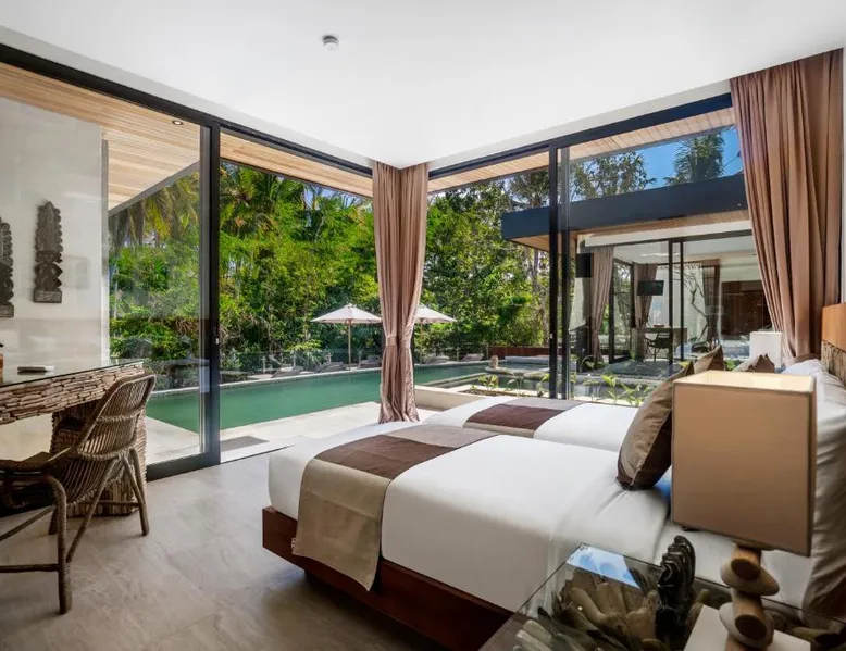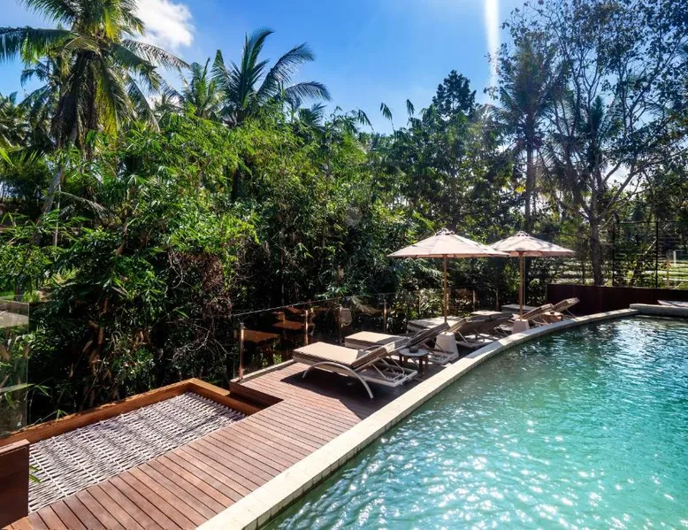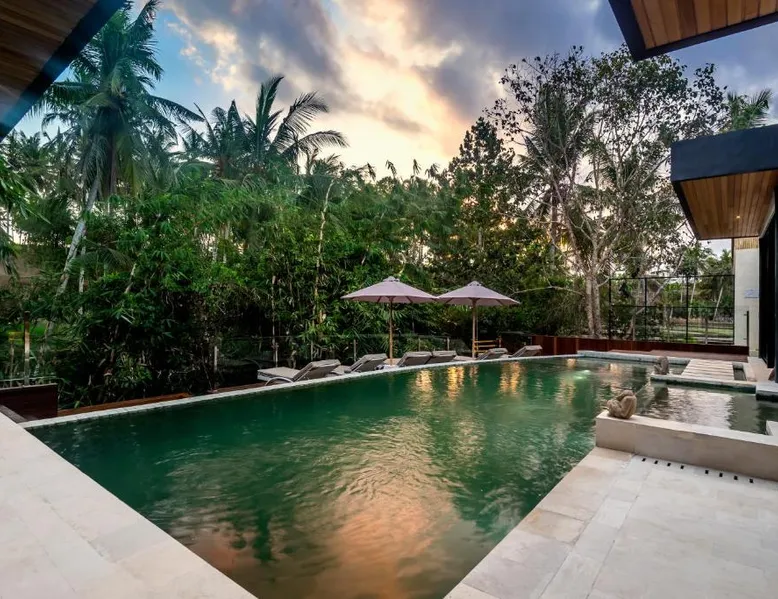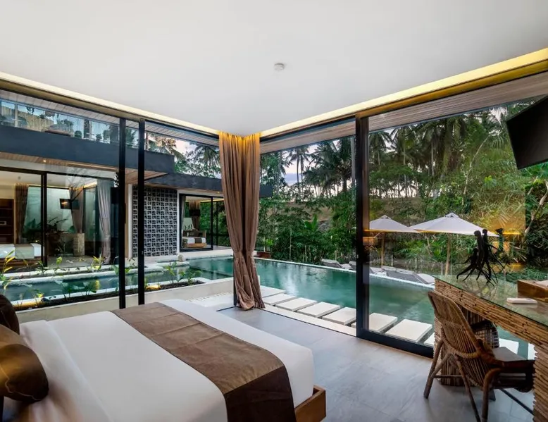 Spacious Accommodations: Villa Balinese Monkeys by BaliSuperHost in Ubud offers a spacious apartment with three bedrooms and three bathrooms. The property features a terrace, pool with a view, and a fully equipped kitchen. Exceptional Facilities: Guests can enjoy a swimming pool with a view, sun terrace, and free WiFi. Additional amenities include air-conditioning, a work desk, and a dining area. Convenient Location: Located 20 mi from Ngurah Rai International Airport, the apartment is close to attractions such as Monkey Forest Ubud and Goa Gajah, both 3.1 mi away. Ubud Palace and Saraswati Temple are 3.7 mi from the property. This villa's special feature is the pool with a view. Featuring 3 bedrooms, this spacious villa offers 3 bathrooms with a shower, a seating area and terrace where you can relax. In the well-equipped kitchen, guests will find a stovetop, a refrigerator, kitchenware and an oven. The air-conditioned villa provides a flat-screen TV, a private entrance, a dining area, a safe deposit box as well as garden views. The unit has 3 beds.