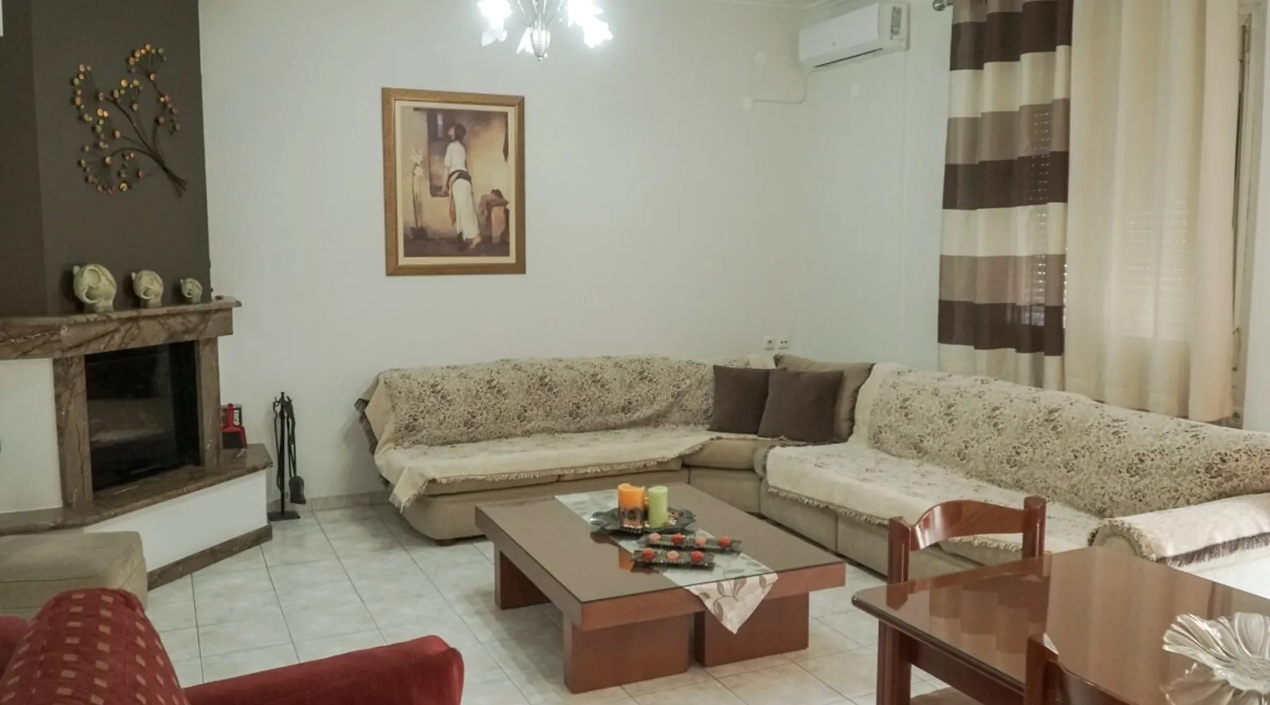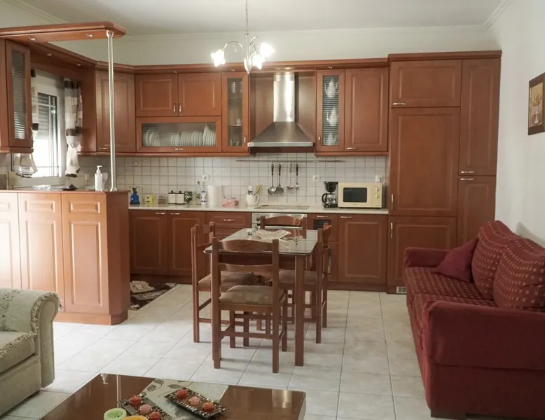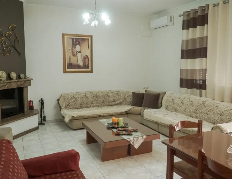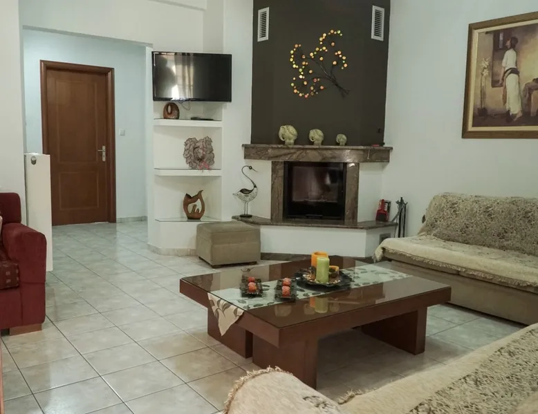 Explore the town of Kalampaka and the Meteora complex with this lovingly designed apartment as your base. Ideally located just a few mins from the center of the town and the monasteries, and literally just a breath away from all the major attractions of the town, our house provides everything our guests could ask for - all the conveniences, plus a breathtaking view of the rocks. As for entertainment options, you’ll find a great variety of restaurants, cafes, and shops right at your doorstep. The space Our house has been carefully built and designed to offer our guests the best accommodation experience. It's very spacious - ideal for families and groups of friends. It offers a very big dining room with three sofas - one convertible two-seater and a corner one. The living room is also equipped with a beatiful energy fireplace that can warm up your winter nights and create a cozy atmosphere for your precious relaxing moments at home, after a long day of exploration and sightseeing. The kitchen is really spacious ansd offers everything you need to ...feel like home. All kitchen- and tableware are provided. Electric oven, microwave oven, coffee maker are also provided. The house also offers two bedrooms - one with three single beds, and one with a comfy double bed. The bathroom comes with a shower and there is also a washing machine that you can use for your laundry. As for the balconies, the one in the front offers mesmerizing and insta-worthy views of Meteora rocks that will take your breath away, while the one in the back overlooks the Koziakas Mountain in all its vastness and glory. All rooms are airconditioned, while the fireplace is connected to the heating system and can warm up the house in the coziest of ways. Finally, there is hot water 24/7. Guest access Our dear guests have access to all areas of the house. Registration Details 00000917489