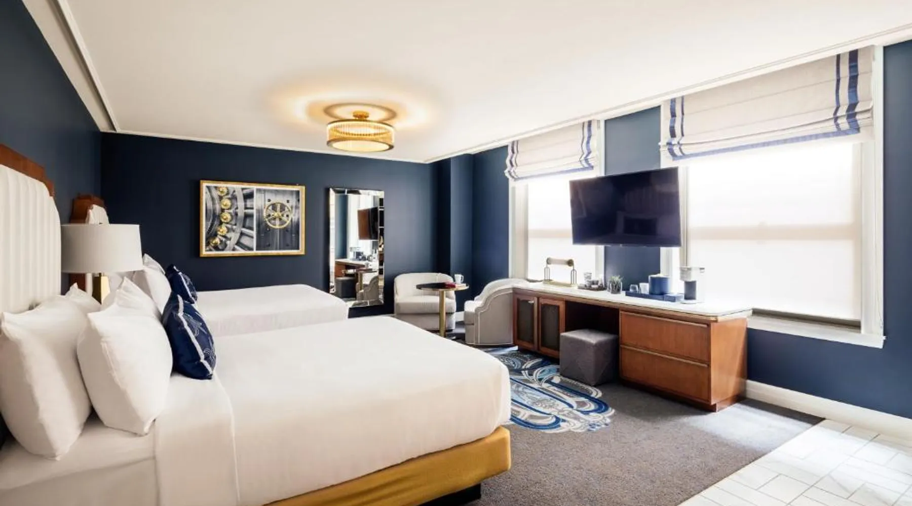 Comfortable Accommodations: The National, Autograph Collection in Oklahoma City offers family rooms with air-conditioning, private bathrooms, and modern amenities. Each room includes a mini-bar, coffee machine, and free toiletries. Dining Experience: Guests can enjoy Italian and Steakhouse cuisines at the family-friendly restaurant. The modern and romantic ambiance serves lunch, dinner, and cocktails. Breakfast includes warm dishes, fresh pastries, pancakes, and more. Facilities and Services: The hotel features a fitness center, bar, and coffee shop. Additional services include a 24-hour front desk, room service, and paid on-site parking. Will Rogers World Airport is 7.5 mi away. Nearby attractions include Oklahoma City Museum of Art and Oklahoma City National Memorial. Featuring free toiletries and bathrobes, this double room includes a private bathroom with a walk-in shower and a hairdryer. The spacious double room features air conditioning, a private entrance, soundproof walls, a mini-bar and a flat-screen TV with streaming services. The unit has 1 bed.