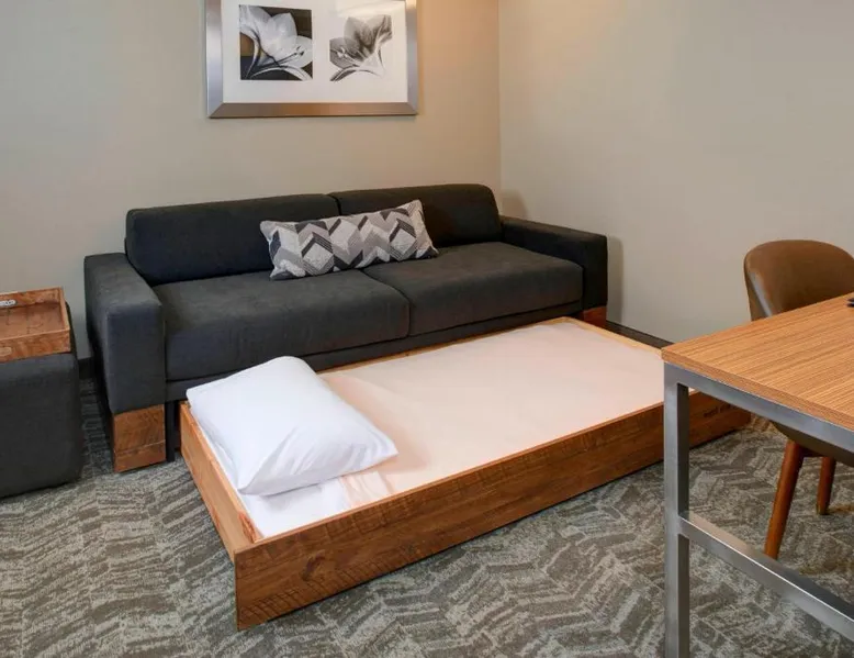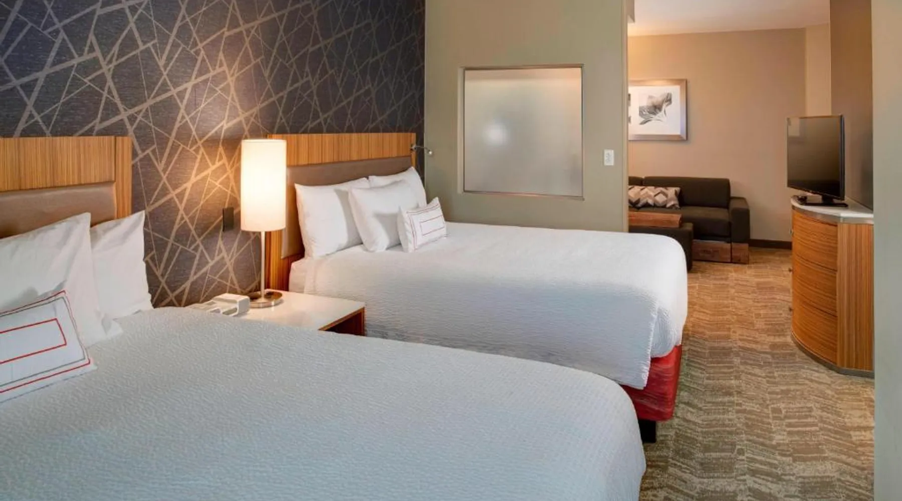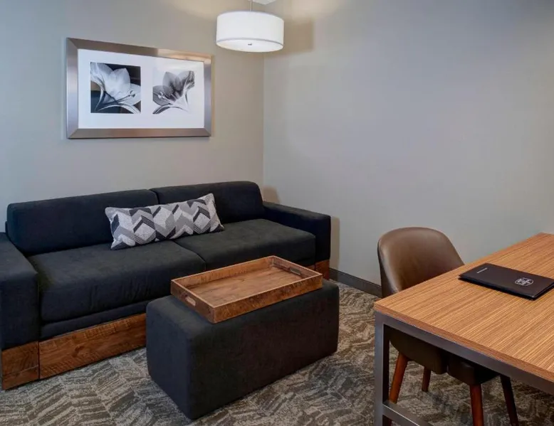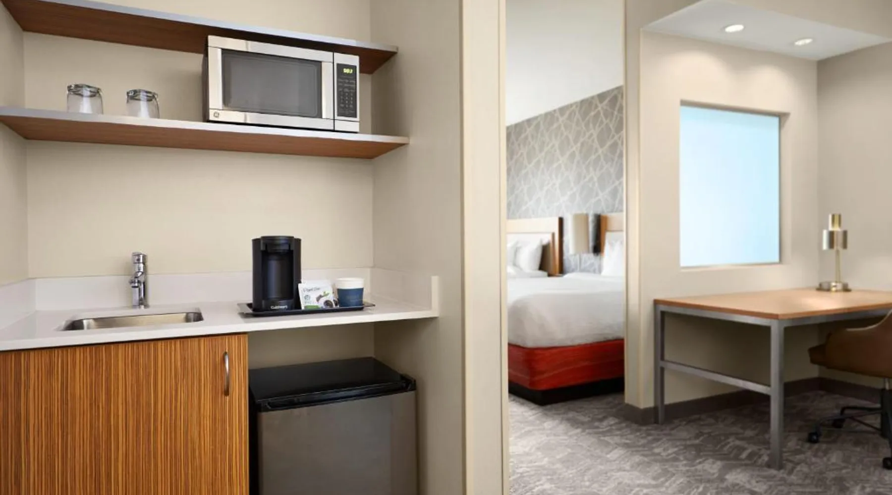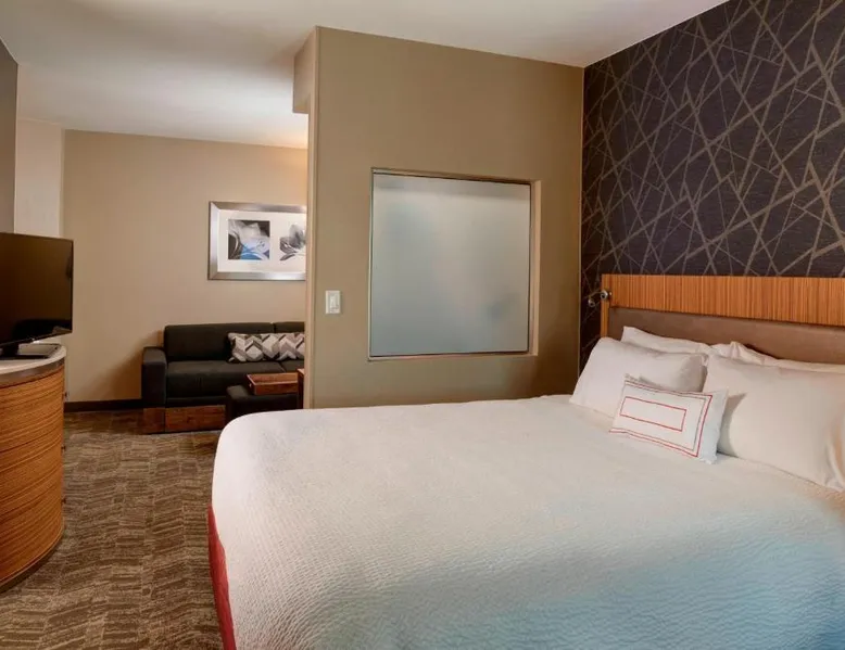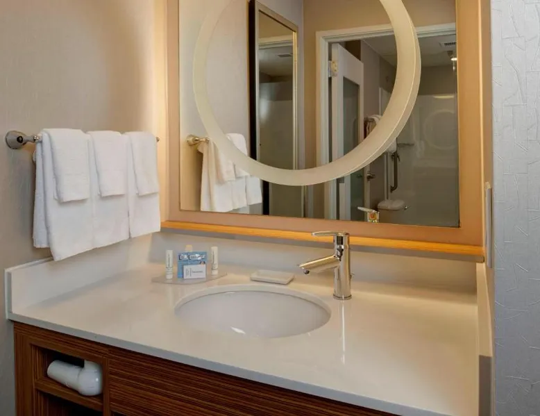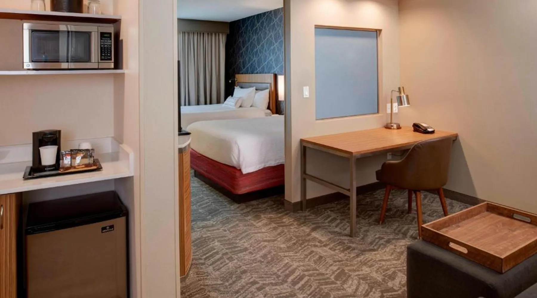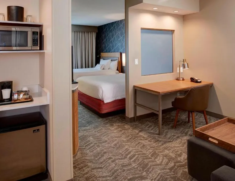 Comfortable Accommodations: SpringHill Suites St. Louis Brentwood in Brentwood offers family rooms with air-conditioning, private bathrooms, and free WiFi. Each room includes a work desk, refrigerator, and TV. Dining and Amenities: The family-friendly restaurant serves American cuisine with a buffet breakfast. Guests can also enjoy a fitness center and free toiletries. Additional facilities include a child-friendly buffet, electric vehicle charging station, and paid on-site parking. Prime Location: Located 9.3 mi from St. Louis Lambert International Airport, the hotel is near attractions such as St. Louis Zoo (3.1 mi) and Gateway Arch (9.9 mi). Guests appreciate the room cleanliness, comfort, and convenient location. Boasting free Wi-Fi and cable TV, this room is equipped with tea and coffee-making facilities, a refrigerator and a microwave.