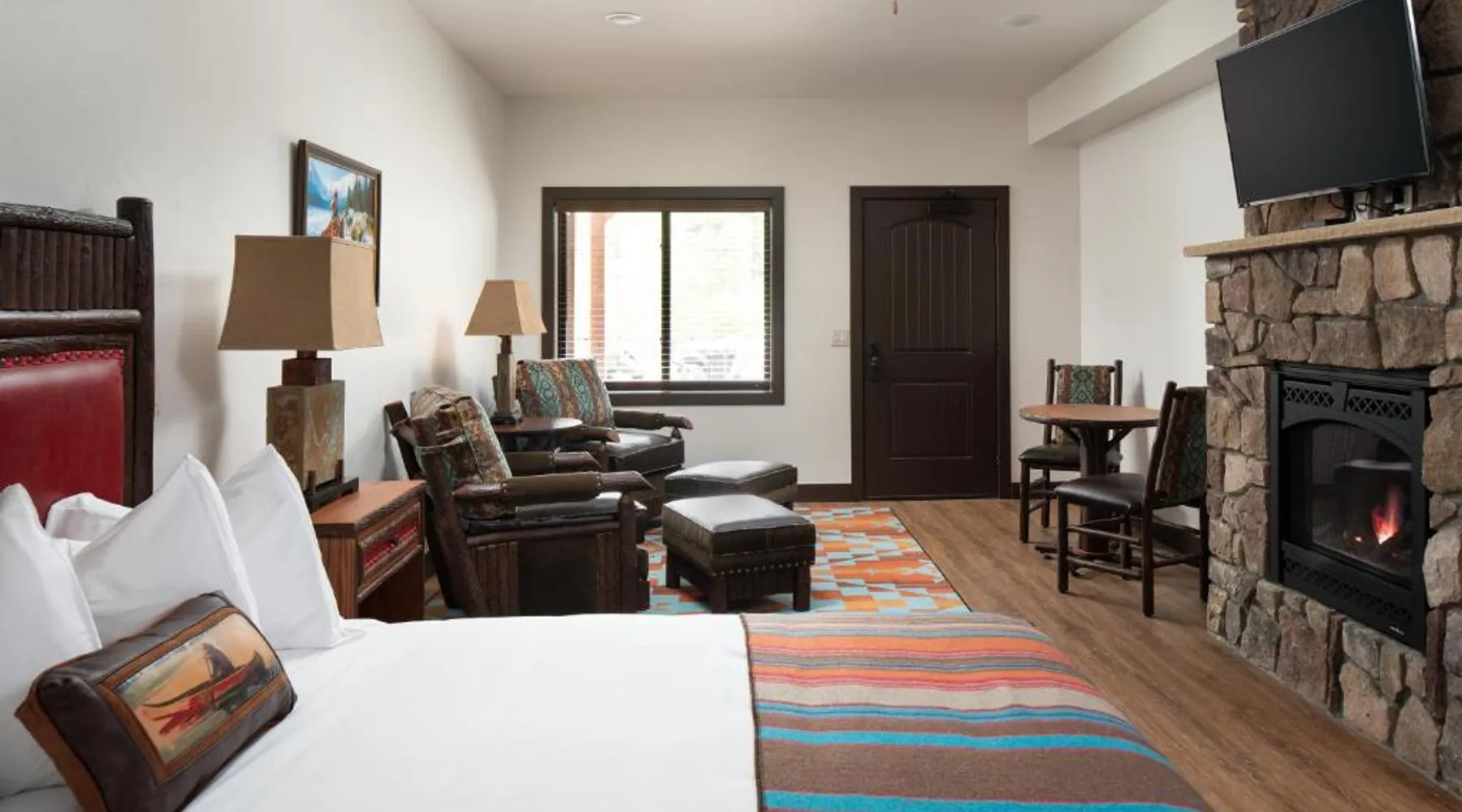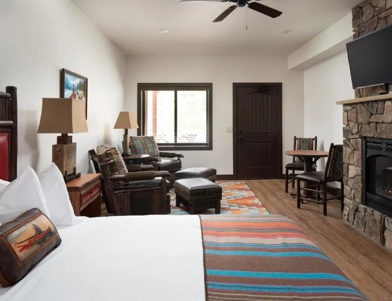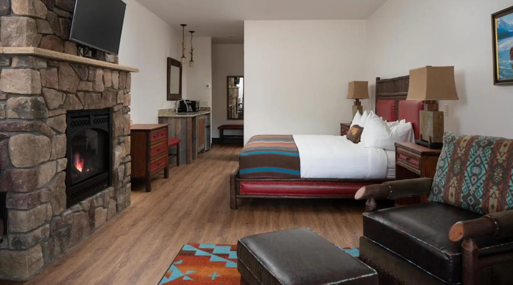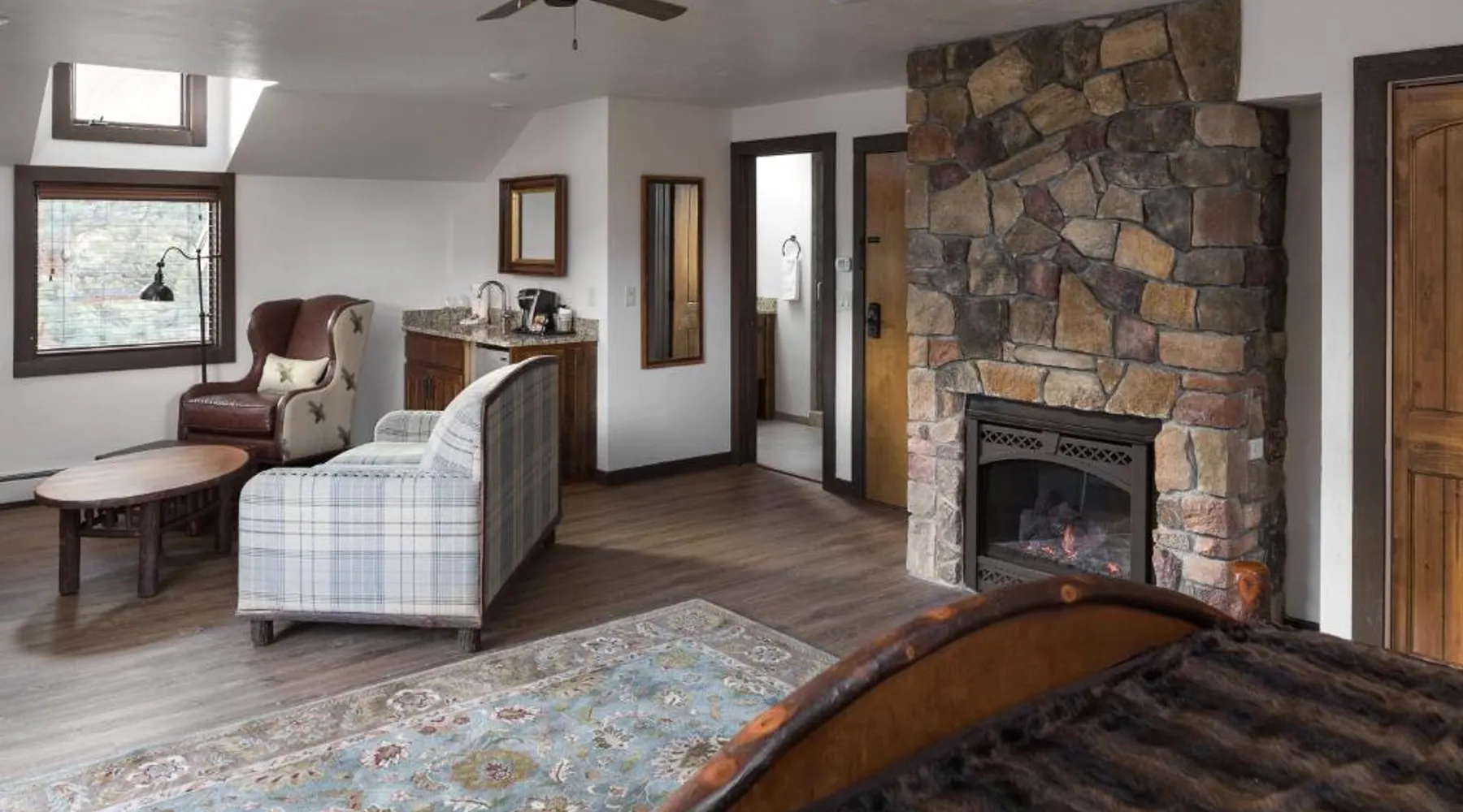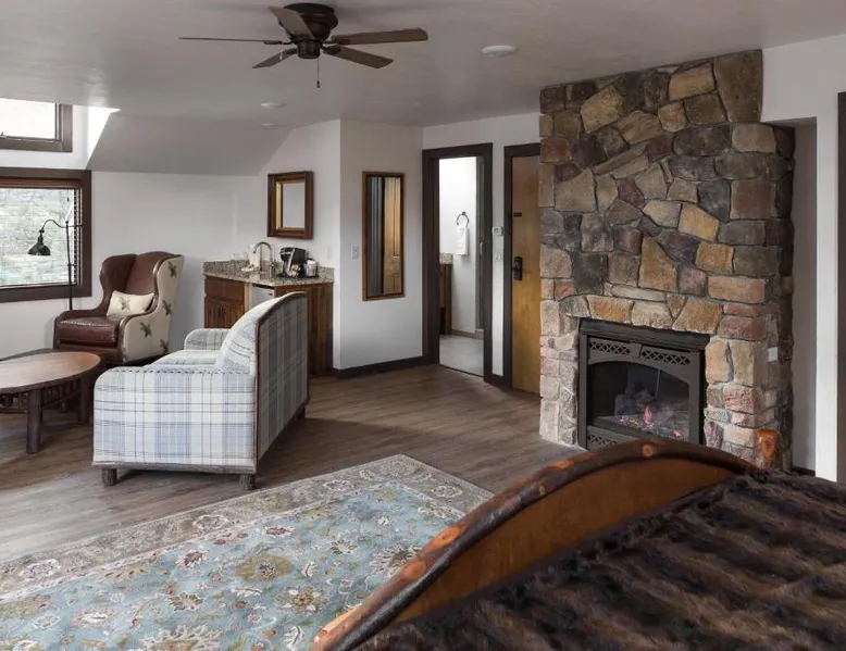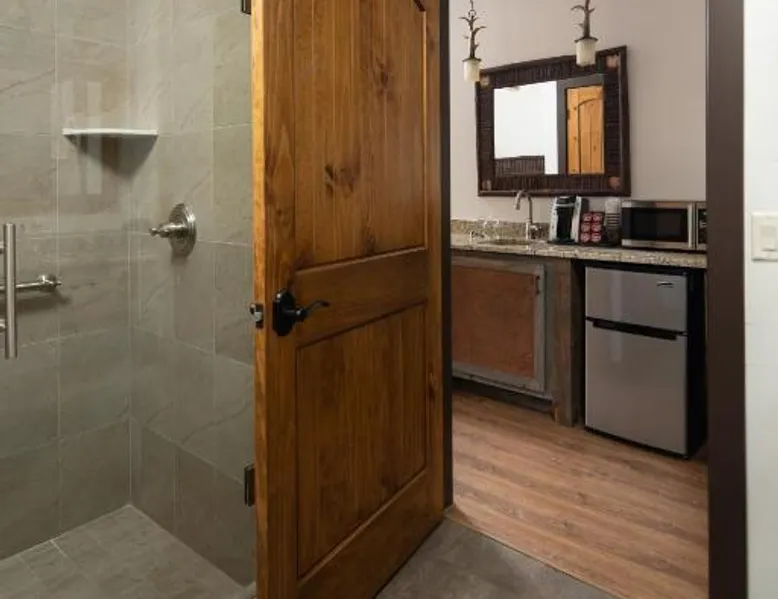 Comfortable Accommodations: The Landing at Estes Park in Estes Park offers family rooms with private bathrooms, air-conditioning, and balconies. Each room includes a tea and coffee maker, refrigerator, and TV. Exceptional Facilities: Guests enjoy a sun terrace, outdoor fireplace, and free WiFi. Additional amenities include a picnic area, outdoor seating, and free on-site parking. Convenient Location: Located 73 mi from Denver International Airport, the lodge is near Trout Haven Fishing Pond (1.1 mi) and Rocky Mountain Adventures (3.7 mi). Highly rated for its attentive staff and excellent service. This suite has a tea/coffee maker, satellite TV and a bathroom with a European shower. Please note that this room is adults only and cannot accommodate children.