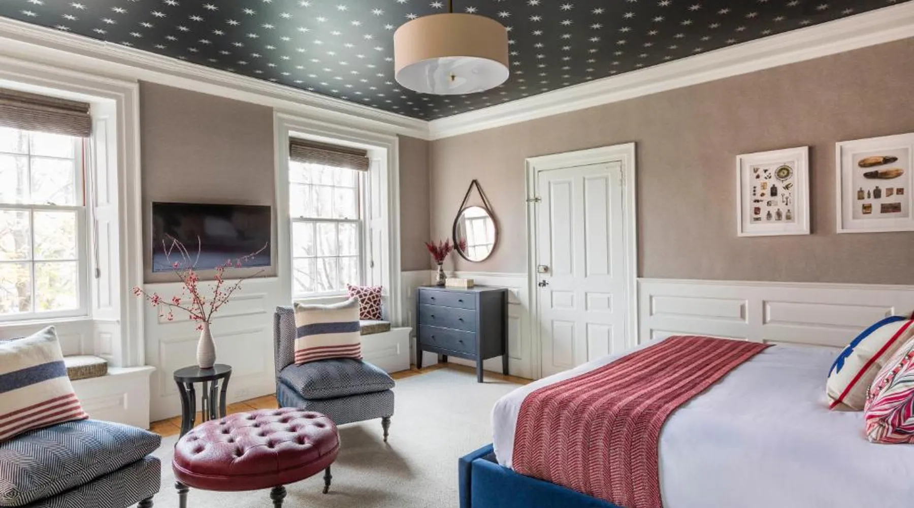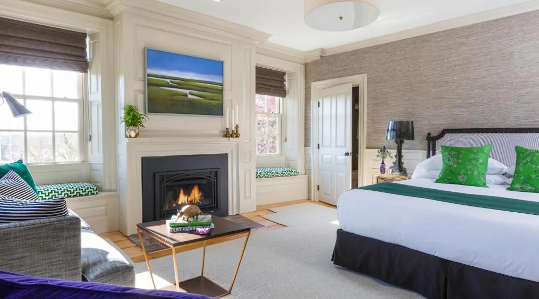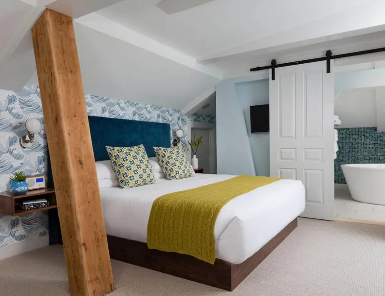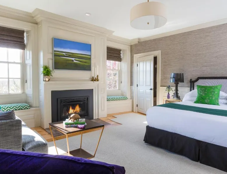 Comfortable Accommodations: The Merchant in Salem offers air-conditioned rooms with private bathrooms, bathrobes, and city views. Each room includes a sofa bed, walk-in shower, and streaming services. Essential Facilities: Guests enjoy free WiFi, daily housekeeping, express check-in and check-out, and an outdoor seating area. Additional amenities include a fireplace, hairdryer, and carpeted floors. Prime Location: Located 14 mi from Logan Airport, the inn is near Glendale Cove Beach (1.1 mi), Peabody Essex Museum (5-minute walk), and The House of the Seven Gables (0.7 mi). Cambridge College is 14 mi away. This suite features an iPod dock, fireplace and air conditioning.