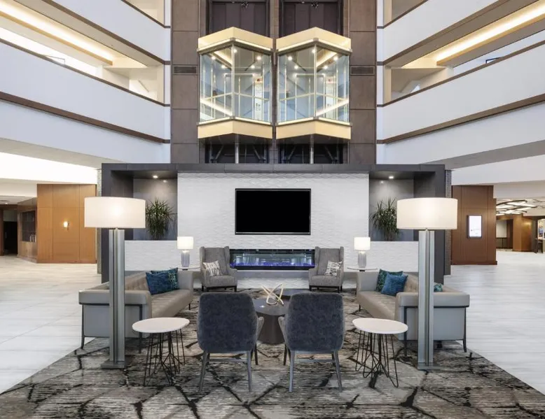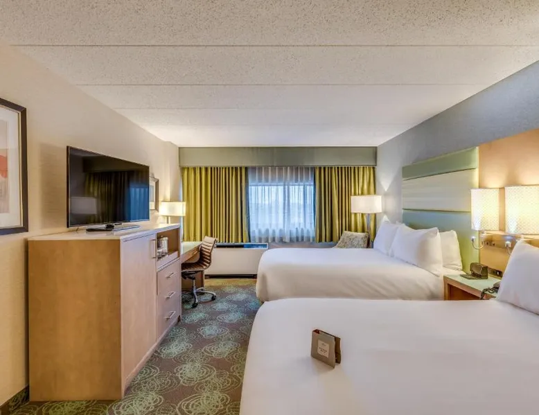 Comfortable Accommodations: Crowne Plaza Lansing by IHG in Lansing offers rooms with air-conditioning, private bathrooms, and modern amenities. Each room includes a refrigerator, tea and coffee maker, and free WiFi. Dining and Leisure: Guests can enjoy an American restaurant with a modern ambiance, serving lunch and dinner. The on-site bar provides a relaxing atmosphere. Additional facilities include a fitness center, indoor swimming pool, and hot tub. Convenient Location: Located 5.6 mi from Capital Region International Airport, the hotel is near Michigan State University (9.3 mi) and Wharton Center (9.9 mi). Free on-site private parking is available. Guests appreciate the attentive staff and room cleanliness. Offering a roll-in shower, this hearing accessible room includes a 48-inch flat-screen cable TV and free Wi-Fi. Tea and coffee-making facilities, a refrigerator and a microwave are also provided.