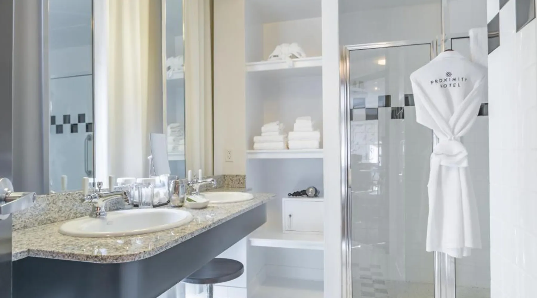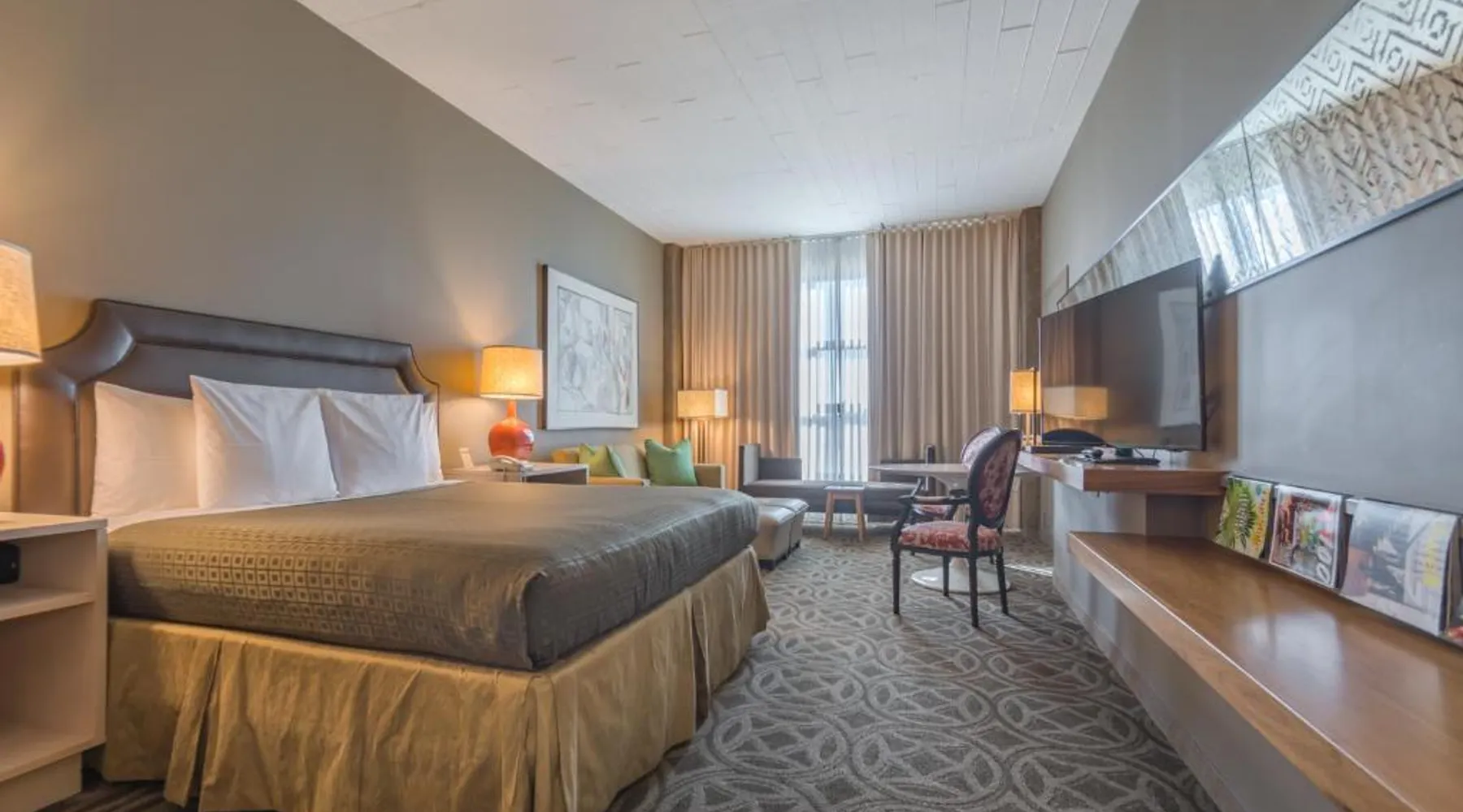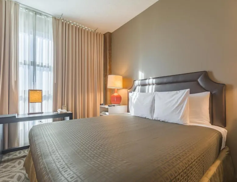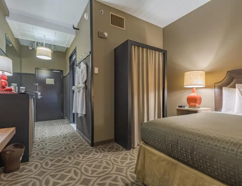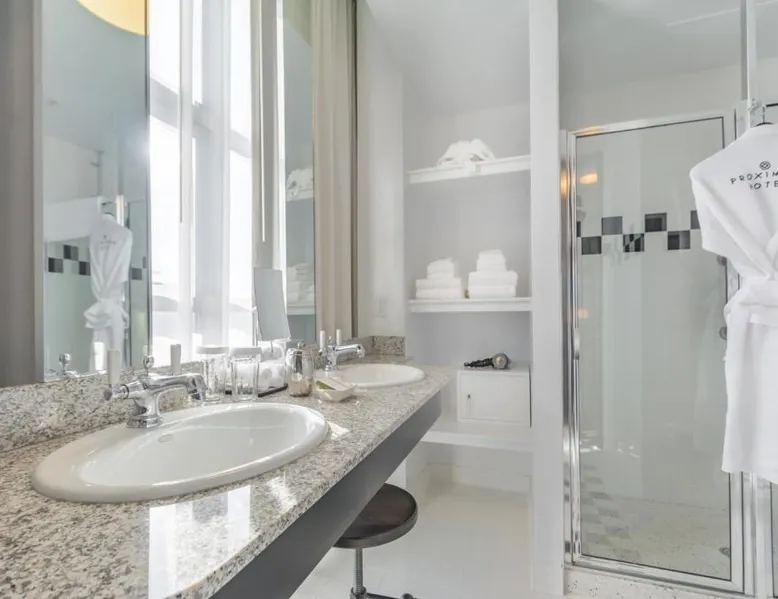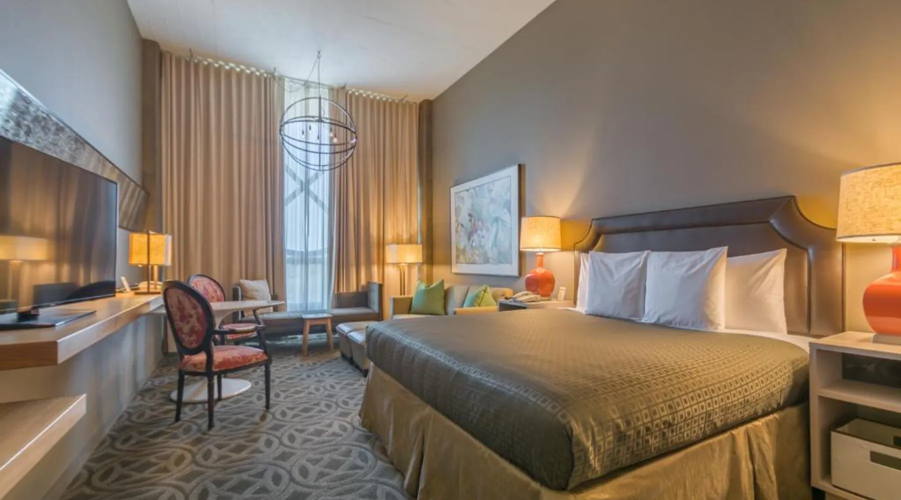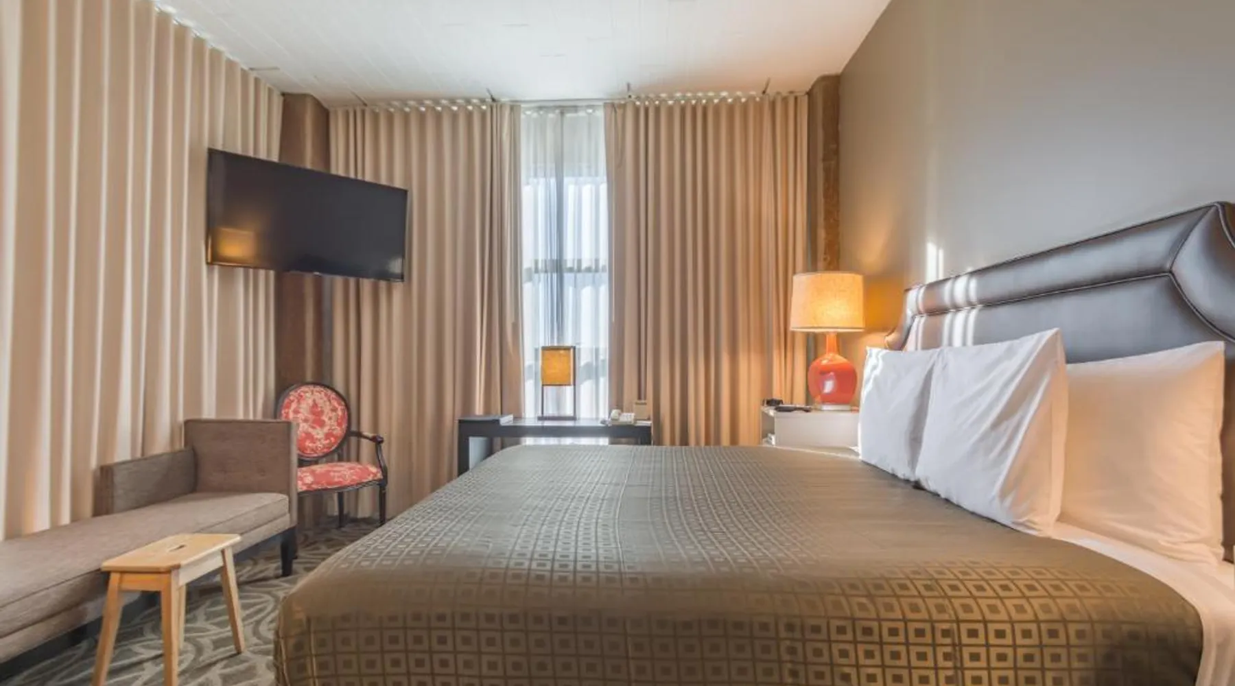 Offering an outdoor pool, free WiFi access, and a restaurant, this eco-friendly hotel is located 2.9 mi from the Greensboro, North Carolina city center. Greensboro Coliseum Complex is 3.3 mi from the Greensboro hotel. A microwave, small refrigerator, and coffee-making facilities are offered in the rooms at Proximity Hotel. A flat-screen cable TV and a seating area are featured as well as a desk. Print Works Bistro, which sources its food from local vendors, serves European-influenced cuisine. The restaurant is open daily for breakfast, lunch, and dinner. A wine menu and an outdoor terrace are offered for guests to enjoy. A fitness center, which offers bicycles for guests to explore the surrounding area, is open 24-hours a day. Wesley Long Hospital is 0.9 mi from the hotel. University of North Carolina – Greensboro is 5 minutes’ drive away from Hotel Proximity. Piedmont Triad International Airport is 11 minutes’ drive away. This room features large windows, high ceilings, and a sitting area with a flat-screen television. Extras include a stereo with CD player, microwave, and a small refrigerator.