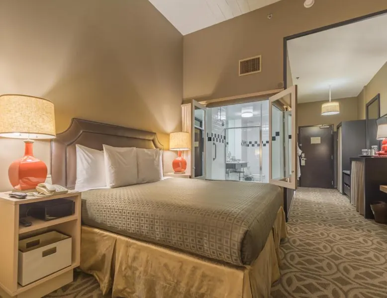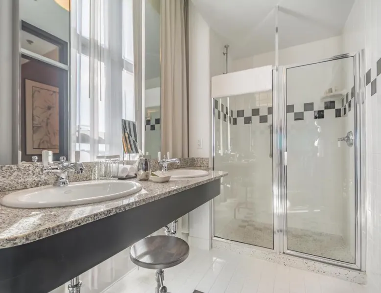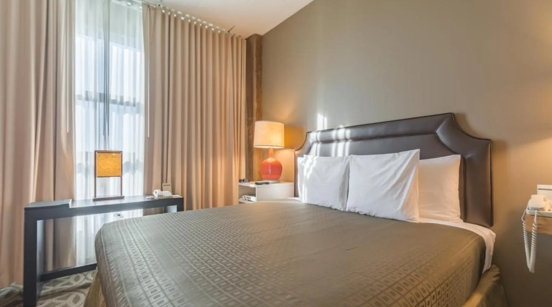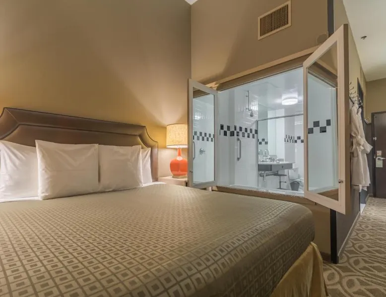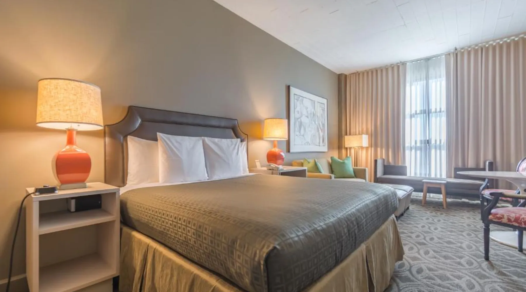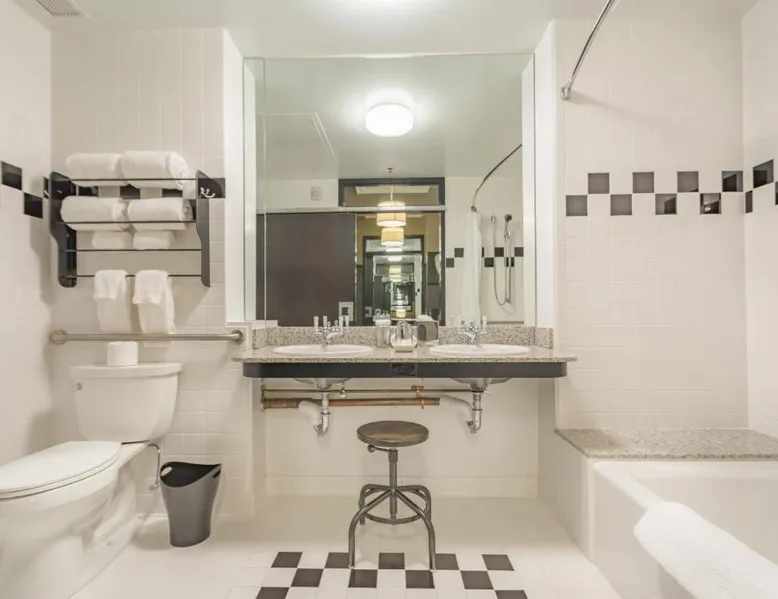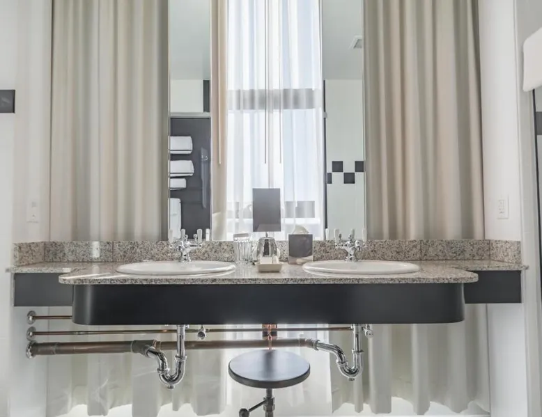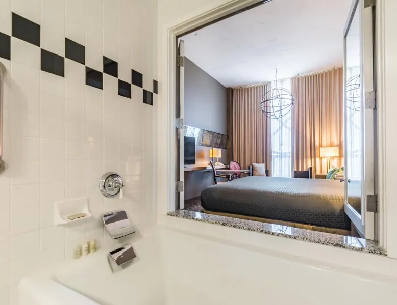 Offering an outdoor pool, free WiFi access, and a restaurant, this eco-friendly hotel is located 2.9 mi from the Greensboro, North Carolina city center. Greensboro Coliseum Complex is 3.3 mi from the Greensboro hotel. A microwave, small refrigerator, and coffee-making facilities are offered in the rooms at Proximity Hotel. A flat-screen cable TV and a seating area are featured as well as a desk. Print Works Bistro, which sources its food from local vendors, serves European-influenced cuisine. The restaurant is open daily for breakfast, lunch, and dinner. A wine menu and an outdoor terrace are offered for guests to enjoy. A fitness center, which offers bicycles for guests to explore the surrounding area, is open 24-hours a day. Wesley Long Hospital is 0.9 mi from the hotel. University of North Carolina – Greensboro is 5 minutes’ drive away from Hotel Proximity. Piedmont Triad International Airport is 11 minutes’ drive away. This room features large windows, high ceilings, and a sitting area with a flat-screen television. Extras include a stereo with CD player, microwave, and a small refrigerator.