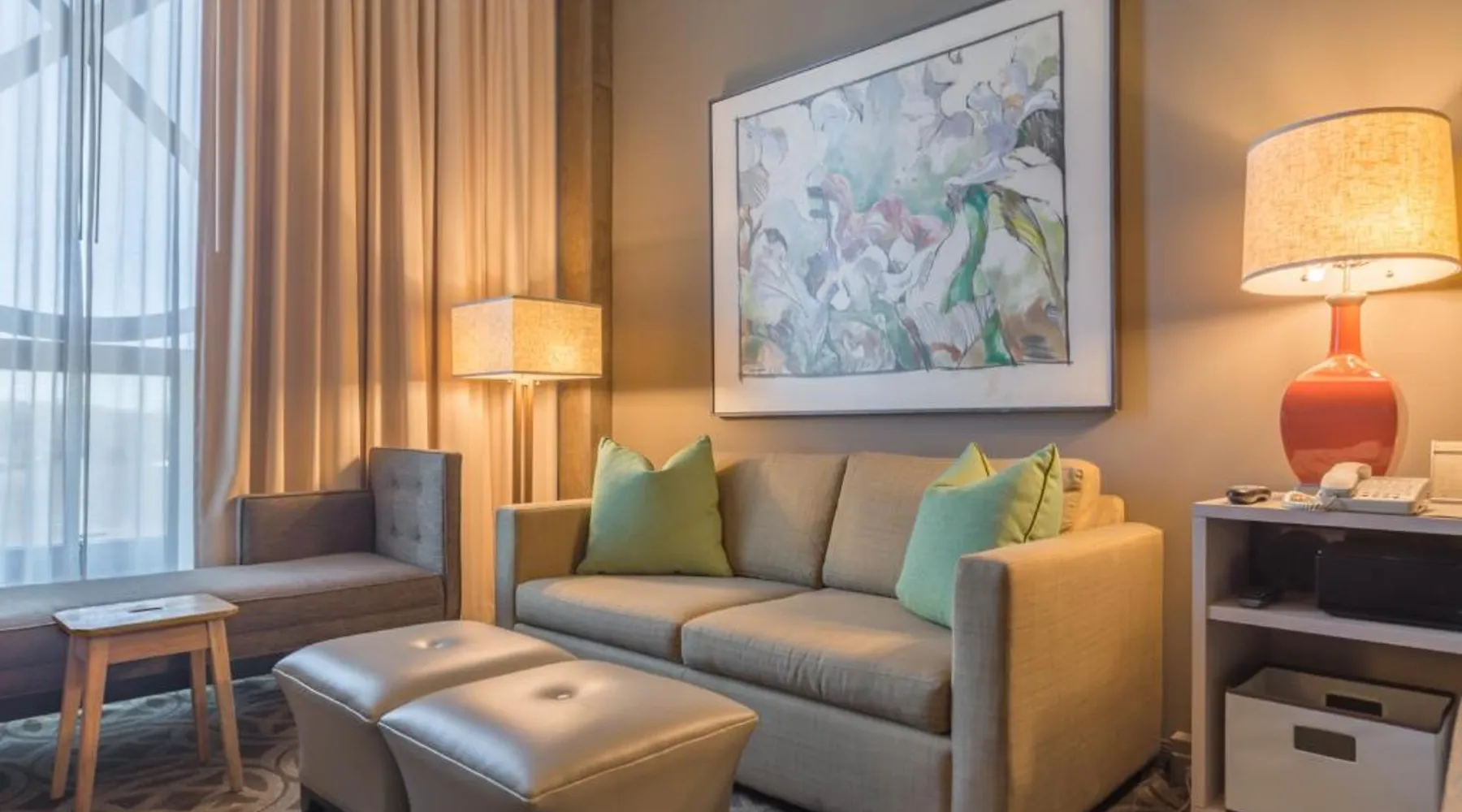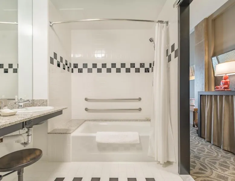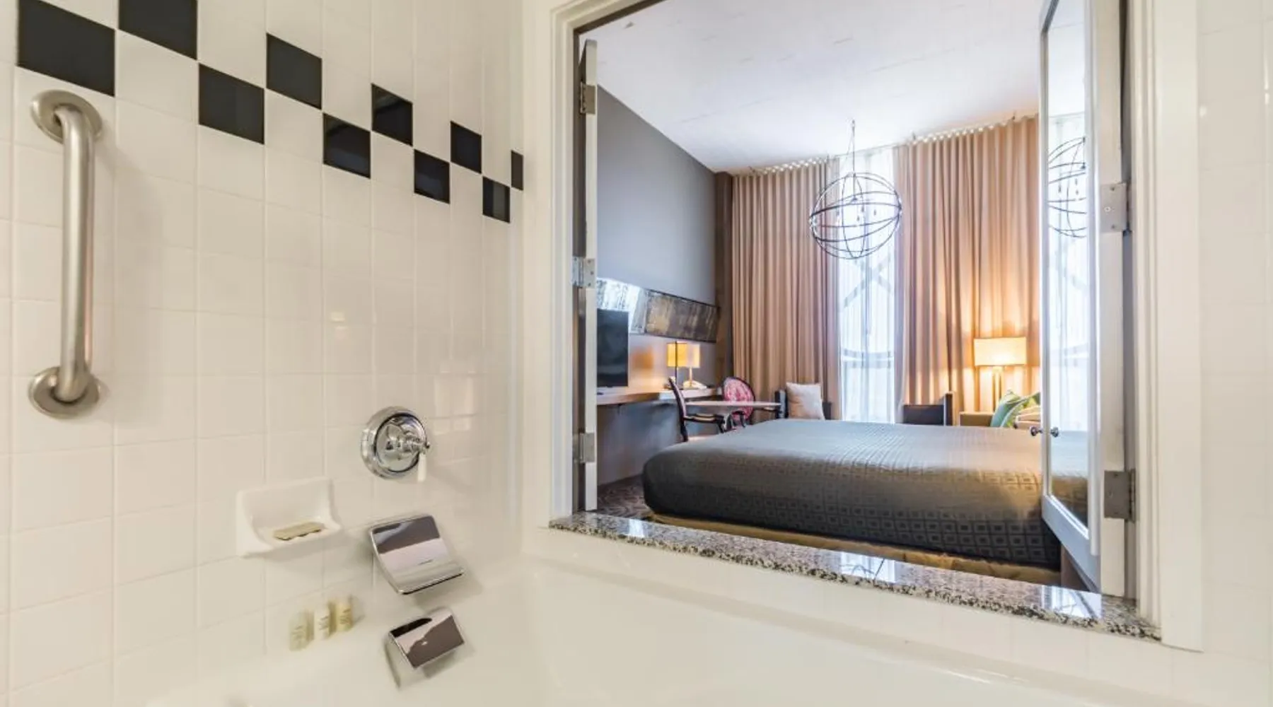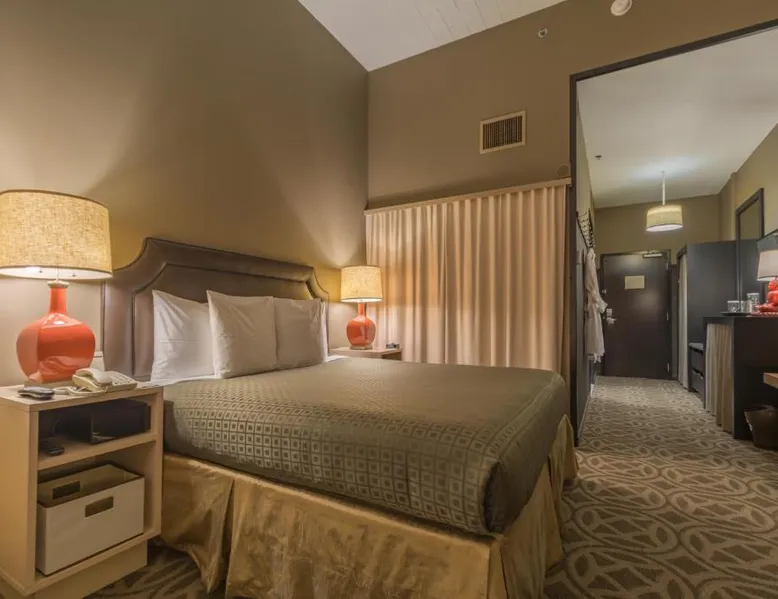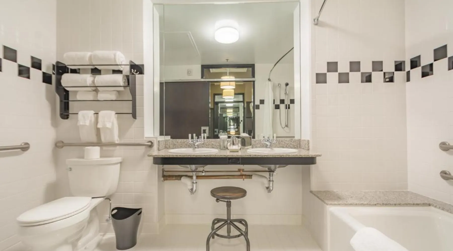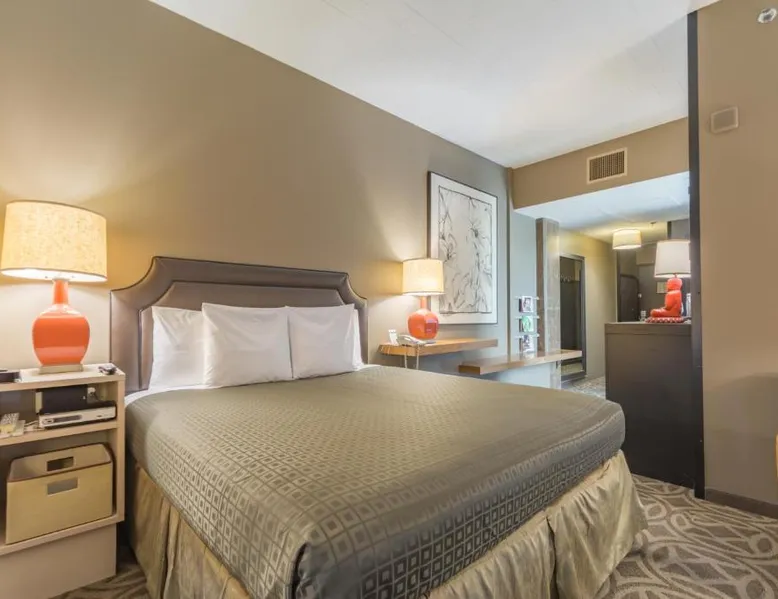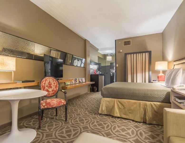 Offering an outdoor pool, free WiFi access, and a restaurant, this eco-friendly hotel is located 2.9 mi from the Greensboro, North Carolina city center. Greensboro Coliseum Complex is 3.3 mi from the Greensboro hotel. A microwave, small refrigerator, and coffee-making facilities are offered in the rooms at Proximity Hotel. A flat-screen cable TV and a seating area are featured as well as a desk. Print Works Bistro, which sources its food from local vendors, serves European-influenced cuisine. The restaurant is open daily for breakfast, lunch, and dinner. A wine menu and an outdoor terrace are offered for guests to enjoy. A fitness center, which offers bicycles for guests to explore the surrounding area, is open 24-hours a day. Wesley Long Hospital is 0.9 mi from the hotel. University of North Carolina – Greensboro is 5 minutes’ drive away from Hotel Proximity. Piedmont Triad International Airport is 11 minutes’ drive away. This room features large windows, high ceilings, and a sitting area with a flat-screen television. Extras include a stereo with CD player, microwave, and a small refrigerator.
