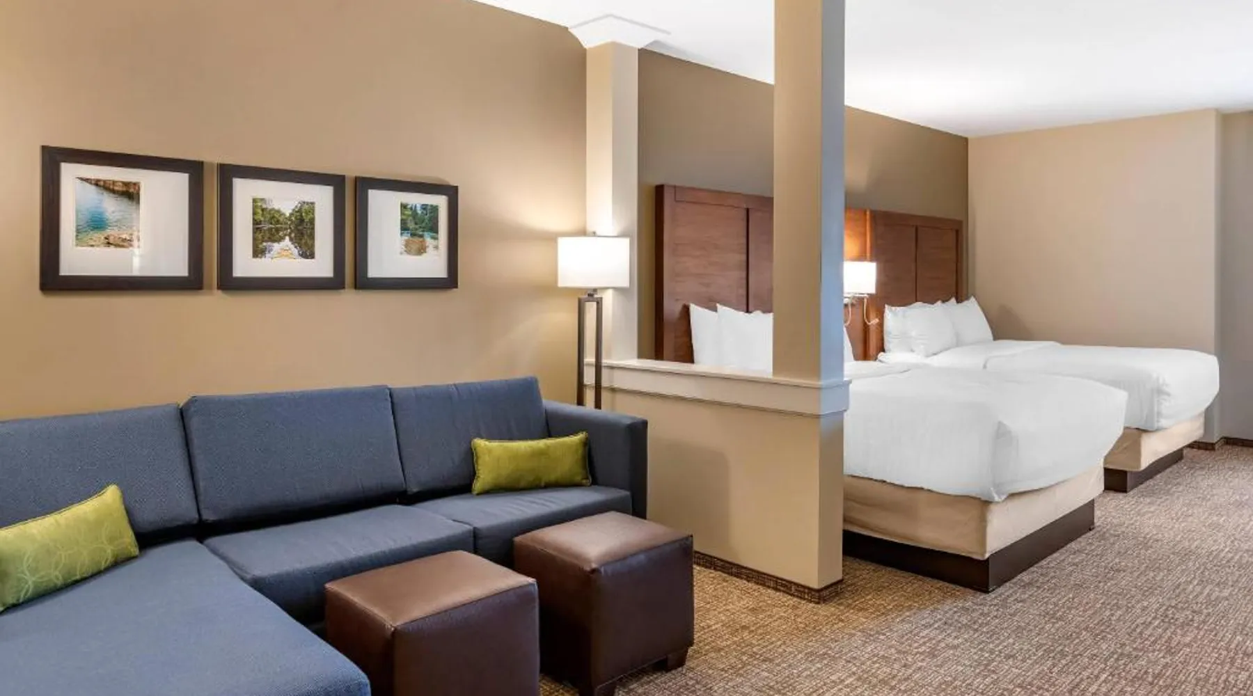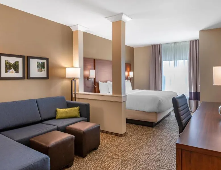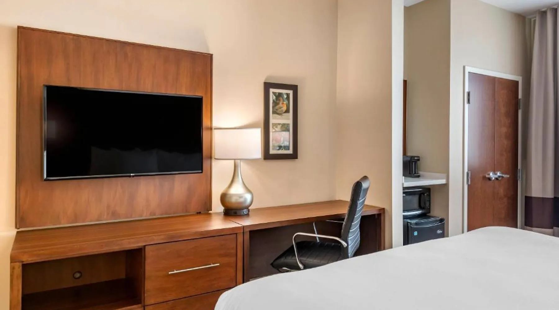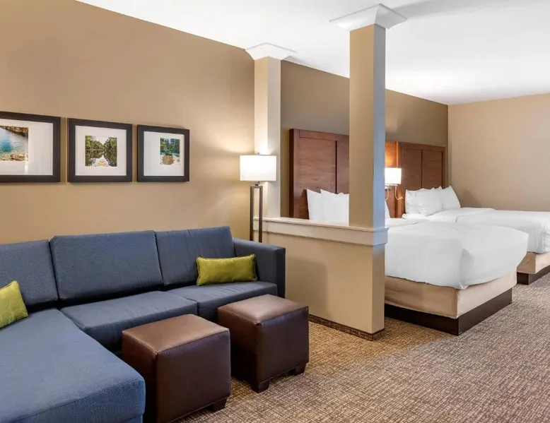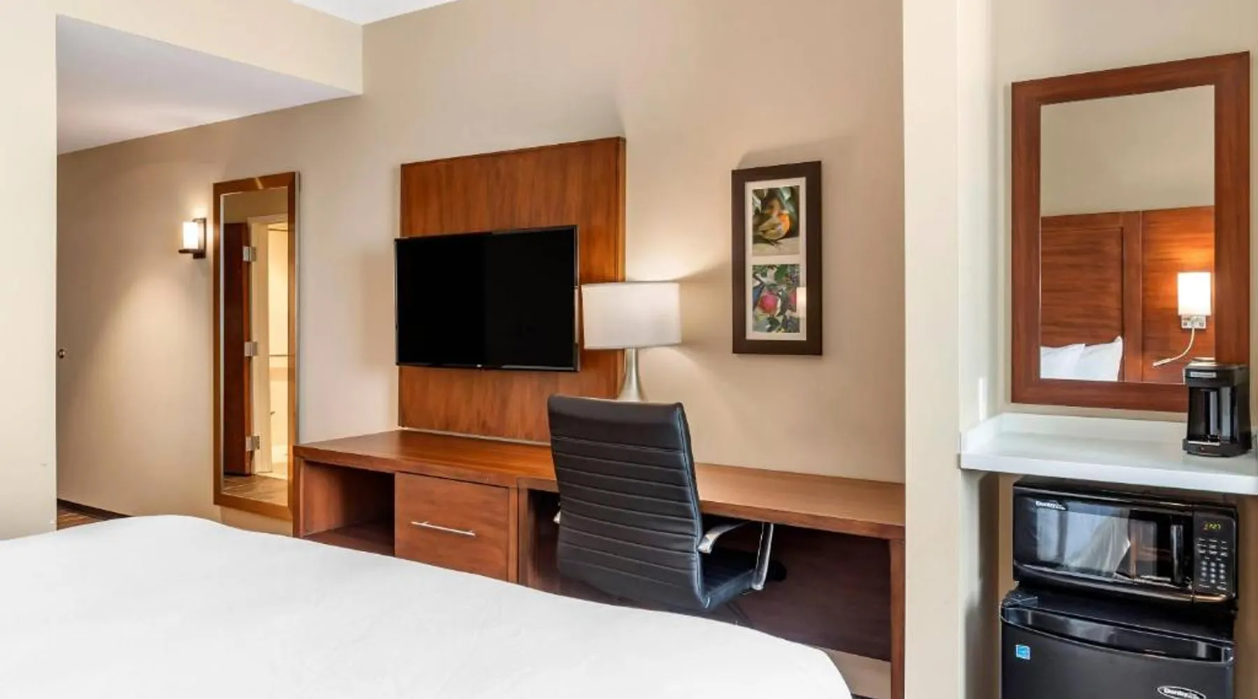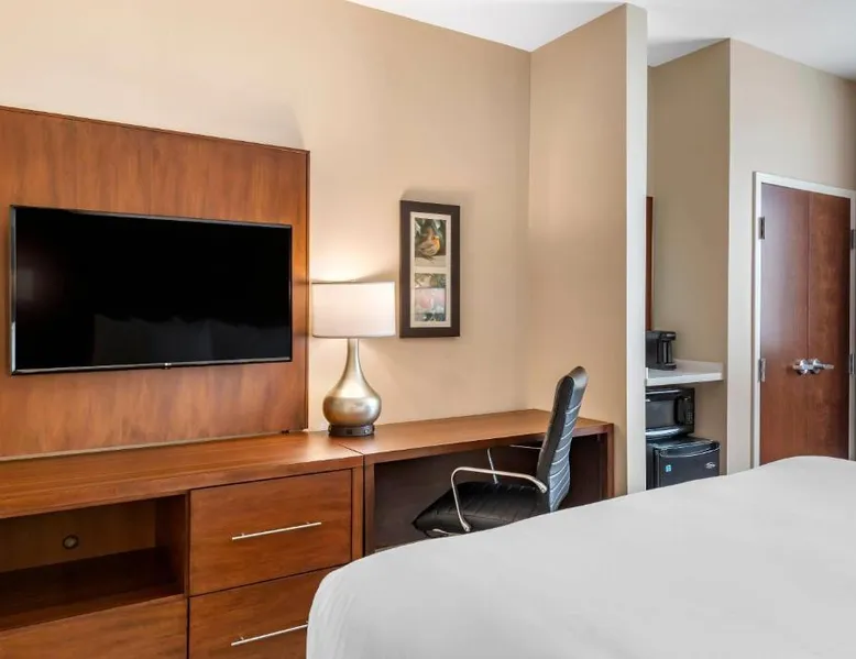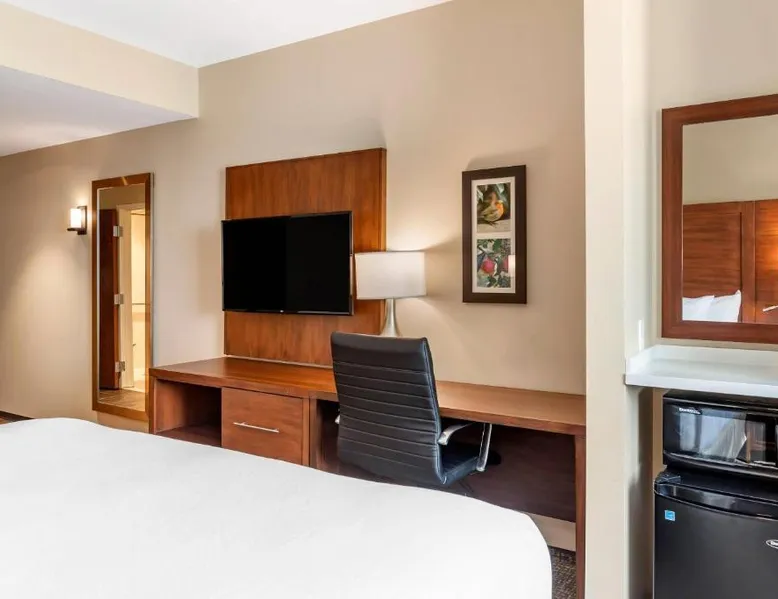 Comfortable Accommodations: Comfort Inn & Suites in Clarkston offers rooms with air-conditioning, private bathrooms, and free WiFi. Each room includes a refrigerator, microwave, and TV. Leisure Facilities: Guests can relax on the terrace or swim in the indoor pool. Additional amenities include a work desk, sofa bed, and free toiletries. Convenient Location: Located 27 mi from Bishop International Airport, the hotel is near Dte Energy Music Theater (3.7 mi) and Meadow Brook Music Festival (12 mi). Winter sports are available in the surrounding area. Guest Services: The hotel provides a 24-hour front desk, electric vehicle charging station, and free on-site parking. American breakfast is served daily. Highly rated for its convenient location, attentive staff, and clean rooms. This double room offers a tea and coffee maker and a TV with cable channels. The unit has 1 bed.