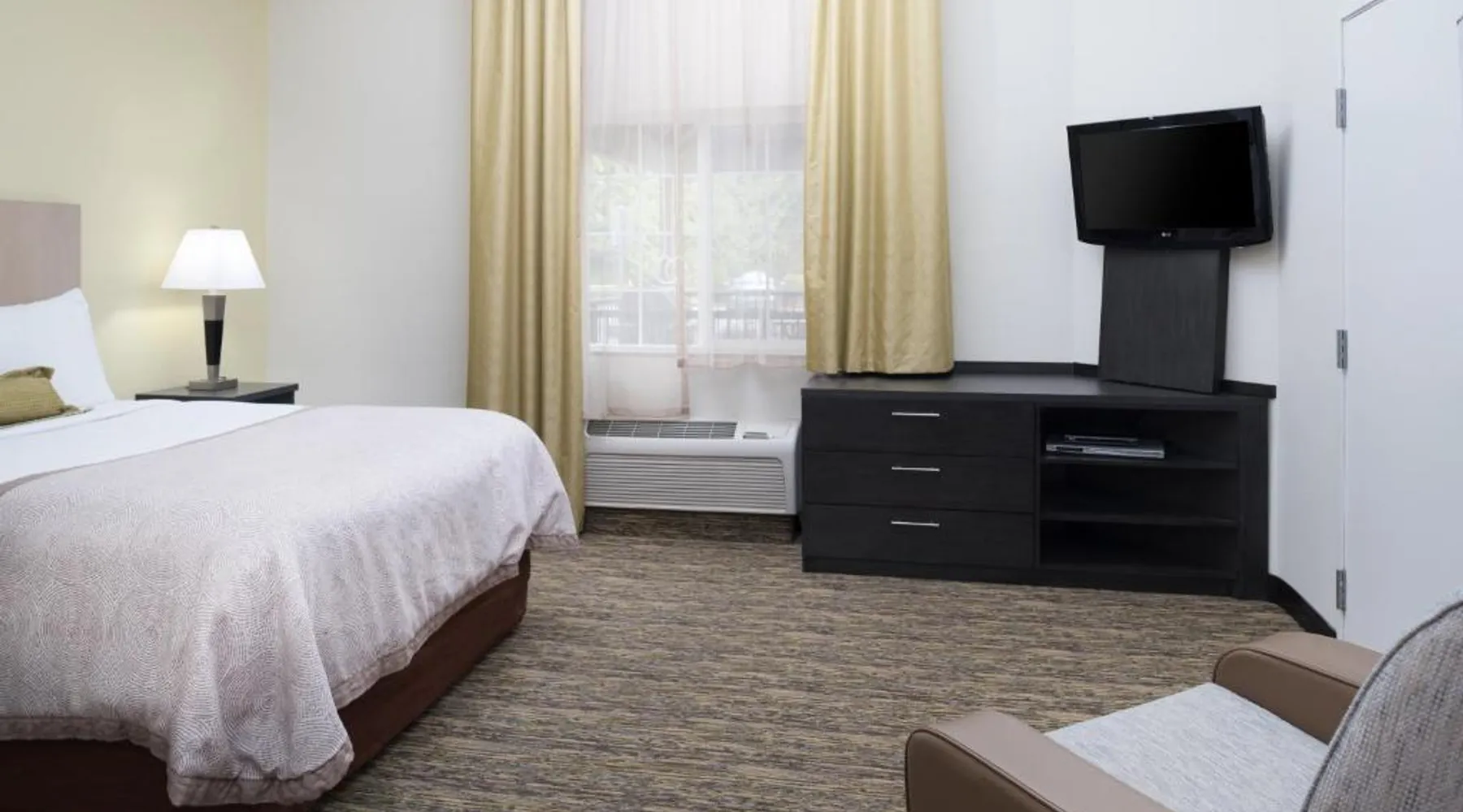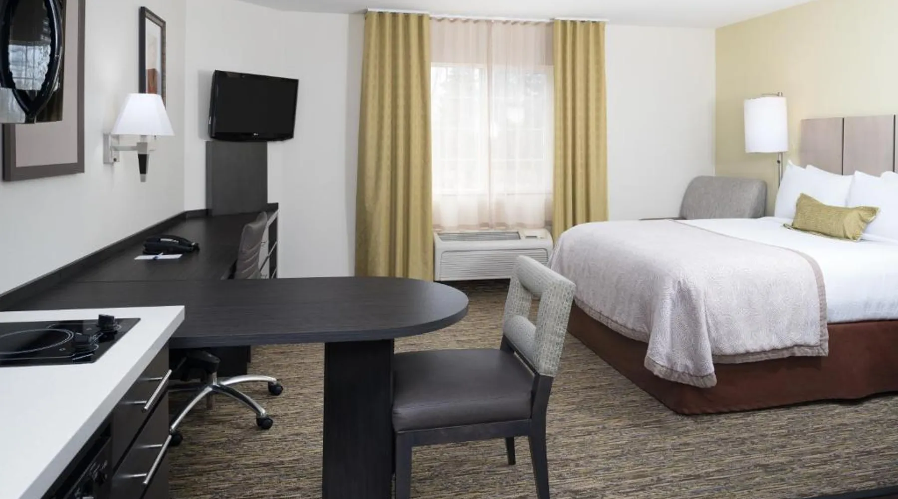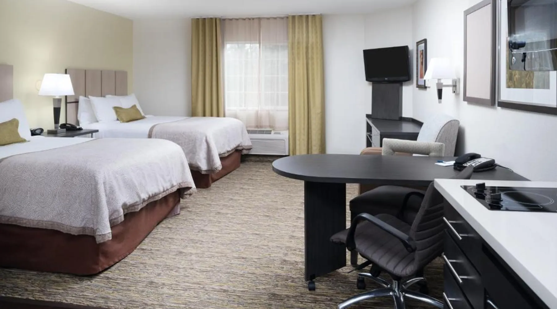 Comfortable Accommodations: Candlewood Suites Olympia - Lacey by IHG in Lacey offers family rooms with air-conditioning, private bathrooms, and fully equipped kitchens. Each room includes a tea and coffee maker, hairdryer, and free toiletries. Convenient Facilities: Guests benefit from a 24-hour front desk, free on-site parking, and a work desk. Additional amenities include a dining table, sofa bed, and TV. Local Attractions: Located 45 mi from Seattle–Tacoma International Airport, the hotel is near Hands on Children's Museum (4.3 mi), Museum of Glass (26 mi), and Washington Center for the Performing Arts (4.3 mi). Other attractions include Point Defiance Zoo and Aquarium (30 mi) and Tacoma Dome (26 mi). Providing free toiletries, this studio includes a private bathroom with a bath, a shower and a hairdryer. The fully equipped kitchen has a stovetop, a refrigerator, a dishwasher and kitchenware. The studio features carpeted floors, a seating area with a TV with cable channels, air conditioning, a tea and coffee maker, as well as heating. The unit offers 2 beds.