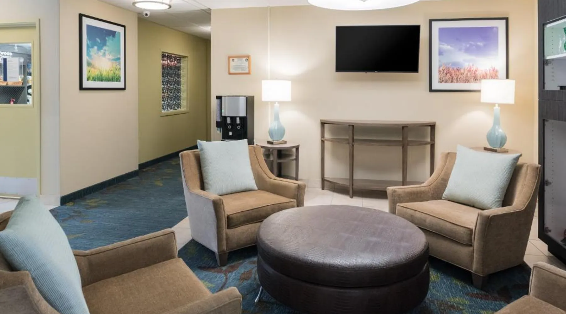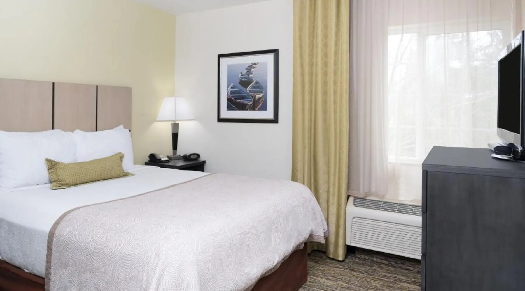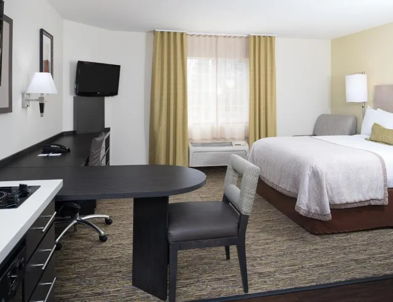 Comfortable Accommodations: Candlewood Suites Olympia - Lacey by IHG in Lacey offers family rooms with air-conditioning, private bathrooms, and fully equipped kitchens. Each room includes a tea and coffee maker, hairdryer, and free toiletries. Convenient Facilities: Guests benefit from a 24-hour front desk, free on-site parking, and a work desk. Additional amenities include a dining table, sofa bed, and TV. Local Attractions: Located 45 mi from Seattle–Tacoma International Airport, the hotel is near Hands on Children's Museum (4.3 mi), Museum of Glass (26 mi), and Washington Center for the Performing Arts (4.3 mi). Other attractions include Point Defiance Zoo and Aquarium (30 mi) and Tacoma Dome (26 mi). Providing free toiletries, this studio includes a private bathroom with a bath, a shower and a hairdryer. The fully equipped kitchen has a stovetop, a refrigerator, a dishwasher and kitchenware. The studio features carpeted floors, a seating area with a TV with cable channels, air conditioning, a tea and coffee maker, as well as heating. The unit offers 2 beds.