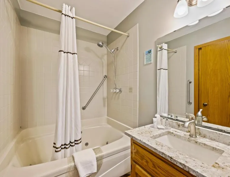 Comfortable Accommodations: Evergreen Hill Condominiums in Fish Creek offers 2-star aparthotel accommodations with private bathrooms. Each unit features air-conditioning, a balcony, and a fully equipped kitchen. Leisure Facilities: Guests can enjoy a terrace, seasonal outdoor swimming pool, and free WiFi. Additional amenities include a spa bath, fireplace, and outdoor seating area. Convenient Location: Located less than 0.6 mi from Fish Creek Beach and 75 mi from Green Bay–Austin Straubel International Airport. Nearby attractions include Cana Island Lighthouse (14 mi) and Cave Point County Park (16 mi). Guest Satisfaction: Highly rated for its convenient location and room cleanliness. This three-level villa features a kitchen with kitchenware, a private entrance and an oven. One bedroom on second floor, one bedroom in lower level. This two-level villa features a private entrance, stove top and dishwasher. Please note that the bedroom is located on the second floor.