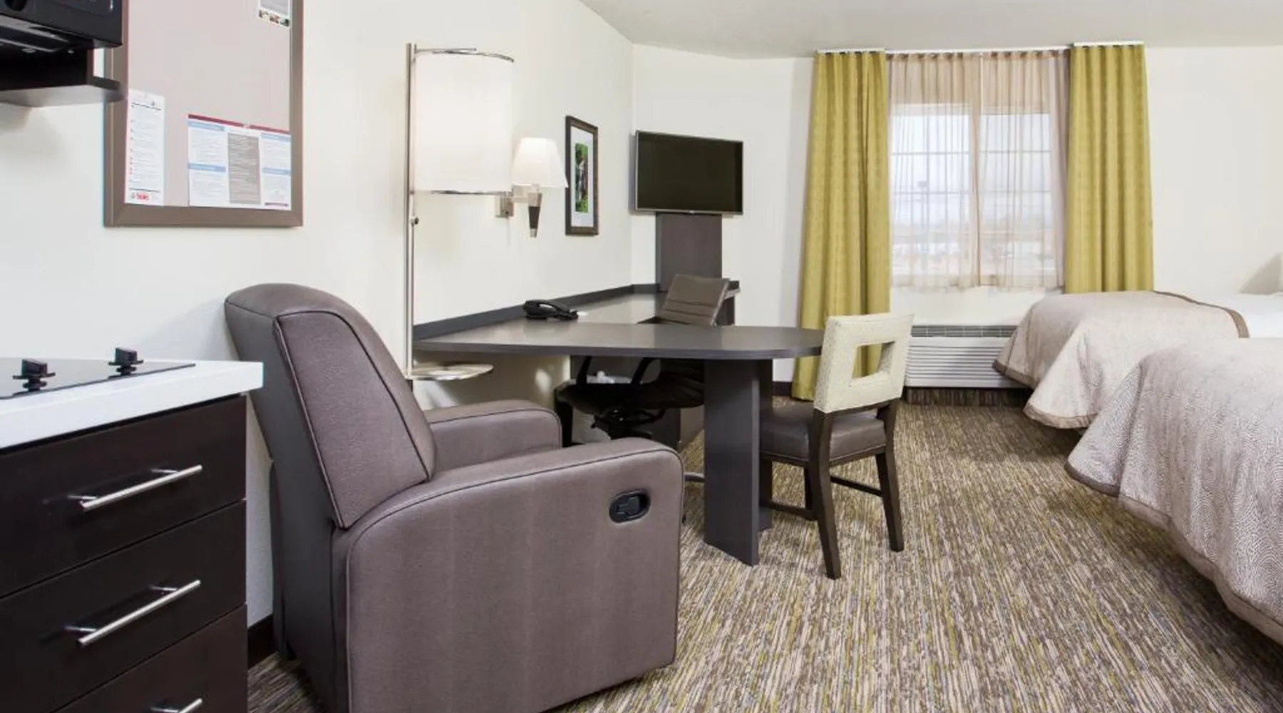 Comfortable Accommodations: Candlewood Suites Fort Campbell - Oak Grove by IHG in Oak Grove offers family rooms with air-conditioning, private bathrooms, and modern amenities. Each room includes a tea and coffee maker, hairdryer, refrigerator, microwave, dishwasher, shower, TV, and kitchenware. Facilities and Services: Guests enjoy a fitness center, seasonal outdoor swimming pool, and free WiFi. The hotel provides a 24-hour front desk, free on-site private parking, and family rooms. Additional amenities include a sofa bed, work desk, and seating area. Local Attractions: Located 62 mi from Nashville International Airport, the hotel is near Fort Defiance Civil War Park & Interpretive Center (12 mi), McGregor Park Riverwalk (13 mi), and Customs House Museum and Cultural Center (14 mi). Other attractions include Liberty Park And Marina (16 mi) and Dunbar Cave (17 mi). Guest Satisfaction: Guests appreciate the property staff and service support, as well as the cleanliness of the rooms. The fully equipped kitchen features a stovetop, a refrigerator, a dishwasher and kitchenware. This air-conditioned suite includes a flat-screen TV with cable channels and a private bathroom. The unit offers 1 bed.