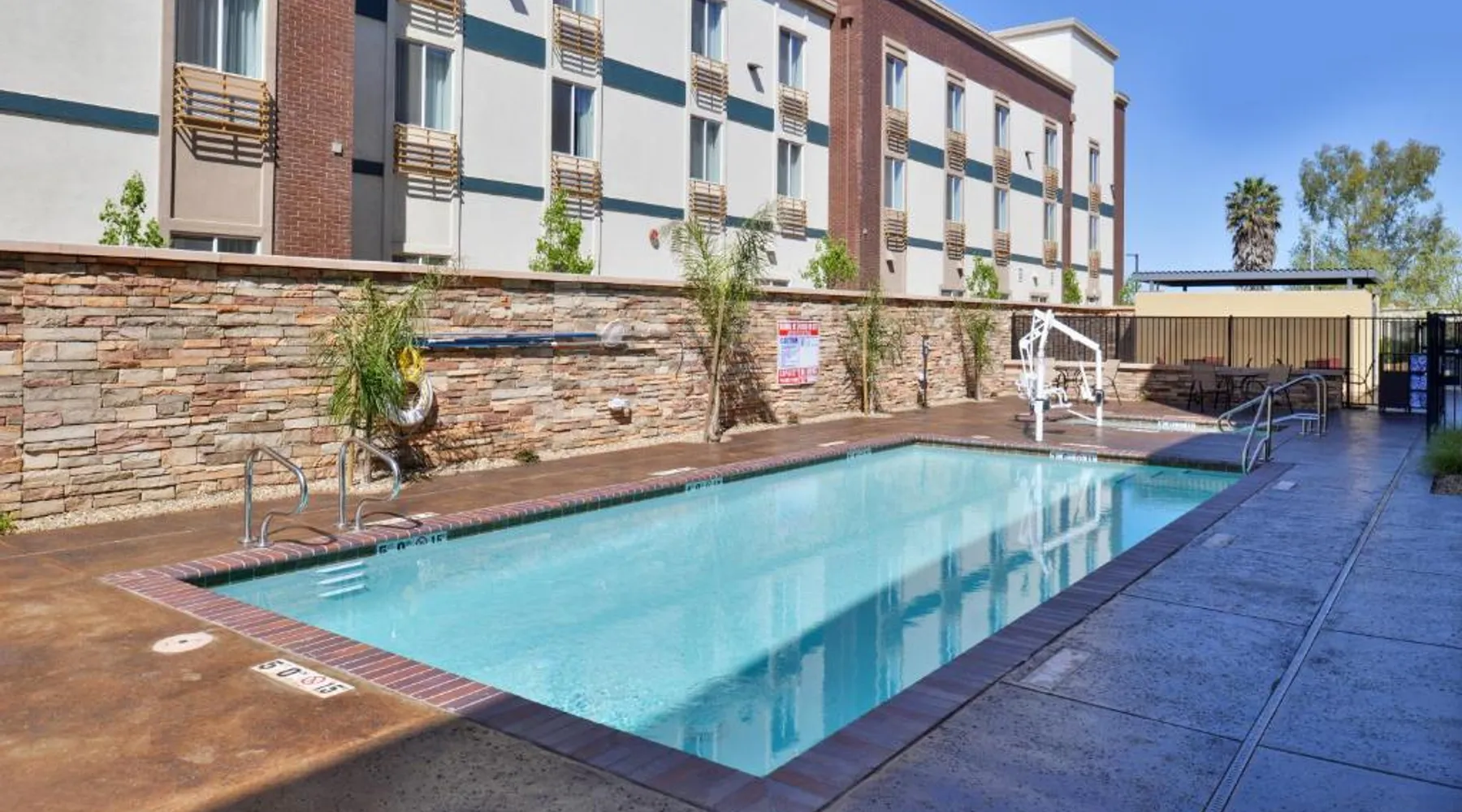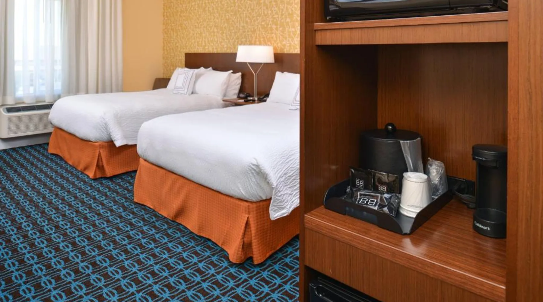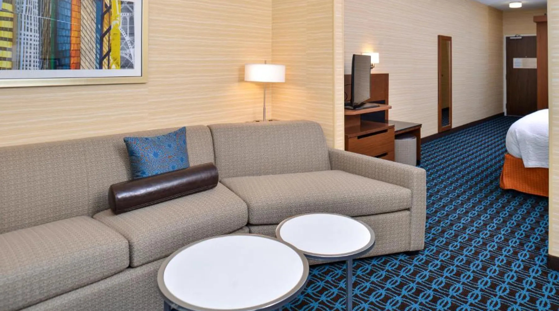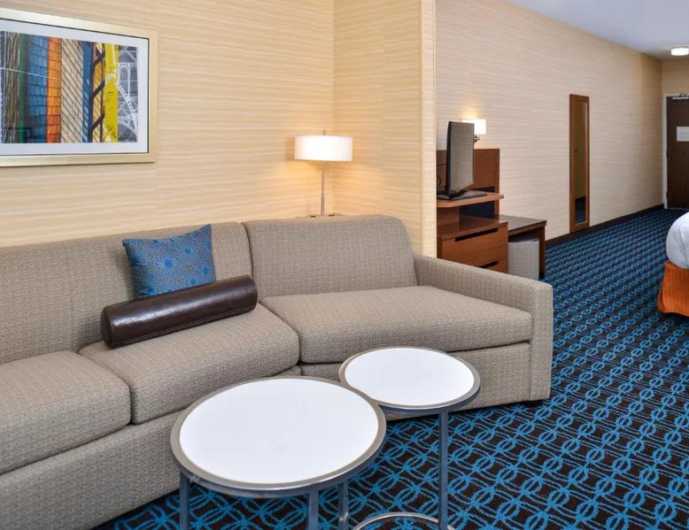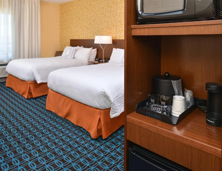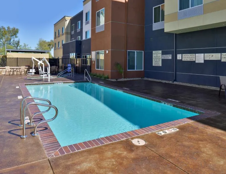 Comfortable Accommodations: Fairfield Inn & Suites by Marriott Sacramento Airport Woodland in Woodland offers family rooms with air-conditioning, baths, tea and coffee makers, and free WiFi. Each room includes a work desk, sofa bed, and free toiletries. Leisure Facilities: Guests can enjoy a spa and wellness center, fitness center, outdoor swimming pool, and hot tub. Free bicycles are available for exploring the area. Convenient Services: The hotel provides a paid airport shuttle service, elevator, 24-hour front desk, minimarket, business area, laundry service, and free on-site parking. Nearby Attractions: Located 11 mi from Sacramento International Airport, the hotel is close to University Of California, Davis (12 mi), Mondavi Center (14 mi), and Crocker Art Museum (18 mi). The air-conditioned suite provides a flat-screen TV with cable channels, a tea and coffee maker, a seating area, a wardrobe as well as pool views. The unit offers 2 beds.