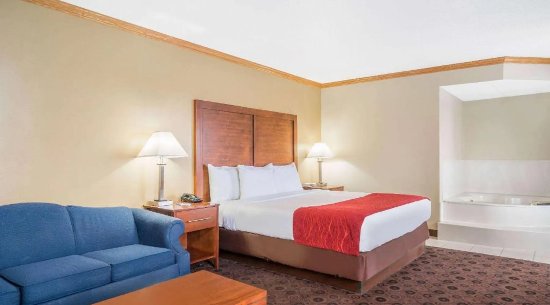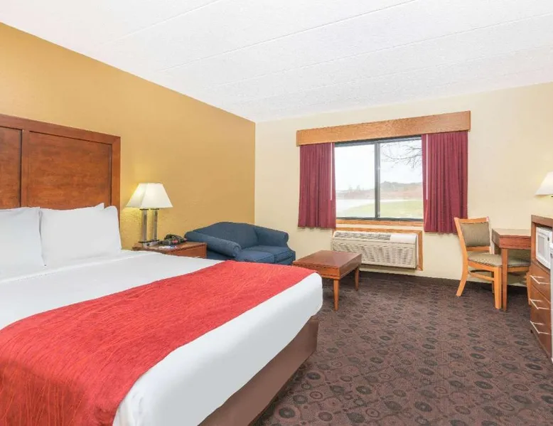 Comfortable Accommodations: Baymont by Wyndham Kasson Rochester Area in Kasson offers family rooms with air-conditioning, private bathrooms, and free WiFi. Each room includes a tea and coffee maker, hairdryer, and free toiletries. Leisure Facilities: Guests can enjoy an indoor swimming pool and a spa bath. Additional amenities include a seating area, TV, and a sofa. Dining Options: A continental buffet breakfast is served with juice, fresh pastries, and fruits. Free on-site parking is available. Location and Attractions: Located 5.6 mi from Dodge Center Airport, the hotel is 15 mi from Plummer Building and 16 mi from Mayo Civic Center. Guests appreciate the friendly staff and comfortable rooms. Providing free toiletries, this suite includes a private bathroom with a bath, a shower and a hairdryer. The suite features carpeted floors, a seating area with a flat-screen TV with cable channels, air conditioning, a tea and coffee maker, as well as a sofa.