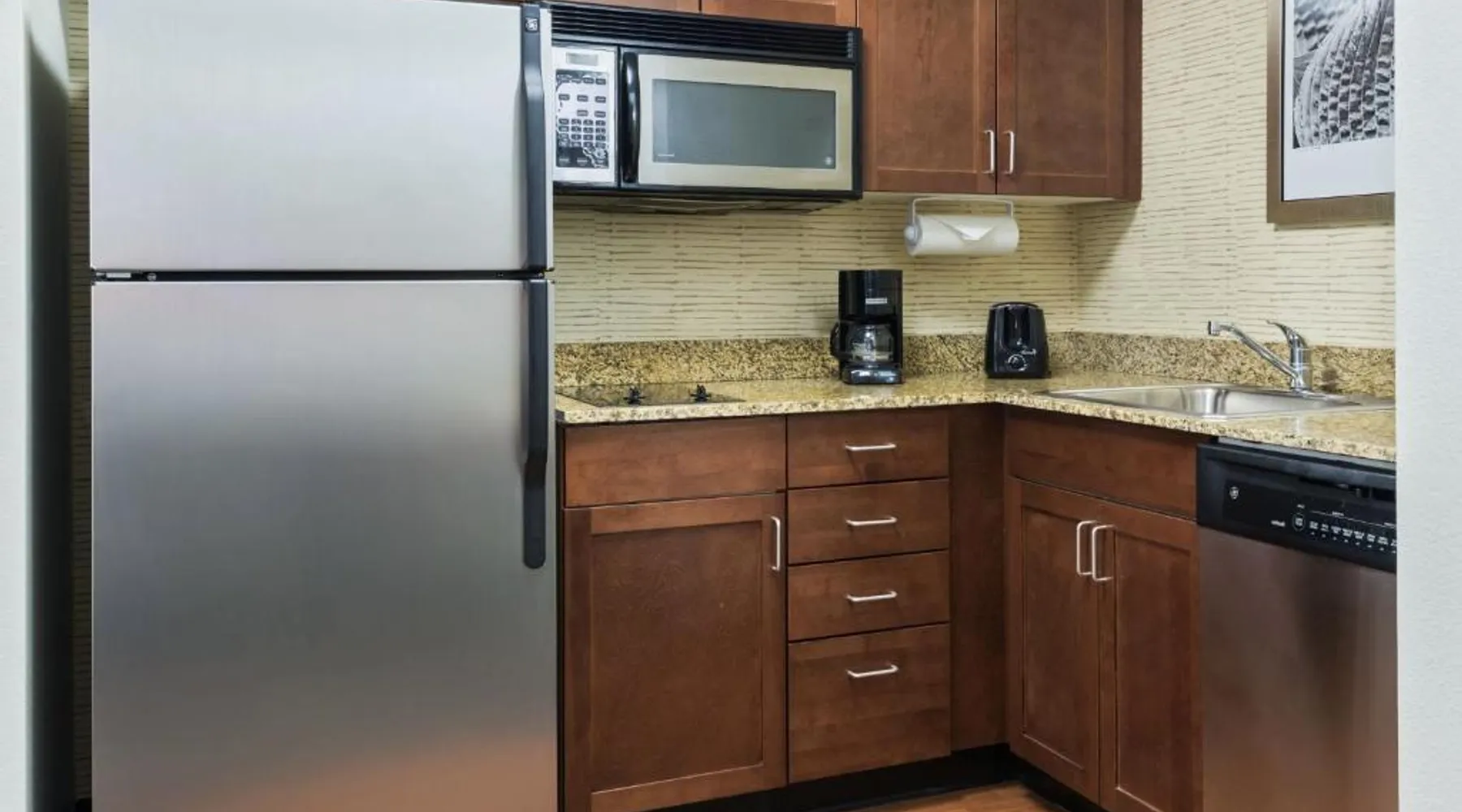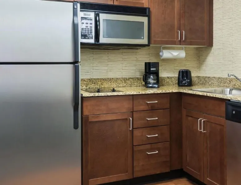 This hotel, located on South Jefferson Avenue off Interstate 64, offers hotel rooms with a living area and a full kitchen. Residence Inn Saint Louis Downtown offers rooms with facilities including a stovetop and a dishwasher. Beverages can be prepared with a coffee maker. For drinks and refreshments, Residence Inn Saint Louis Downtown has a snack bar. Guests can work out in the on-site fitness center. Busch Stadium and America's Center Convention Complex are within a 10-minute drive. Lambert-St. Louis International Airport is 17 mi away. This studio features a flat-screen TV, sofa bed and kitchenette equipped with a dishwasher, stove, microwave and fridge.