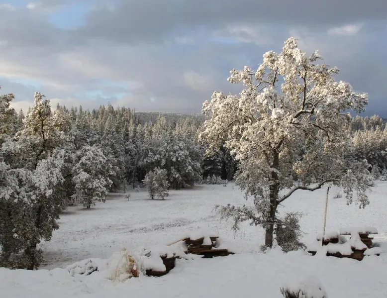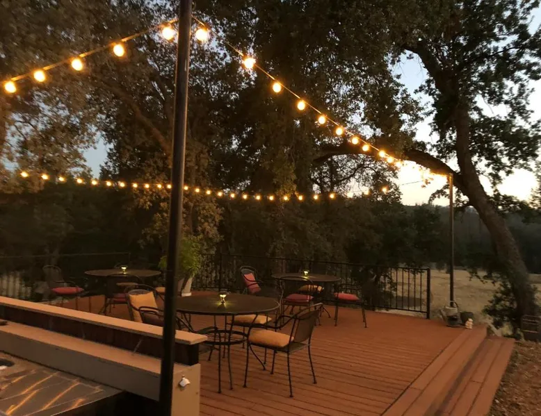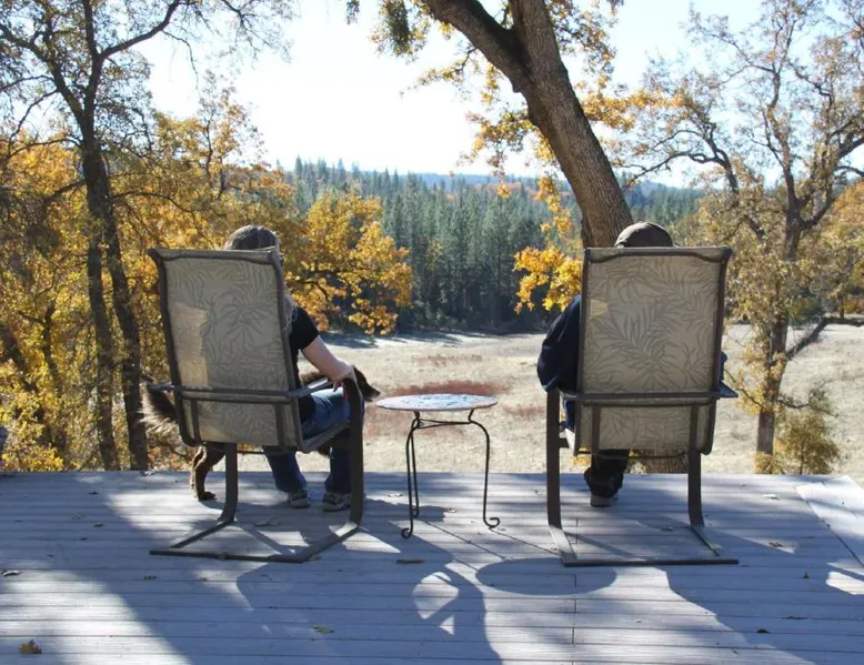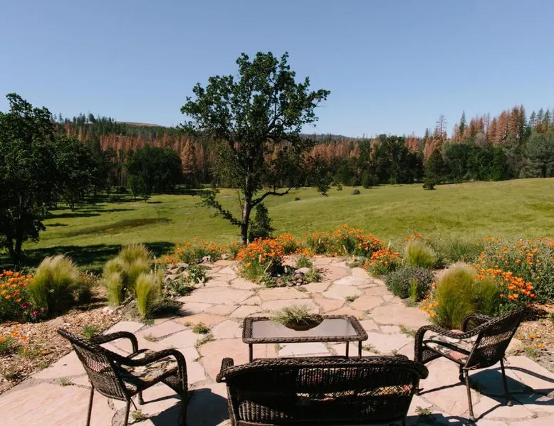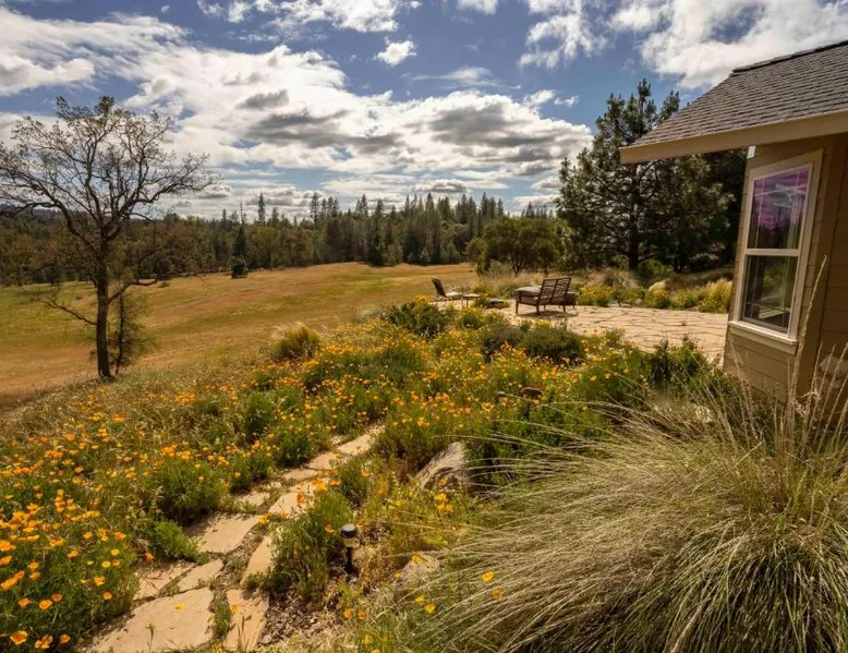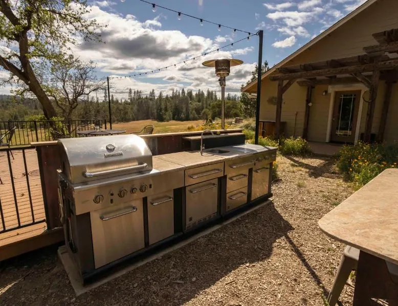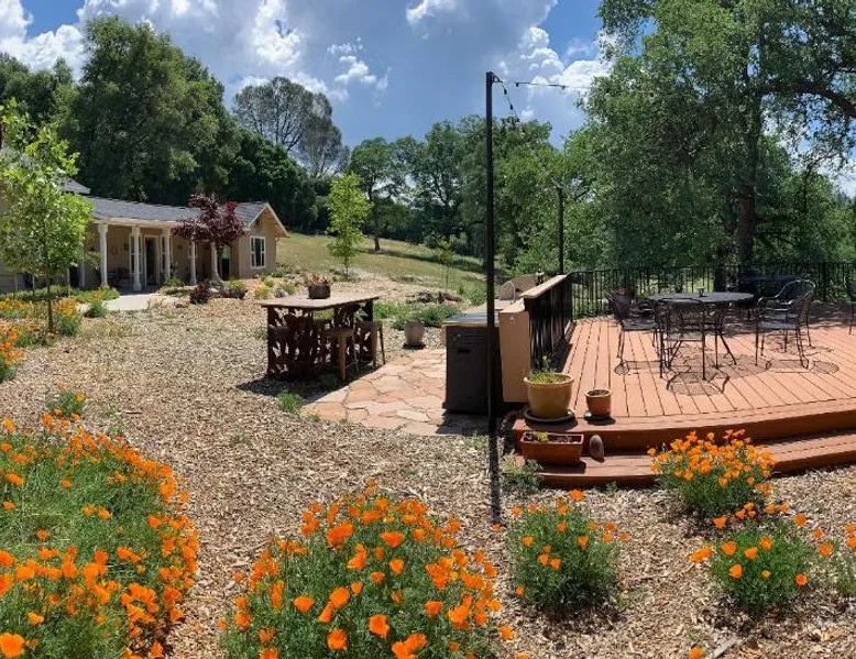 Located just 20 minutes from the entrance to Yosemite National Park, this property is located on a private 50-acre ranch, featuring a 3 bedroom home and two additional separate guest cottages. The meadow provides space to explore and see wildlife and awe-inspiring old oak trees. Soft bathrobes, free WiFi, and a beautiful outdoor seating area are offered to all guests at Red Tail Ranch. The house has a fully equipped kitchen, three queen beds, and two full bathrooms. The Ranch and Sierra Cottages have access to the shared outdoor kitchen with a BBQ, Stove, Sink, and cooking and dining essentials. Hiking and mountain biking trails are accessible via the meadow trails on the property. Columbia State Park is 30 miles from Red Tail Ranch. Sacramento International Airport and Oakland International Airport are within 130 miles of the ranch. Instead all rooms are provided coffee and tea. "Fully equipped 3 bedroom 2 bathroom house with living room, dining room and stocked kitchen. Free Wi-Fi, fresh bathrobes provided. Master bedroom has a soaking tub and there’s a wraparound deck with seating area to enjoy the spectacular scenery outside" Please note this room is also known as "Mountain Meadow House"