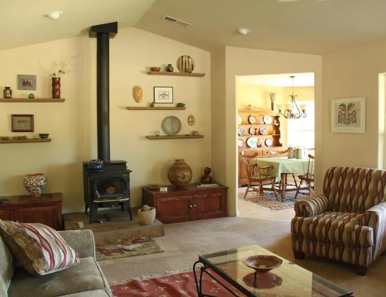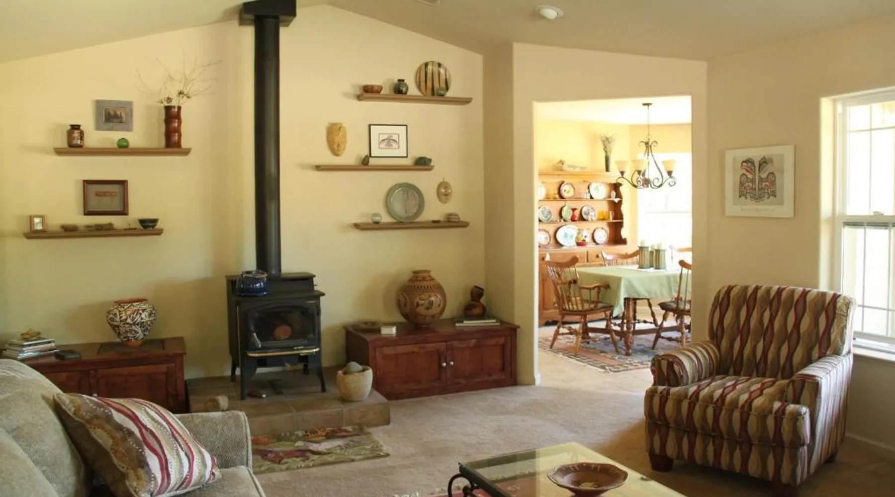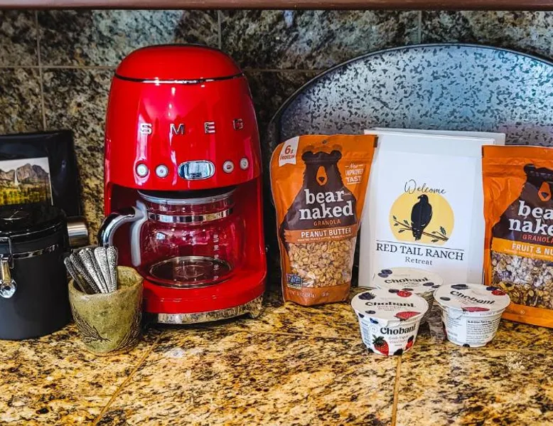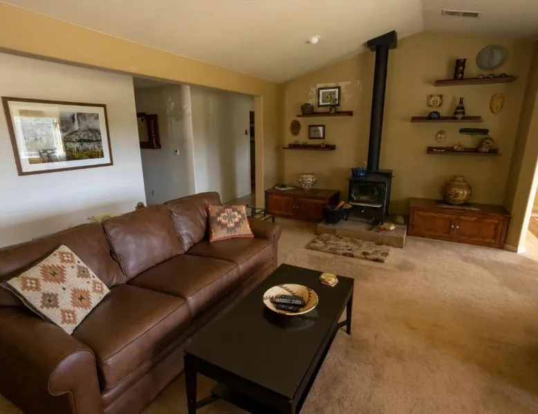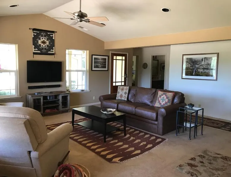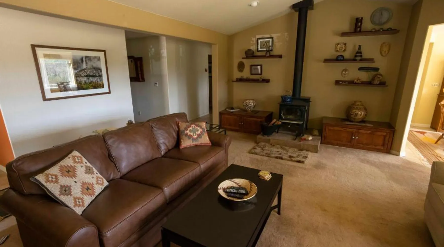 Located just 20 minutes from the entrance to Yosemite National Park, this property is located on a private 50-acre ranch, featuring a 3 bedroom home and two additional separate guest cottages. The meadow provides space to explore and see wildlife and awe-inspiring old oak trees. Soft bathrobes, free WiFi, and a beautiful outdoor seating area are offered to all guests at Red Tail Ranch. The house has a fully equipped kitchen, three queen beds, and two full bathrooms. The Ranch and Sierra Cottages have access to the shared outdoor kitchen with a BBQ, Stove, Sink, and cooking and dining essentials. Hiking and mountain biking trails are accessible via the meadow trails on the property. Columbia State Park is 30 miles from Red Tail Ranch. Sacramento International Airport and Oakland International Airport are within 130 miles of the ranch. Instead all rooms are provided coffee and tea. "Fully equipped 3 bedroom 2 bathroom house with living room, dining room and stocked kitchen. Free Wi-Fi, fresh bathrobes provided. Master bedroom has a soaking tub and there’s a wraparound deck with seating area to enjoy the spectacular scenery outside" Please note this room is also known as "Mountain Meadow House"