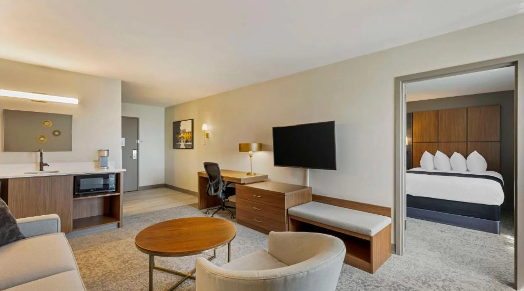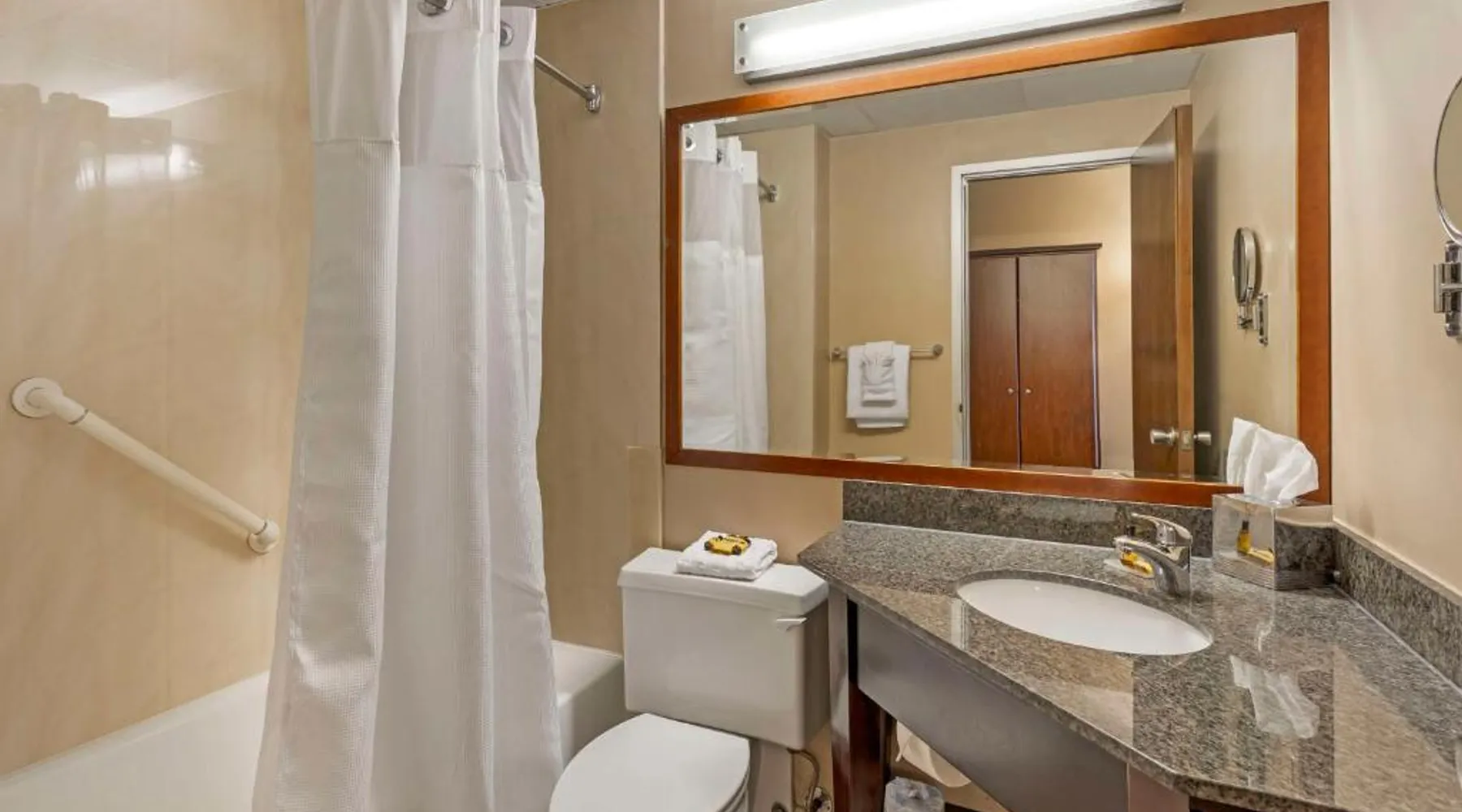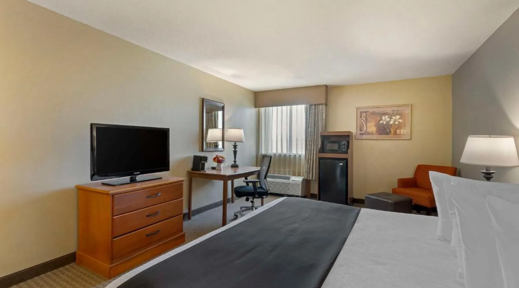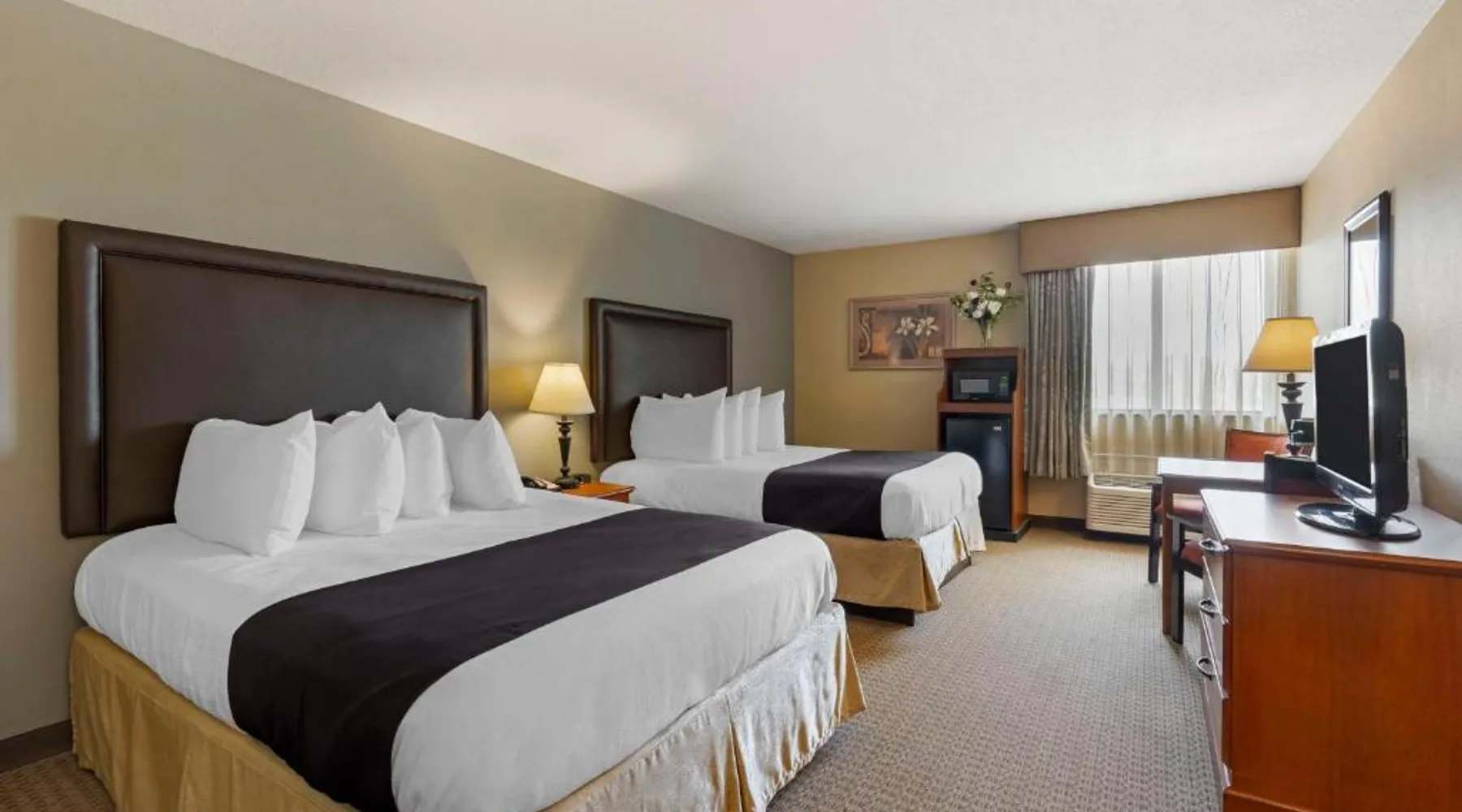 Surrounded by a variety of popular attractions and legendary historic sites, this St. Charles, Missouri hotel features state-of-the-art amenities and comfortable accommodations in a convenient location. The Best Western Plus Saint Charles Inn is only a short distance from many popular points of interest. The Ameristar Casino, the St. Louis International Airport, and the city's historic district are all nearby. Saint Charles Best Western Plus Inn also provides guests with a number of thoughtful amenities and facilities. Start the morning off with a free hot breakfast, enjoy a swim in the heated indoor pool or play a game in the on-site game room. The quadruple room features a tea and coffee maker and a safe deposit box. The unit has 2 beds.