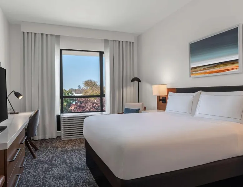 Comfortable Accommodations: Rooms feature air-conditioning, free toiletries, work desks, and TVs. Additional amenities include bathrobes, refrigerators, and complimentary WiFi. Dining Options: The modern, family-friendly restaurant serves American cuisine with vegetarian, vegan, gluten-free, and dairy-free options. Breakfast includes continental, American, à la carte, and vegetarian selections. Facilities and Services: Guests enjoy a fitness center, outdoor fireplace, and outdoor seating area. The hotel offers a 24-hour front desk, concierge service, room service, and luggage storage. Prime Location: Located in Sacramento, the hotel is 11 mi from Sacramento International Airport. Nearby attractions include the Sacramento Convention Center (1.5 mi) and California State Capitol Building (1.7 mi). This double room has air conditioning, heating and a flat-screen TV. The unit has 1 bed.