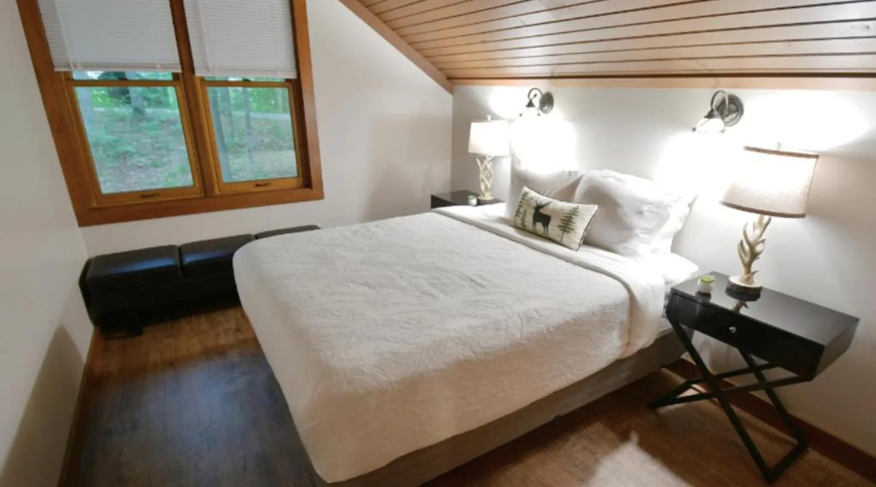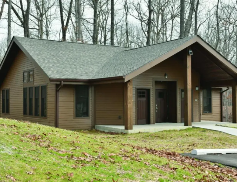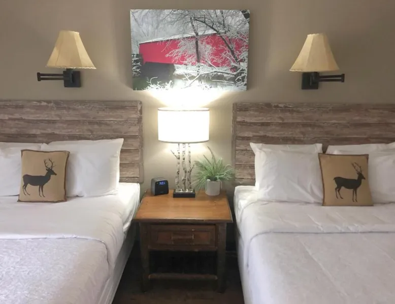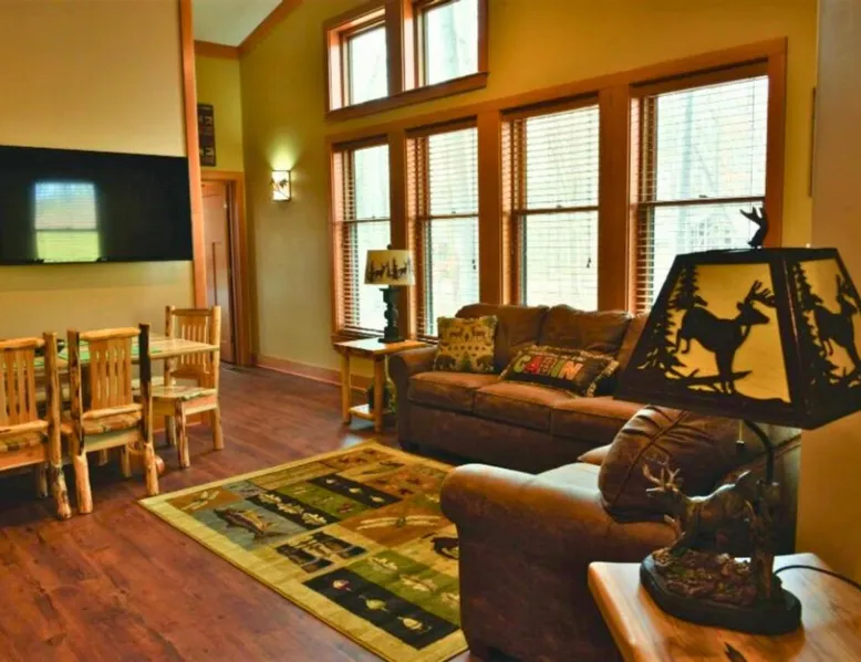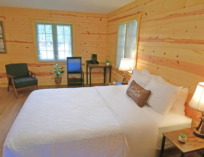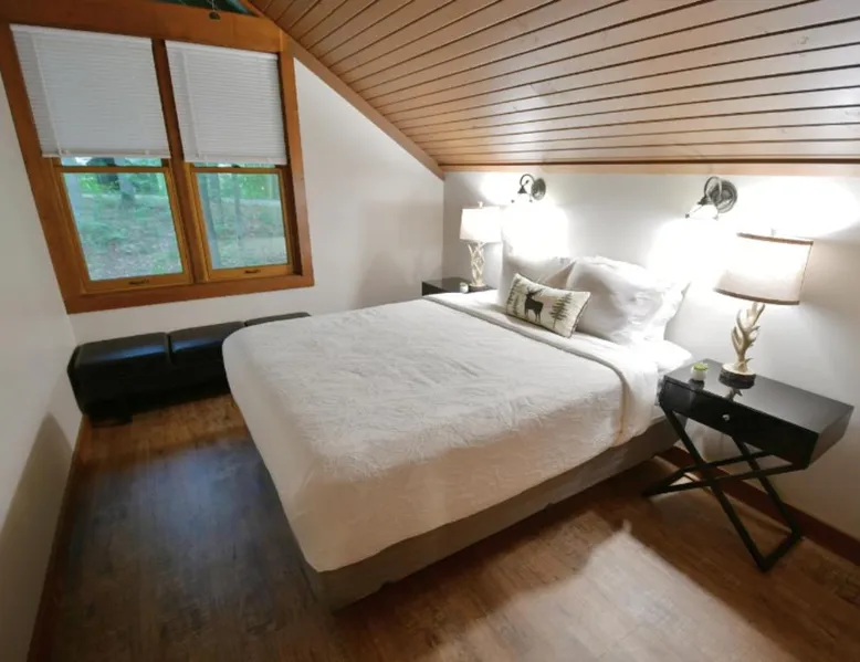 Comfortable Accommodations: Abe Martin Lodge & Cabins in Nashville offers family rooms with air-conditioning, private bathrooms, and modern amenities. Each room includes a balcony or terrace, kitchenette, and free WiFi. Dining and Leisure: The family-friendly restaurant serves American cuis available for lunch and dinner. Guests can relax on-fireplace. Additional facilities include a hot tub, waterpark, and games room. Location and Attractions: Located 50 mi from Indianapolis International Airport, the hotel is near attractions such as Bloomington Memorial Stadium (17 mi) and T.C. Steele State Historic Site (7.5 mi). Guests enjoy hiking and cycling. The spacious double room offers air conditioning, a tea and coffee maker, as well as a private bathroom featuring a bath and a hairdryer. The double room features a flat-screen TV, a wardrobe, parquet floors and heating. The unit offers 1 bed.