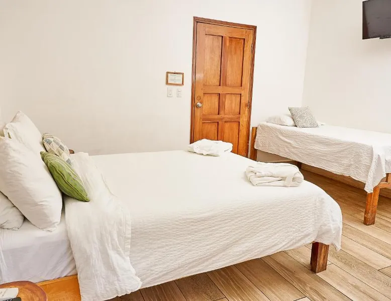Beachfront Location: Aaki Hotel in Las Peñitas offers a private beach area and direct beachfront access. Guests can relax on the terrace or in the garden, enjoying sea views and a year-round outdoor swimming pool. Comfortable Accommodations: Rooms feature air-conditioning, private bathrooms with free toiletries, showers, and TVs. Additional amenities include balconies, terraces, and tiled floors, ensuring a comfortable stay. Dining Experience: The on-site restaurant serves international cuisine with vegetarian and vegan options. Breakfast includes continental, American, and à la carte selections, featuring warm dishes, pancakes, cheese, and fruits. Convenient Services: Guests benefit from free WiFi, massage services, a bar, and a paid airport shuttle service. The hotel provides a 24-hour front desk, concierge service, and free on-site private parking. This air-conditioned family room is consisted of of a flat-screen TV with cable channels, a private bathroom as well as a terrace with garden views. The unit has 3 beds.