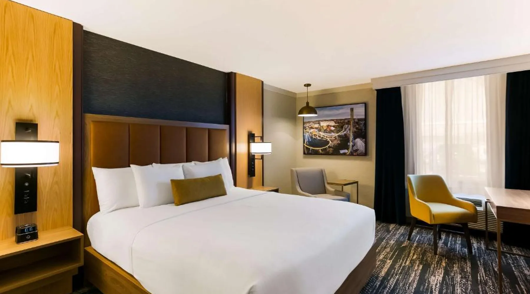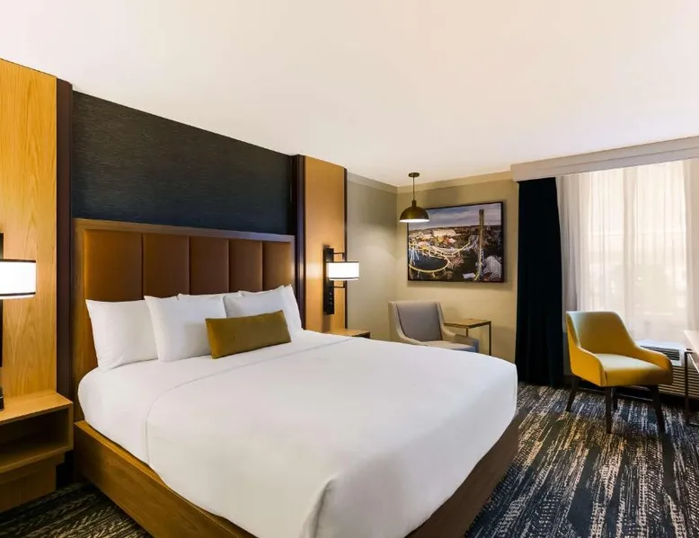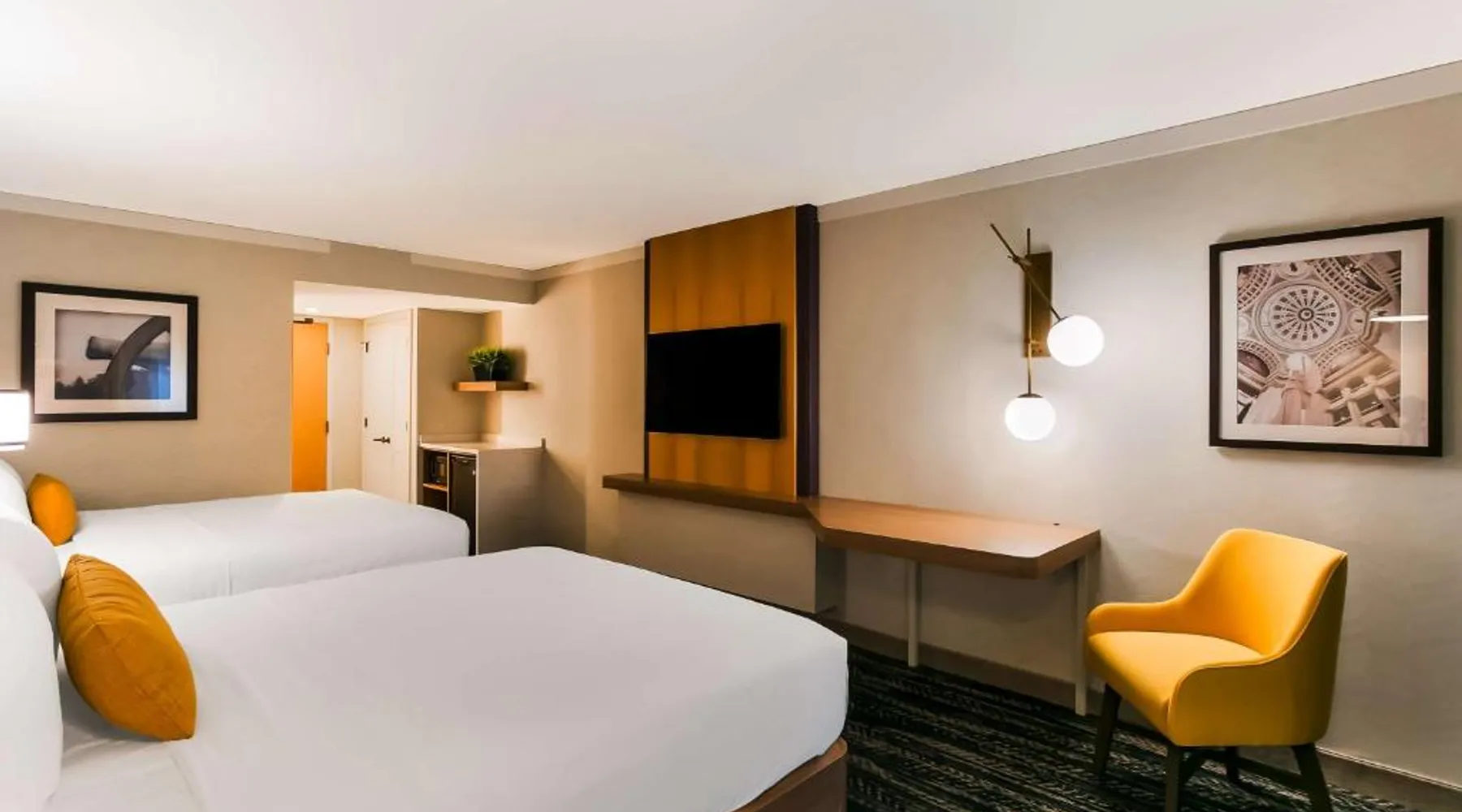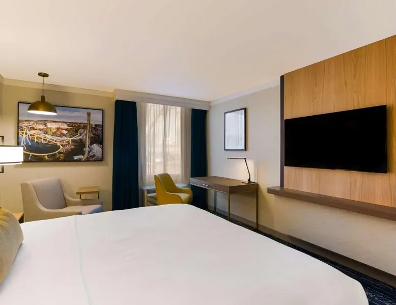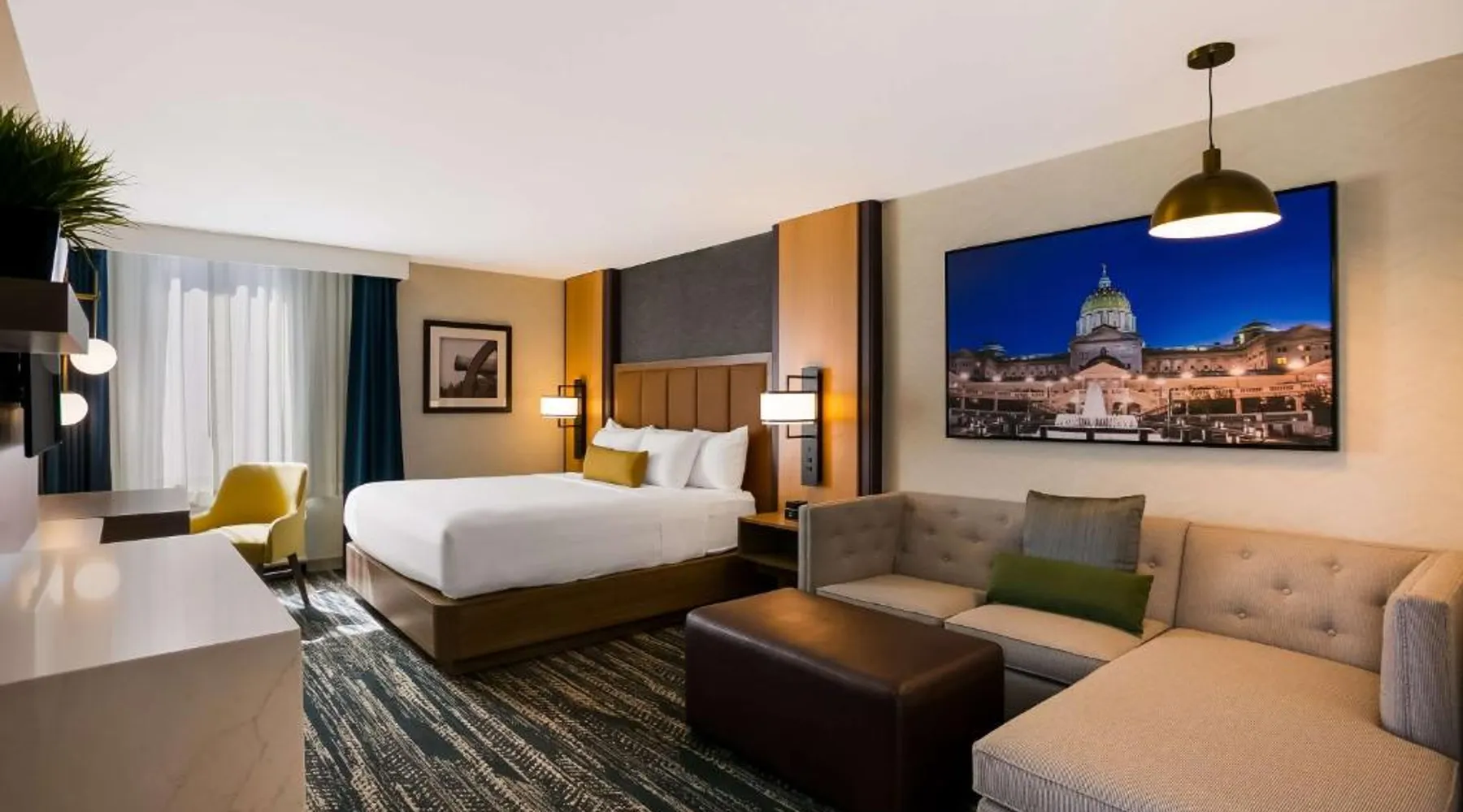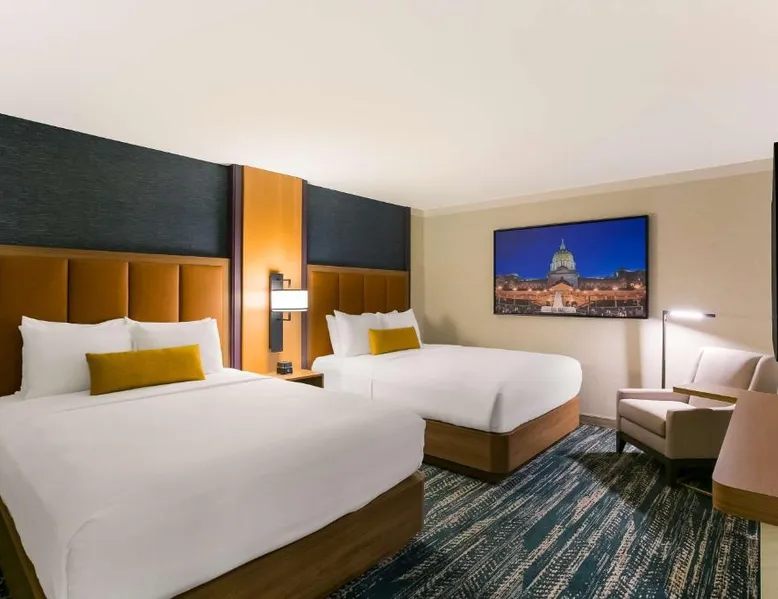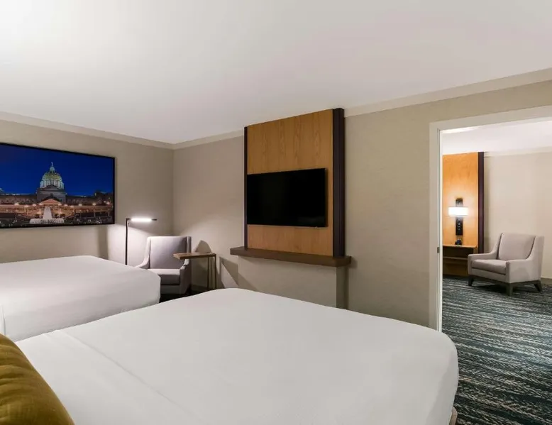 This hotel, located just 1.4 mi off Interstate 83 in Harrisburg, Pennsylvania, features an indoor pool and on-site dining. The National Civil War Museum is 13 minutes’ drive away. Rooms at the Best Western Premier, the Central Hotel and Conference Center all feature free Wi-Fi and a flat-screen cable TV. They are decorated in modern furnishings and include a microwave, refrigerator, and coffee making facilities. O’Reilly’s Tap Room has an extensive beer selection and serves comfort food and Irish cuisine for lunch and dinner. The hotel has an on-site fitness center and business center. Guests can take advantage of laundry facilities and free shuttle services. The Hollywood Casino at Penn National Race Course is 15 mi from the hotel. Harrisburg City Island is 15 minutes’ drive away. The quadruple room features air conditioning, a tea and coffee maker and a safe deposit box. The unit has 2 beds.