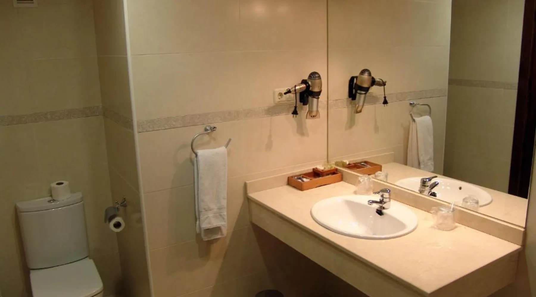 Comfortable Accommodations: Hotel Palaterna in Pastrana offers family rooms with private bathrooms, featuring free WiFi, spa baths, and modern amenities. Each room includes a sofa, wardrobe, TV, and free toiletries. Exceptional Facilities: Guests can enjoy a lounge, outdoor fireplace, hot tub, and outdoor seating area. Additional facilities include a elevator, 24-hour front desk, daily housekeeping, bicycle parking, and a tour desk. Convenient Location: Located 55 mi from Adolfo Suarez Madrid-Barajas Airport, the hotel is near attractions such as Parque de la Concordia (27 mi), Panteon de la Duquesa de Sevillano (28 mi), and Palacio del Infantado (29 mi). Guest Satisfaction: Highly rated for its convenient location, attentive staff, and excellent breakfast provided by the property. This split-level room offers 2 single beds which can be joined together, and a private bathroom with bath and shower, free toiletries and hairdryer. There is a lounge area with a sofa and TV; and bed linen and towels are provided.