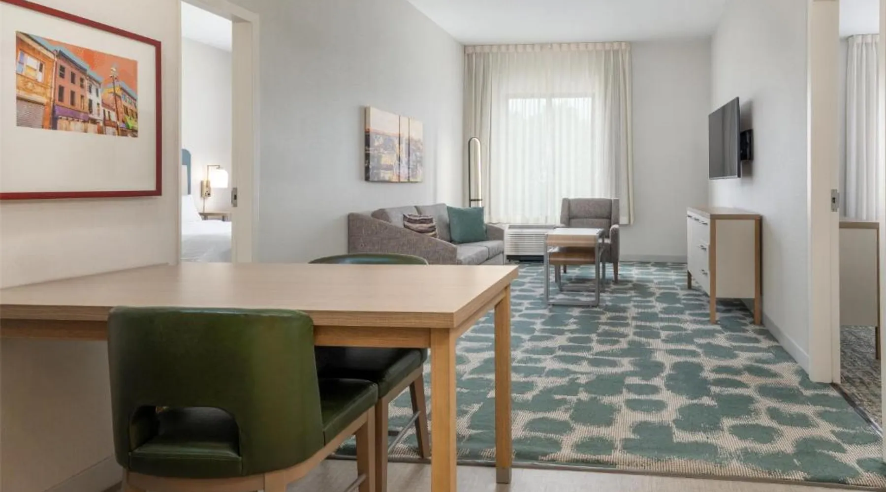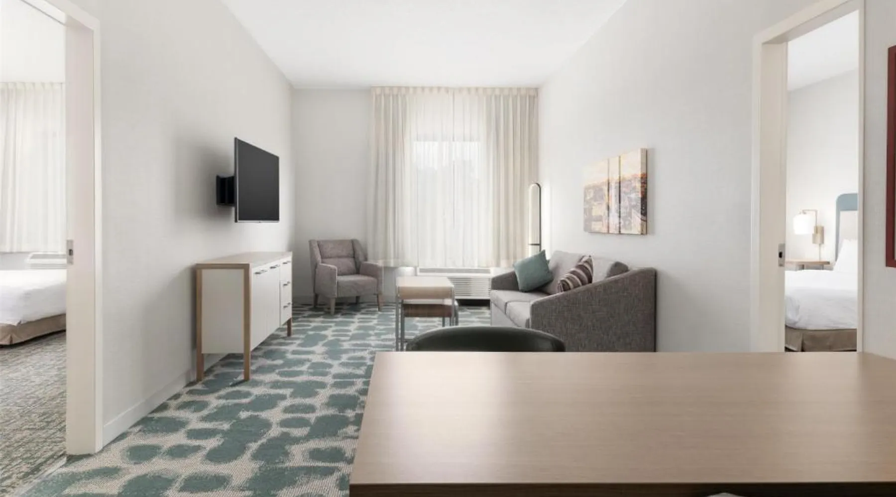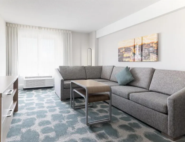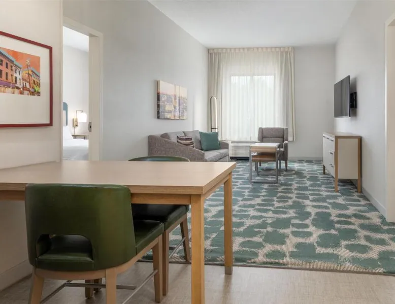 Comfortable Accommodations: Rooms feature air-conditioning, kitchen, tea and coffee maker, hairdryer, refrigerator, work desk, seating area, free toiletries, microwave, dishwasher, kitchenware, toaster, and TV. Dining and Leisure: The hotel offers an indoor swimming pool, restaurant serving American cuisine, bar, fitness room, lounge, and barbecue facilities. Convenient Location: Located in Hanover, 1.9 mi from Baltimore - Washington International Airport. Nearby attractions include Carroll Park and Sports Legends Museum At Camden Yards, each 12 mi away. Guest Services: Provides free airport shuttle service, 24-hour front desk, paid on-site parking, and a business area. In the well-fitted kitchen, guests will find a refrigerator, a dishwasher, kitchenware and a microwave. The suite is furnished with a desk and a seating area and offers air conditioning and a tea and coffee maker. The unit has 2 beds.