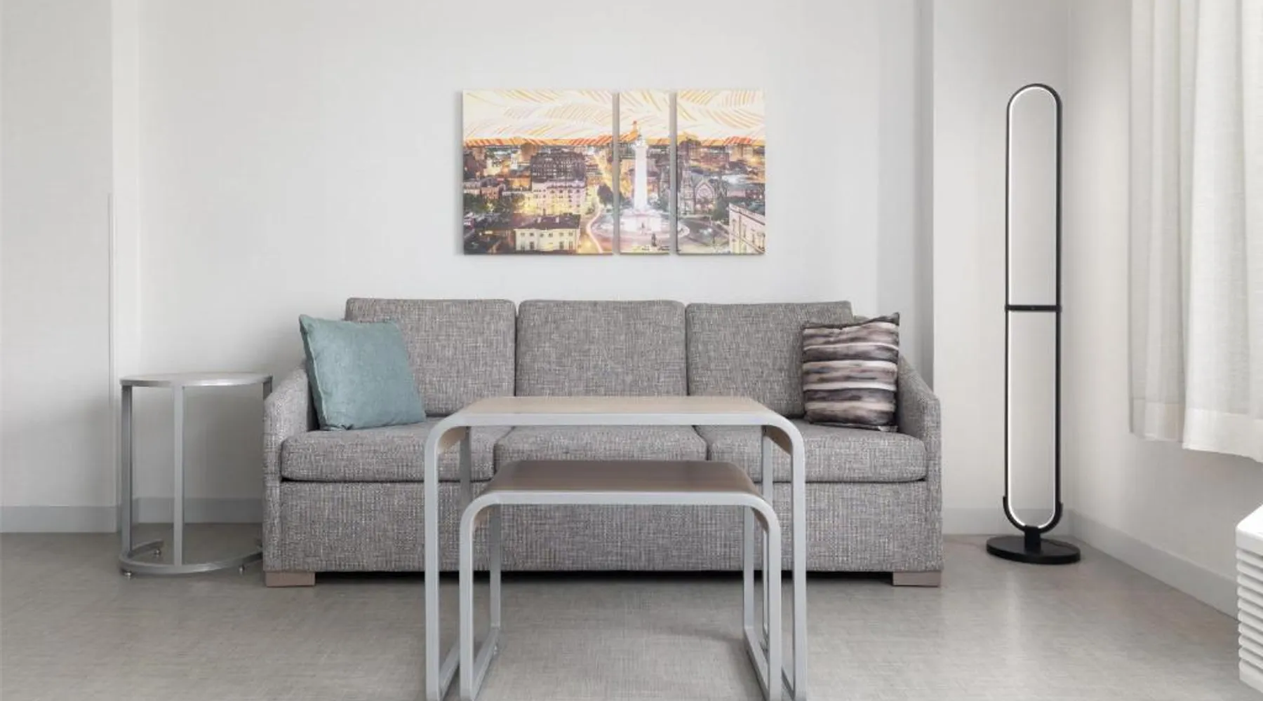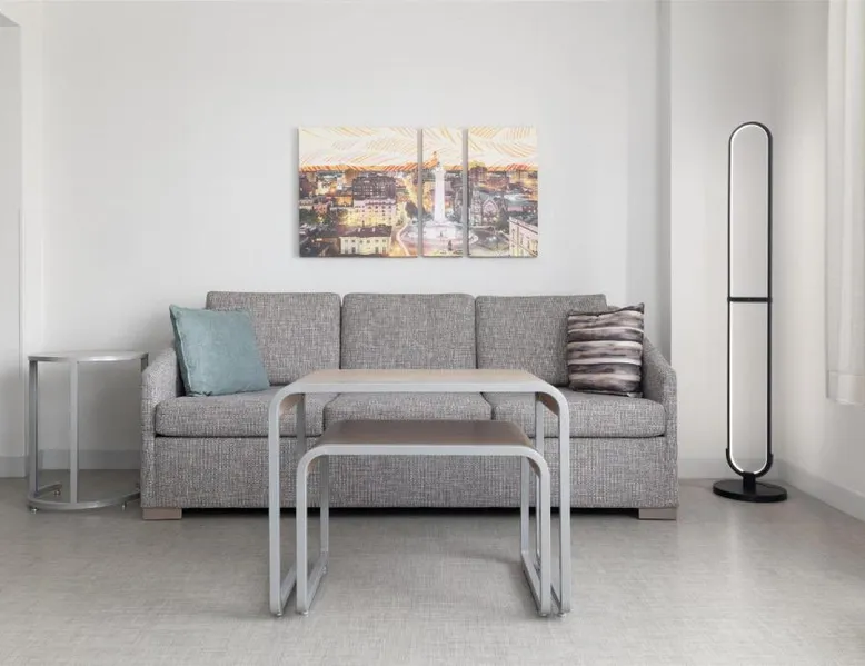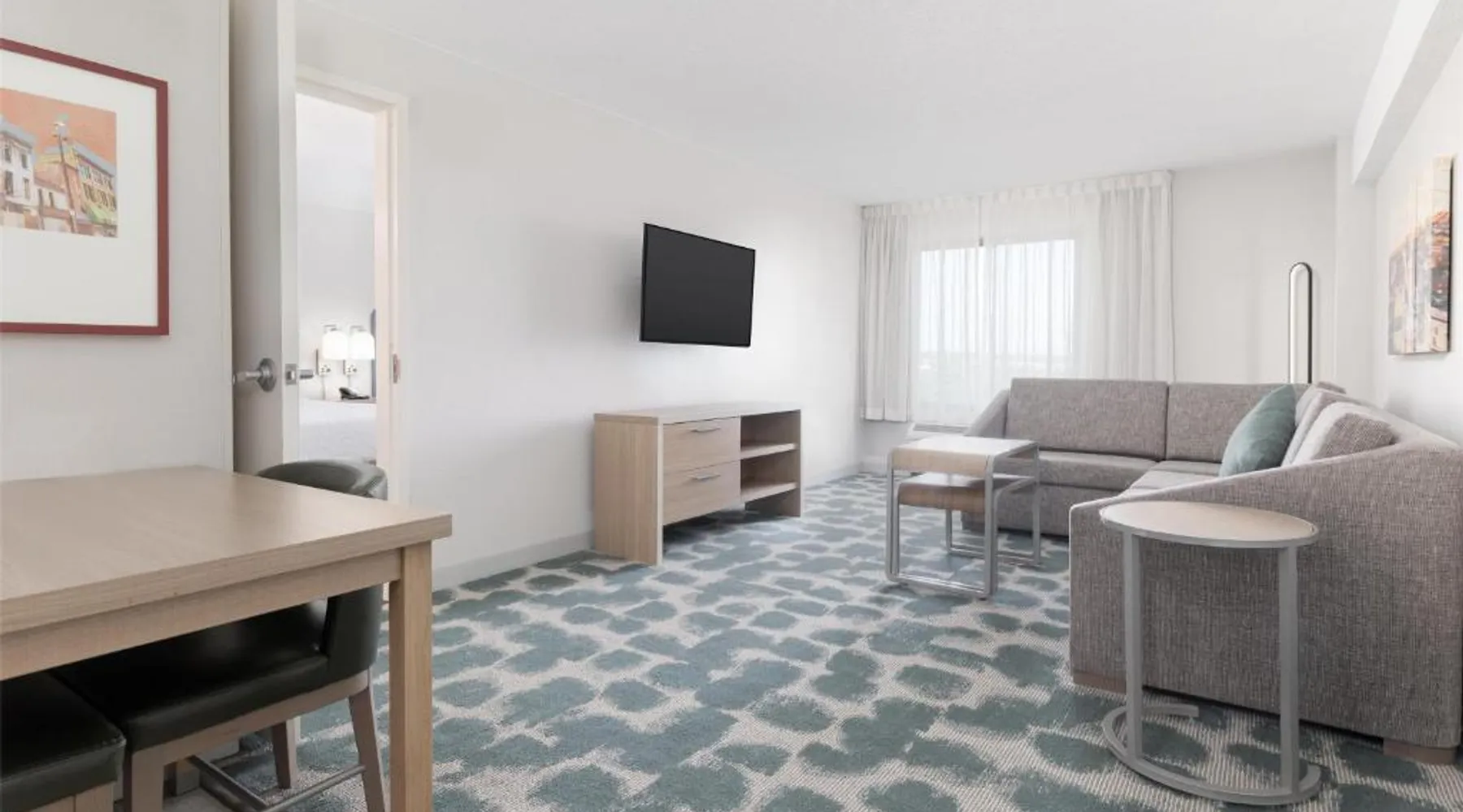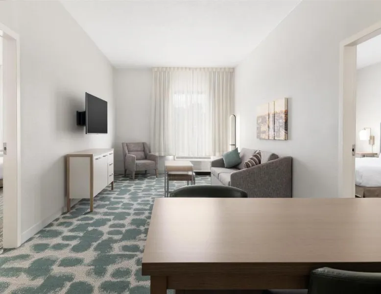 Comfortable Accommodations: Rooms feature air-conditioning, kitchen, tea and coffee maker, hairdryer, refrigerator, work desk, seating area, free toiletries, microwave, dishwasher, kitchenware, toaster, and TV. Dining and Leisure: The hotel offers an indoor swimming pool, restaurant serving American cuisine, bar, fitness room, lounge, and barbecue facilities. Convenient Location: Located in Hanover, 1.9 mi from Baltimore - Washington International Airport. Nearby attractions include Carroll Park and Sports Legends Museum At Camden Yards, each 12 mi away. Guest Services: Provides free airport shuttle service, 24-hour front desk, paid on-site parking, and a business area. In the well-fitted kitchen, guests will find a refrigerator, a dishwasher, kitchenware and a microwave. The suite is furnished with a desk and a seating area and offers air conditioning and a tea and coffee maker. The unit has 2 beds.