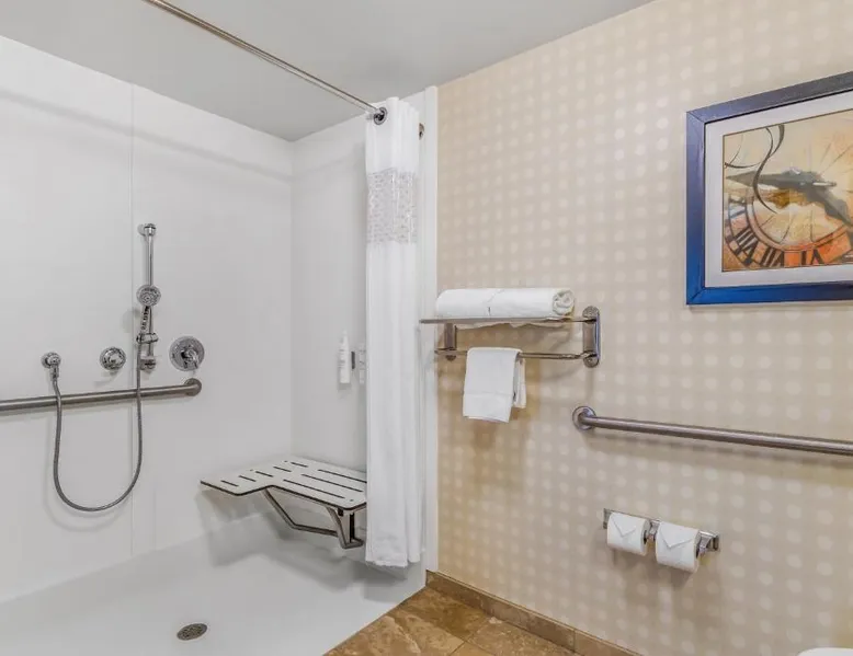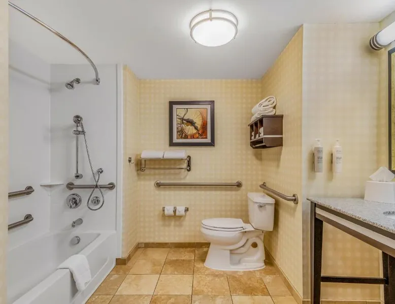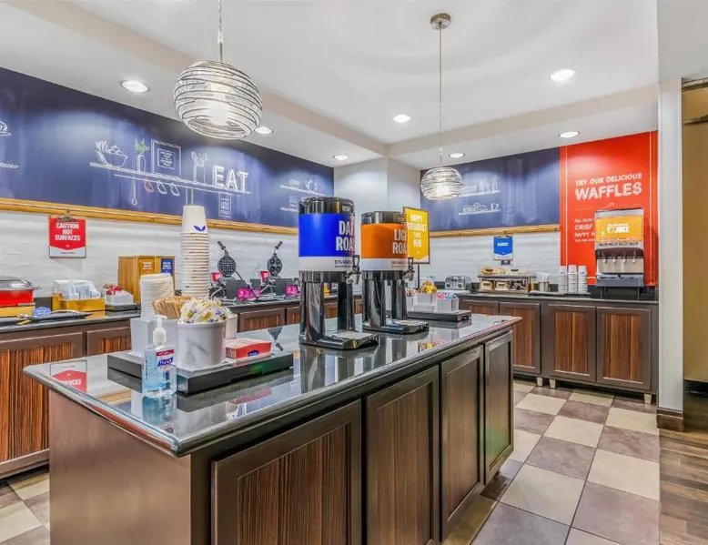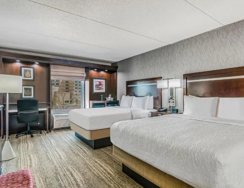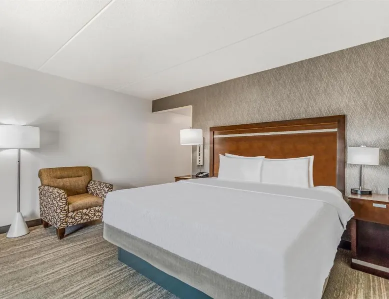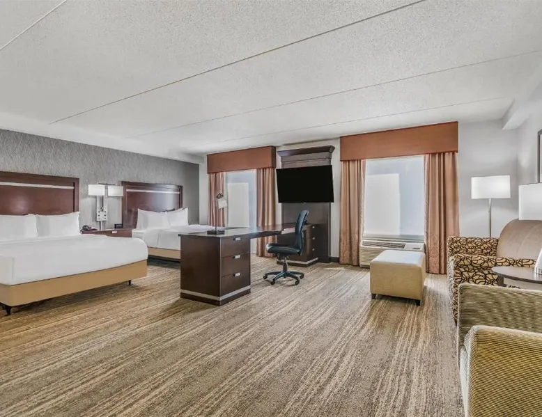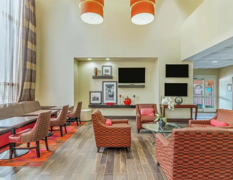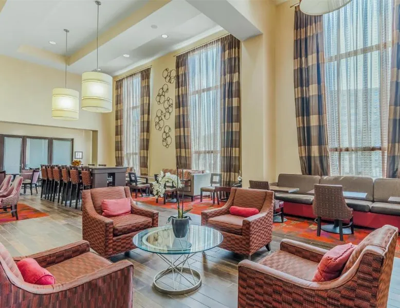 Comfortable Accommodations: Hampton Inn & Suites Detroit/Airport Romulus in Romulus offers family rooms with air-conditioning, free WiFi, and amenities such as a work desk, microwave, and TV. Facilities and Services: Guests enjoy a fitness center, indoor swimming pool, hot tub, and free airport shuttle service. Additional services include a 24-hour front desk, daily housekeeping, and free on-site private parking. Breakfast and Dining: A continental buffet breakfast is served with juice, fresh pastries, and fruits. The property also features a business area and a lounge for relaxation. Location and Attractions: Located 1.9 mi from Detroit Metro Airport, the hotel is near attractions like Baker College (9.9 mi) and Motown Historical Museum (19 mi). Guests appreciate the room cleanliness and the airport shuttle service. Provides a seating area and sofa bed.