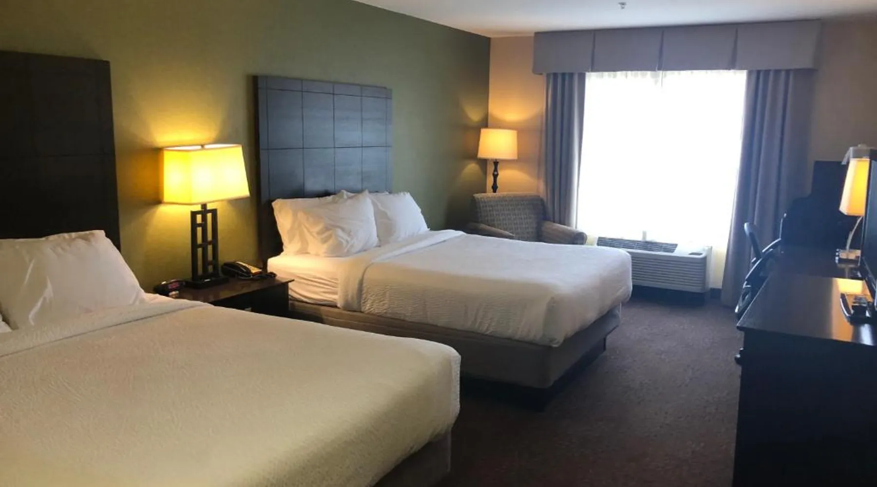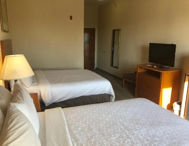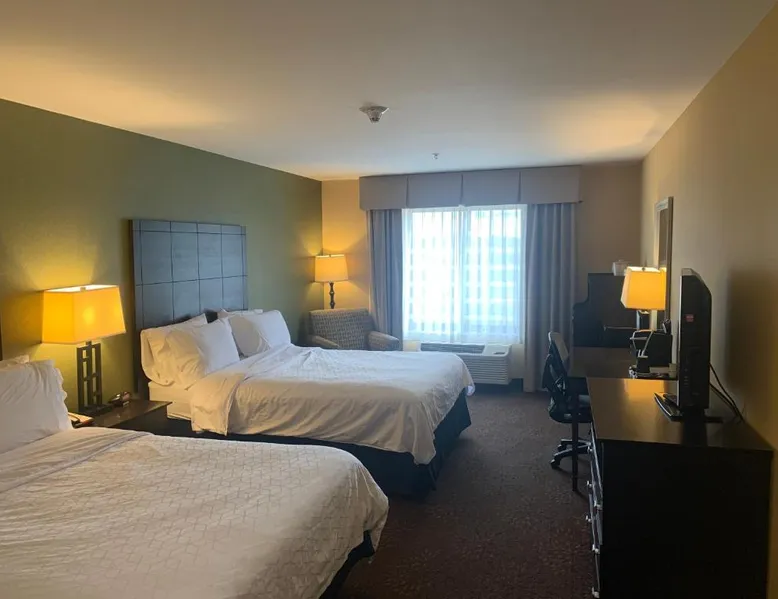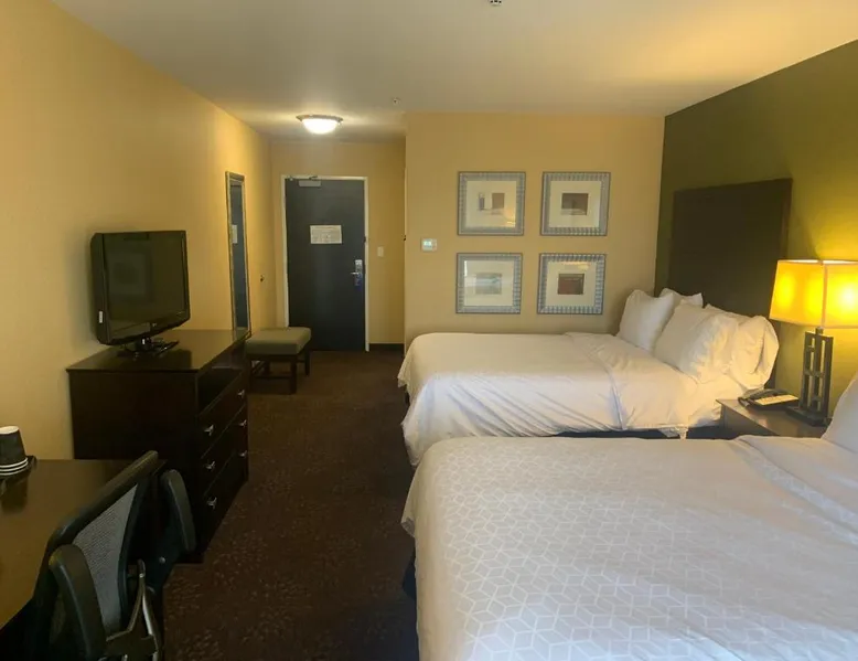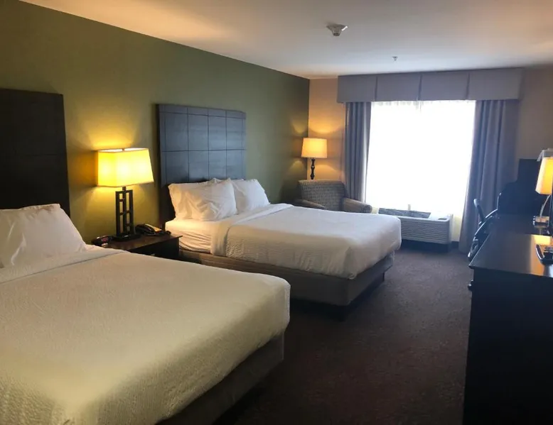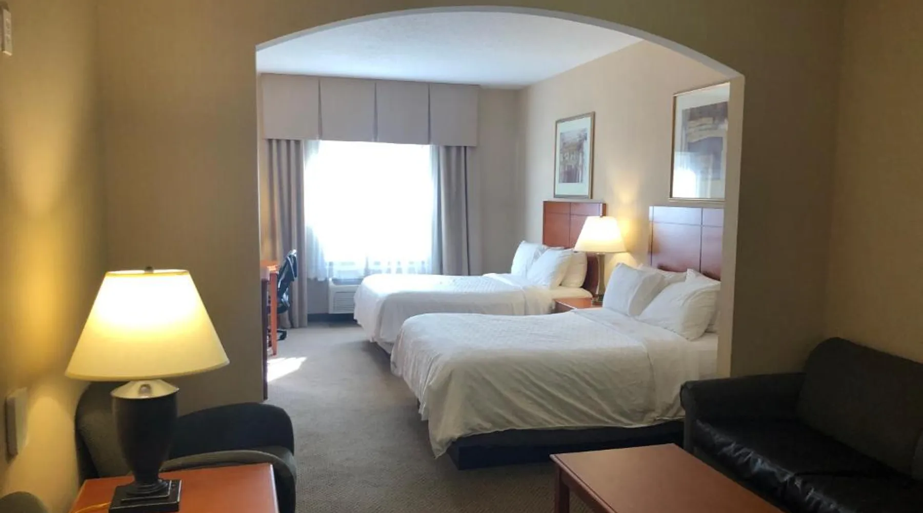 Comfortable Accommodations: Holiday Inn Express Hotel & Suites Lansing-Dimondale by IHG in Dimondale offers family rooms with air-conditioning, private bathrooms, and free WiFi. Each room includes a work desk, sofa bed, and TV. Leisure Facilities: Guests can enjoy a fitness center, sun terrace, indoor swimming pool, and hot tub. Additional amenities include a lounge, fitness room, and outdoor seating area. Dining Options: A variety of breakfast options are available, including American, buffet, Ã la carte, vegetarian, vegan, gluten-free, and kosher. Breakfast includes local specialties, warm dishes, fresh pastries, and more. Convenient Location: Located 8.1 mi from Capital Region International Airport, the hotel is near Michigan State University (11 mi), Jack Breslin Arena (11 mi), and Wharton Center (11 mi). Free on-site parking is provided. This double room features a 42-inch flat-screen TV, tile/marble floor and sofa.