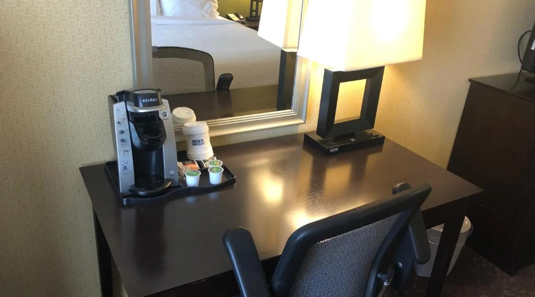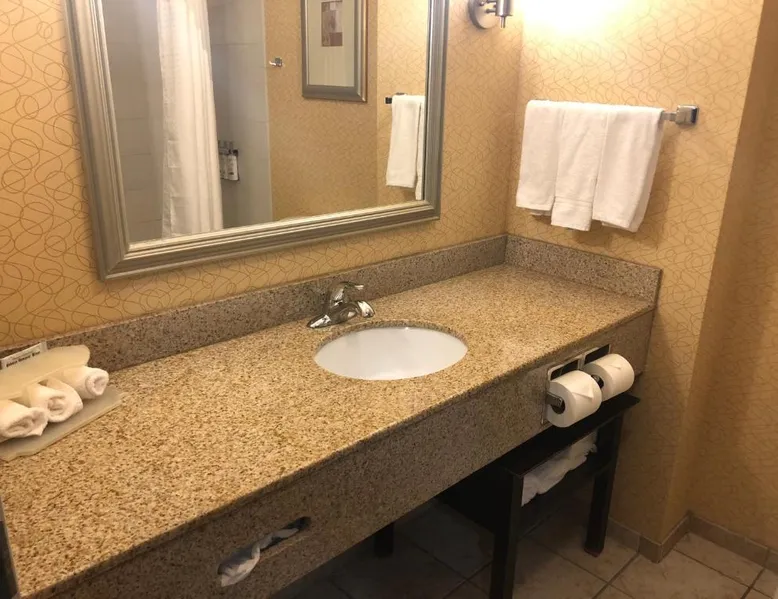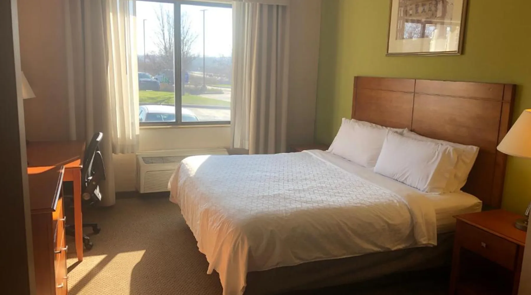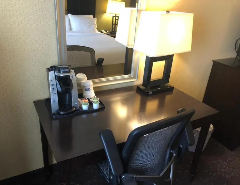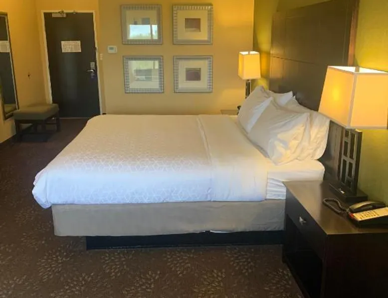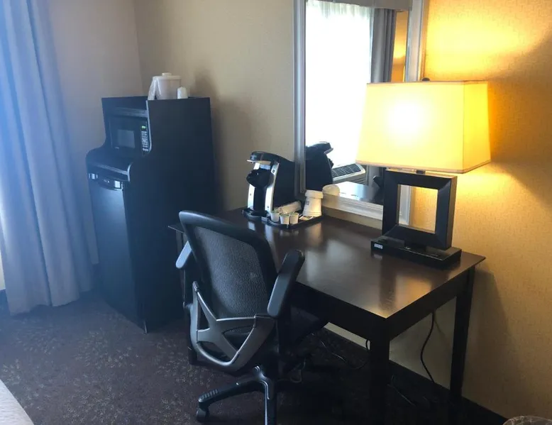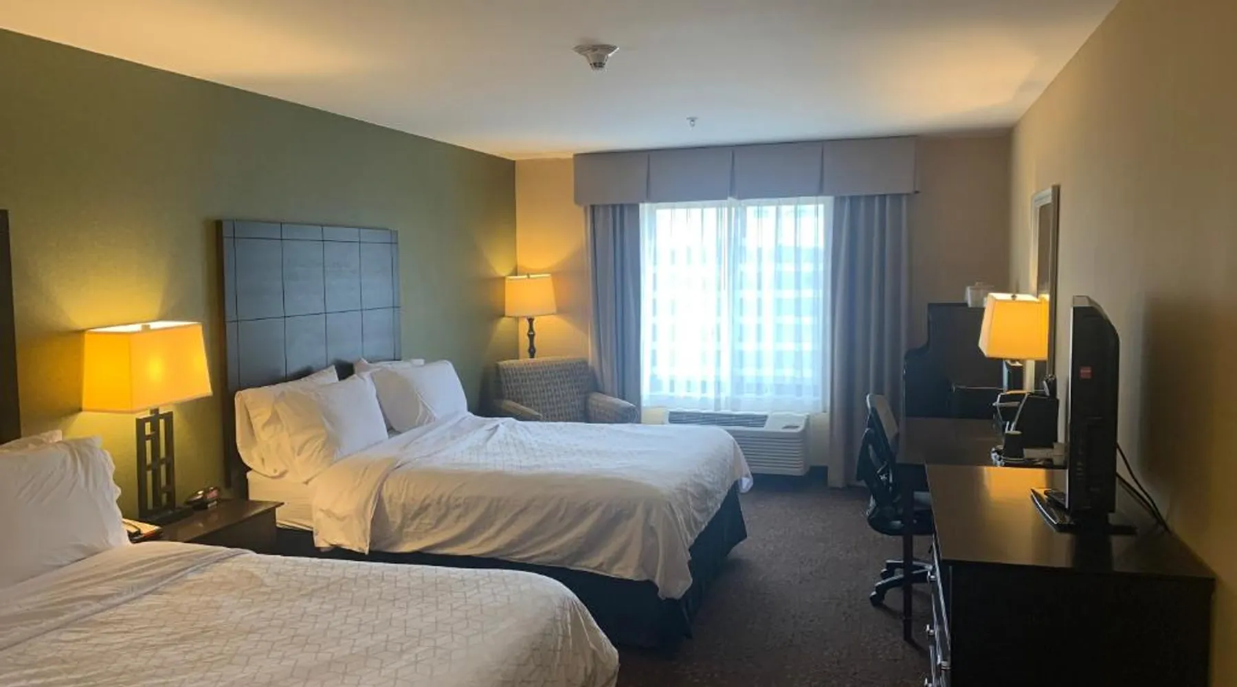 Comfortable Accommodations: Holiday Inn Express Hotel & Suites Lansing-Dimondale by IHG in Dimondale offers family rooms with air-conditioning, private bathrooms, and free WiFi. Each room includes a work desk, sofa bed, and TV. Leisure Facilities: Guests can enjoy a fitness center, sun terrace, indoor swimming pool, and hot tub. Additional amenities include a lounge, fitness room, and outdoor seating area. Dining Options: A variety of breakfast options are available, including American, buffet, Ã la carte, vegetarian, vegan, gluten-free, and kosher. Breakfast includes local specialties, warm dishes, fresh pastries, and more. Convenient Location: Located 8.1 mi from Capital Region International Airport, the hotel is near Michigan State University (11 mi), Jack Breslin Arena (11 mi), and Wharton Center (11 mi). Free on-site parking is provided. This double room features a 42-inch flat-screen TV, tile/marble floor and sofa.