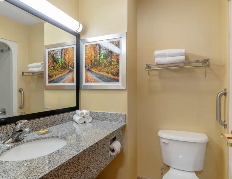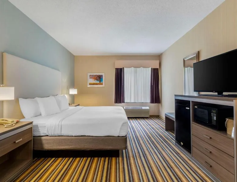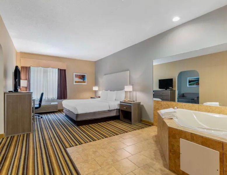 This Berlin, Connecticut hotel is 8.1 mi from Dinosaur State Park. The hotel offers free WiFi and free on-site parking. All guest rooms at the Best Western Plus New England Inn & Suites are equipped with a coffee/tea maker, a microwave and a cable TV. Certain rooms have whirlpool tubs and fireplaces. Best Western Plus New England Inn & Suites features an indoor swimming pool and a fitness center. A full breakfast and newspaper are provided every morning. A business center with copy and fax service is also available. Lake Compounce is 16 mi from the property while Hartford city center is 15 mi away. This king room features a microwave, a refrigerator and a flat-screen TV.