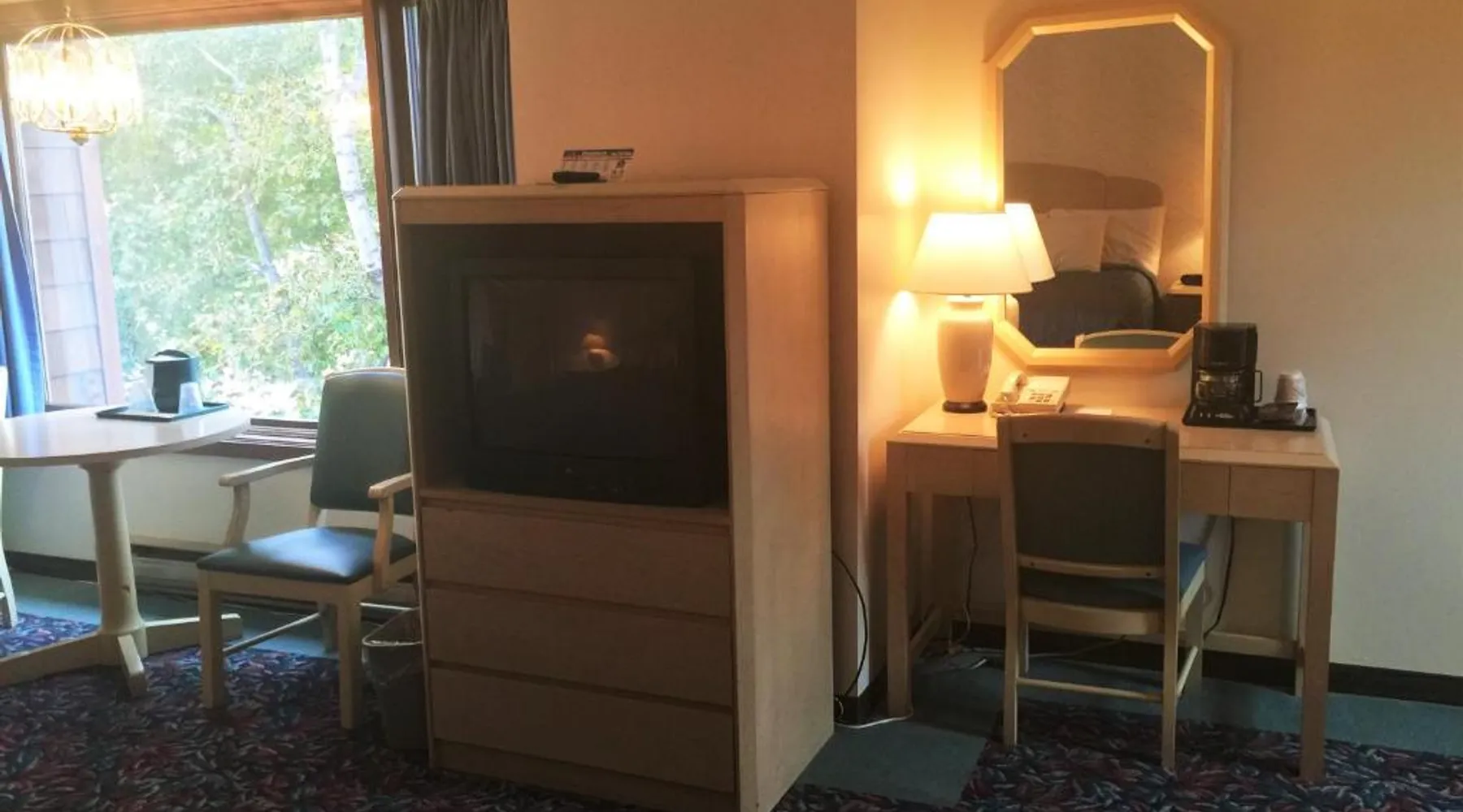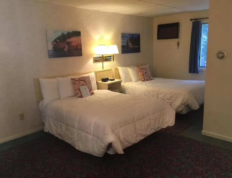 Comfortable Accommodations: Cedar Motor Inn in Marquette offers family rooms with air-conditioning, kitchenettes, and free WiFi. Each room includes a seating area, TV, and essential amenities such as a hairdryer and coffee machine. Relaxing Facilities: Guests can enjoy an indoor swimming pool, sauna, and hot tub. The property also features a 24-hour front desk and free on-site parking, ensuring convenience and security. Local Attractions: Northern Michigan University is 3.1 mi away, while Al Quaal Recreation Ski Area lies 12 mi from the inn. Sawyer International Airport is 18 mi distant, providing easy access for travelers. The suite's kitchenette, which has a refrigerator and a microwave, is available for cooking and storing food. The suite has a seating area, a coffee machine and a wardrobe. The unit has 2 beds.