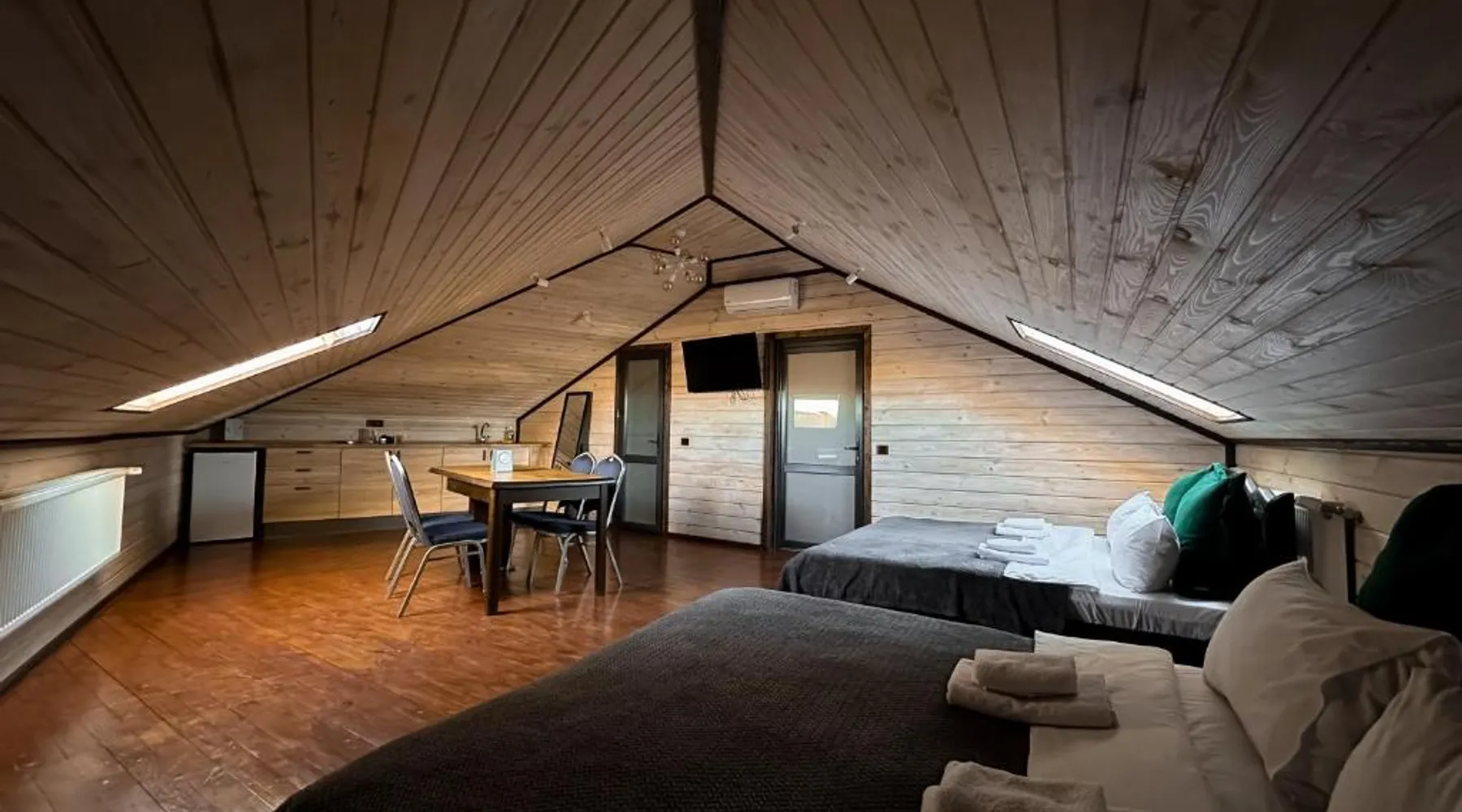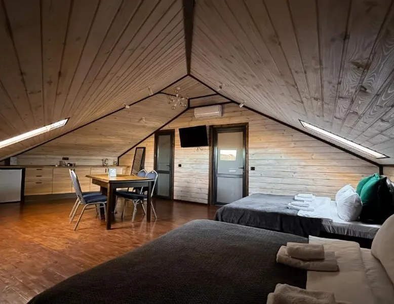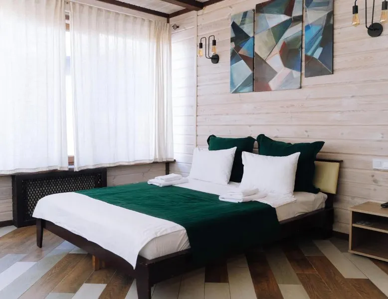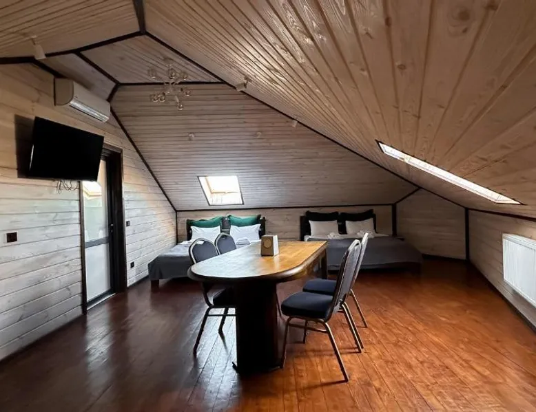 Comfortable Accommodations: Green Zone in Kolodiy offers family rooms with air-conditioning, private bathrooms, and modern amenities. Each room includes a kitchenette, balcony, and free WiFi, ensuring a pleasant stay. Leisure Facilities: Guests can enjoy spa facilities, a swimming pool with a view, sun terrace, and open-air bath. Additional amenities include a sauna, steam room, and outdoor play area, catering to all ages. Dining Options: The resort features a restaurant and bar, offering a variety of dining experiences. Breakfast in the room, room service, and outdoor seating areas provide flexibility for all guests. Location and Activities: Located in Kolodiy, Green Zone is located on a quiet street with lake and garden views. Activities such as walking tours and hiking are available nearby. The sauna and fireplace are the special features of this holiday home. Featuring a private entrance, this air-conditioned holiday home consists of 1 living room, 1 separate bedroom and 1 bathroom with a shower and a hairdryer. Guests will find a refrigerator, kitchenware and a tea and coffee maker in the kitchen. The holiday home also offers a barbecue. This holiday home features soundproof walls, flat-screen TV with cable channels, lake views, as well as chocolate for guests. The unit offers 2 beds.