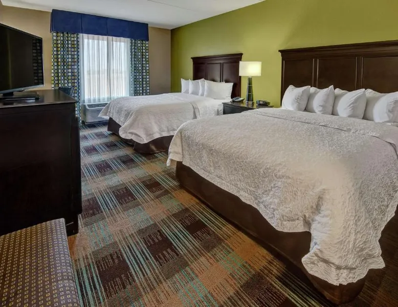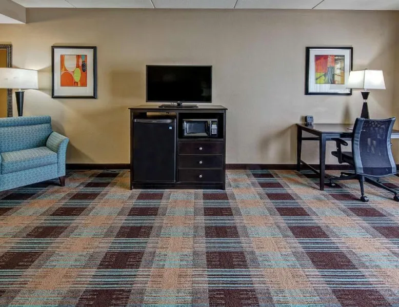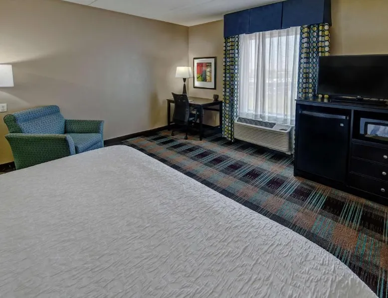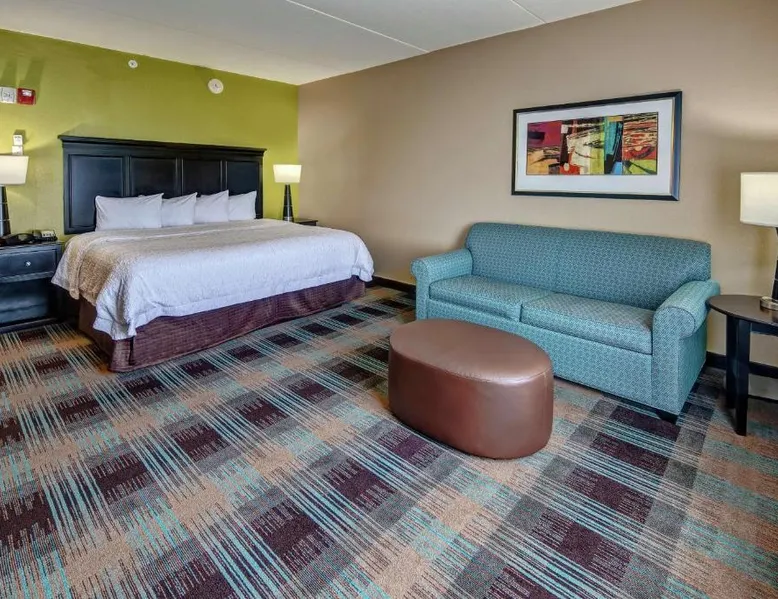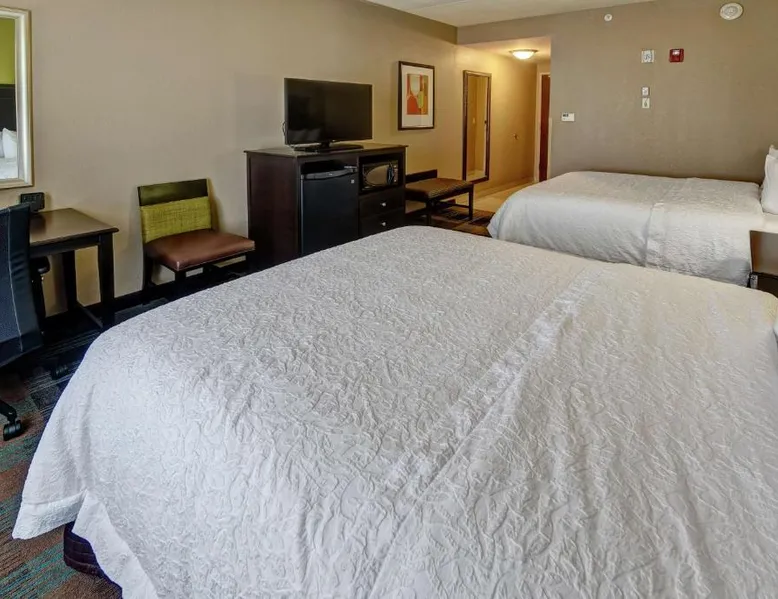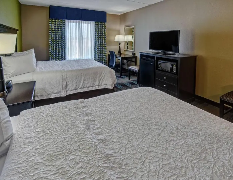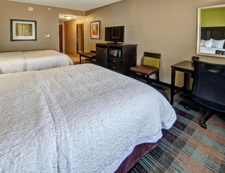 Comfortable Accommodations: Hampton Inn & Suites Clarksville in Clarksville offers family rooms with free WiFi, a seasonal outdoor swimming pool, and a fitness room. Guests enjoy amenities such as a minimarket, elevator, and 24-hour front desk. Convenient Facilities: The hotel provides free on-site parking, a tea and coffee maker, hairdryer, refrigerator, microwave, shower, and TV. Additional features include a sofa bed, ensuring a pleasant stay. Prime Location: Located 50 mi from Nashville International Airport, the hotel is near attractions like Dunbar Cave (5 mi), Customs House Museum and Cultural Center (6.8 mi), and McGregor Park Riverwalk (7.5 mi). Guests appreciate the convenient location, breakfast provided by the property, and attentive staff. This nonsmoking room includes a microwave, refrigerator and cable TV.