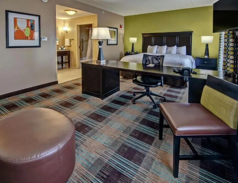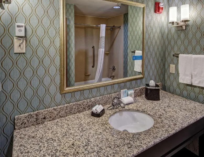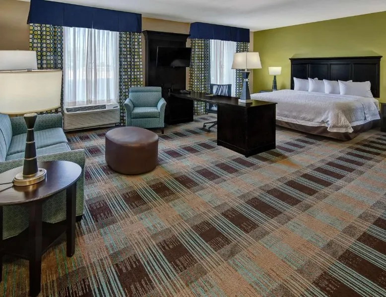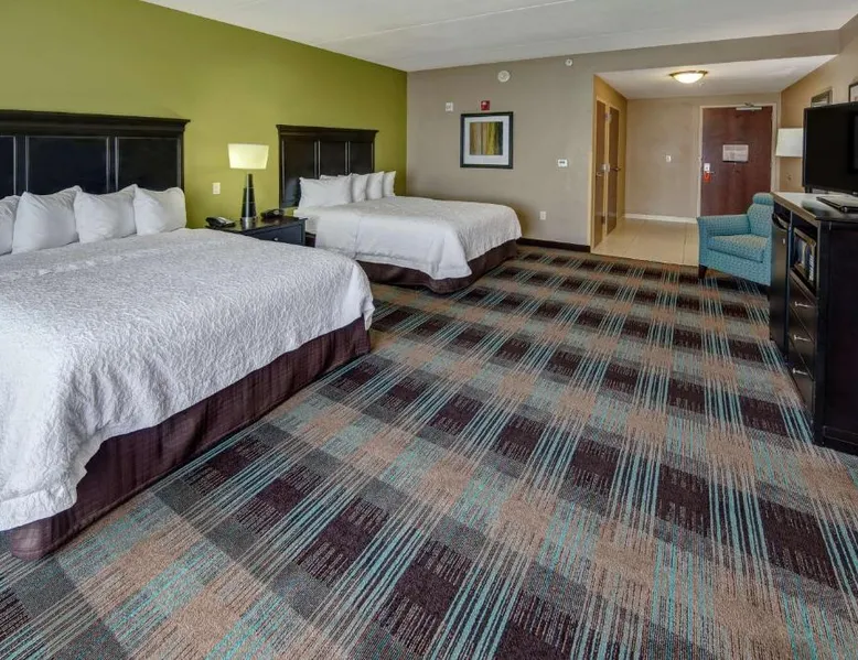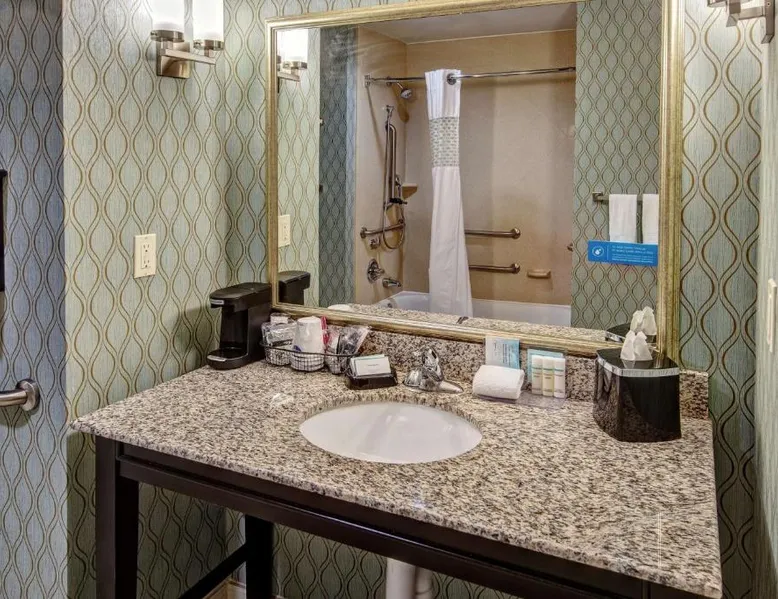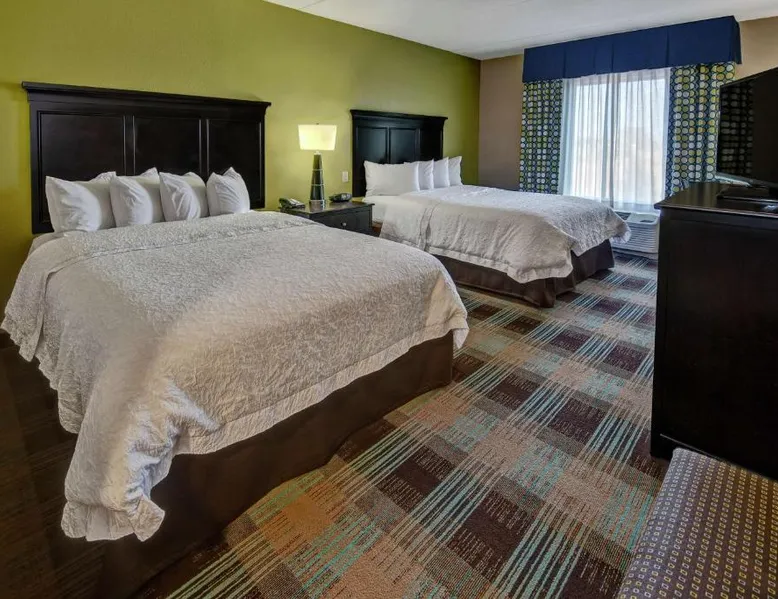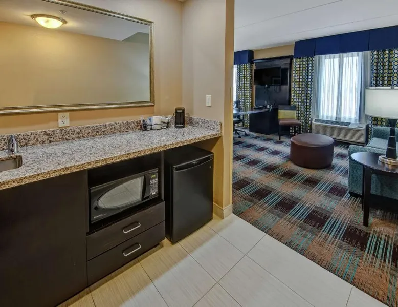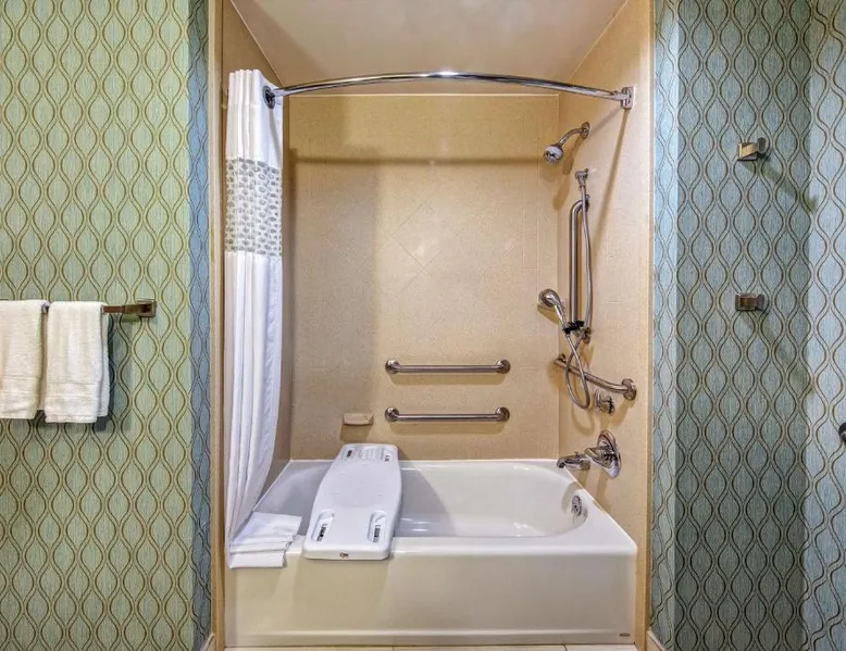 Comfortable Accommodations: Hampton Inn & Suites Clarksville in Clarksville offers family rooms with free WiFi, a seasonal outdoor swimming pool, and a fitness room. Guests enjoy amenities such as a minimarket, elevator, and 24-hour front desk. Convenient Facilities: The hotel provides free on-site parking, a tea and coffee maker, hairdryer, refrigerator, microwave, shower, and TV. Additional features include a sofa bed, ensuring a pleasant stay. Prime Location: Located 50 mi from Nashville International Airport, the hotel is near attractions like Dunbar Cave (5 mi), Customs House Museum and Cultural Center (6.8 mi), and McGregor Park Riverwalk (7.5 mi). Guests appreciate the convenient location, breakfast provided by the property, and attentive staff. This nonsmoking room includes a microwave, refrigerator and cable TV.