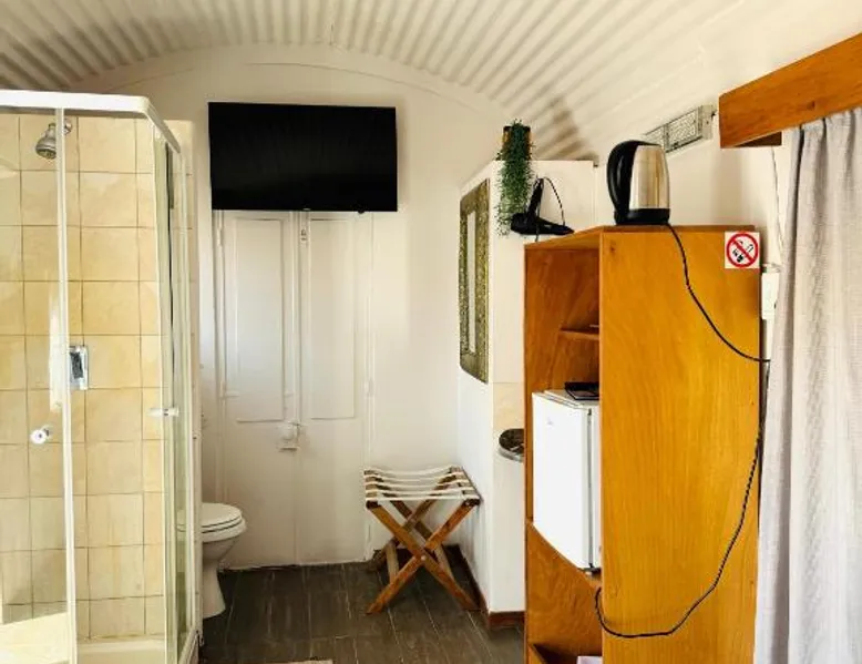 Comfortable Accommodations: Conductor's Inn in Tsumeb offers family rooms with garden views, air-conditioning, and private bathrooms. Each room includes a tea and coffee maker, refrigerator, and free toiletries. Relaxing Facilities: Guests can enjoy spa facilities, a terrace, and a bar. The lodge features a garden, outdoor fireplace, and free WiFi throughout. Dining Experience: An à la carte breakfast with champagne is served daily. Additional amenities include a minimarket, coffee shop, and outdoor seating areas. Local Attractions: Tsumeb Museum is 5 mi away, providing cultural activities. Hiking and cycling are available for outdoor enthusiasts. Featuring free toiletries, this double room includes a private bathroom with a shower and a hairdryer. The air-conditioned double room features a flat-screen TV, a tea and coffee maker, a wardrobe, tumble dryer as well as garden views. The unit has 1 bed.