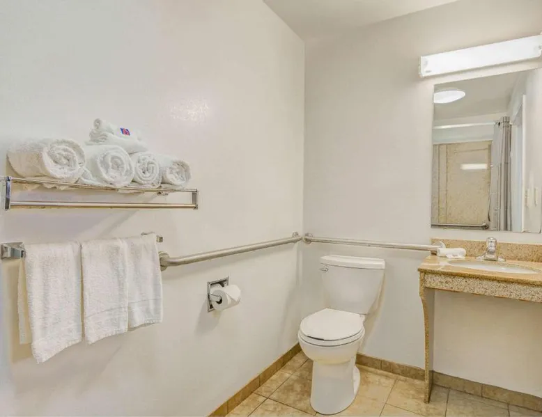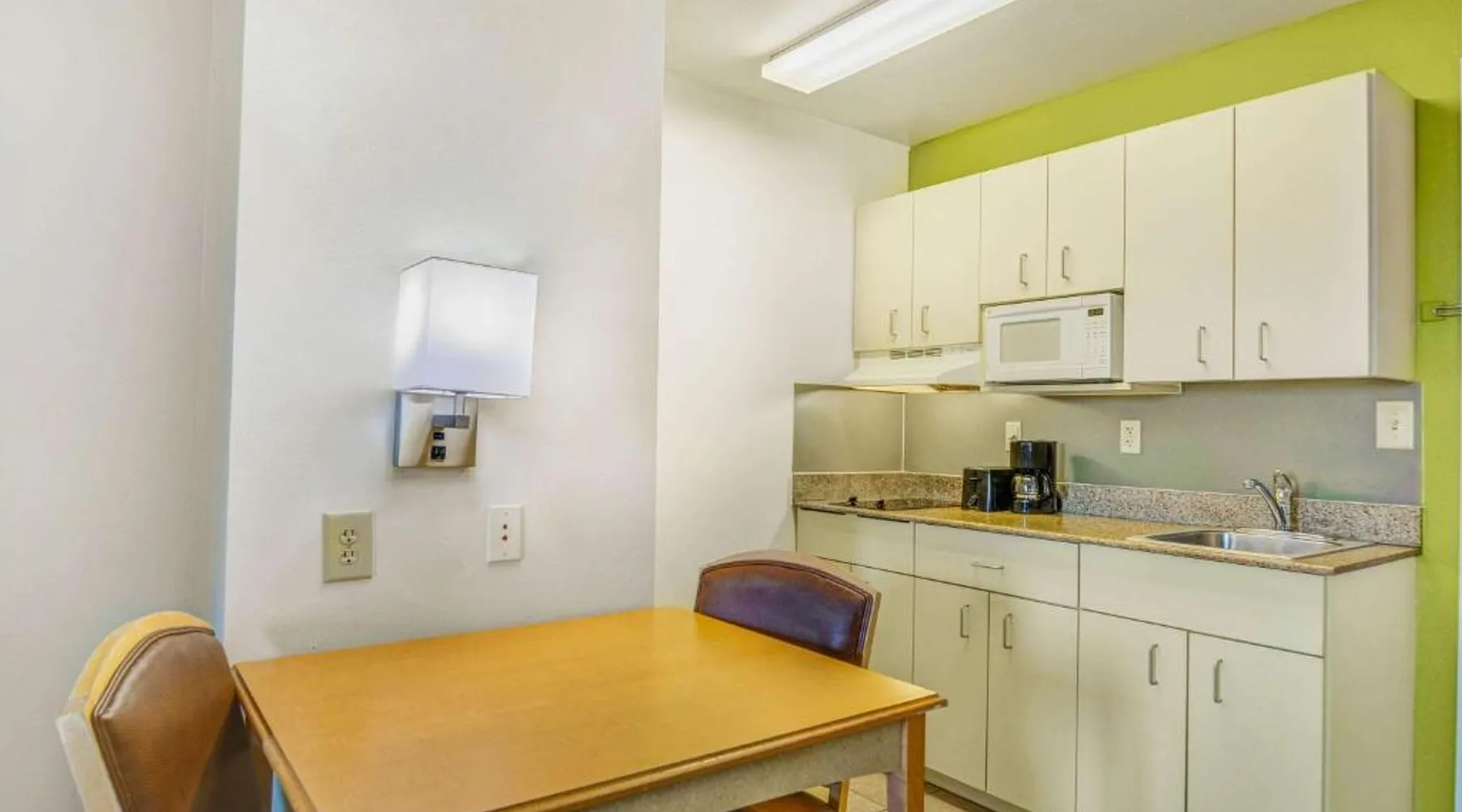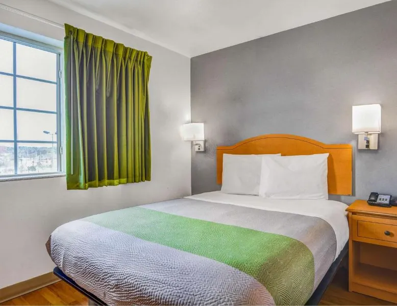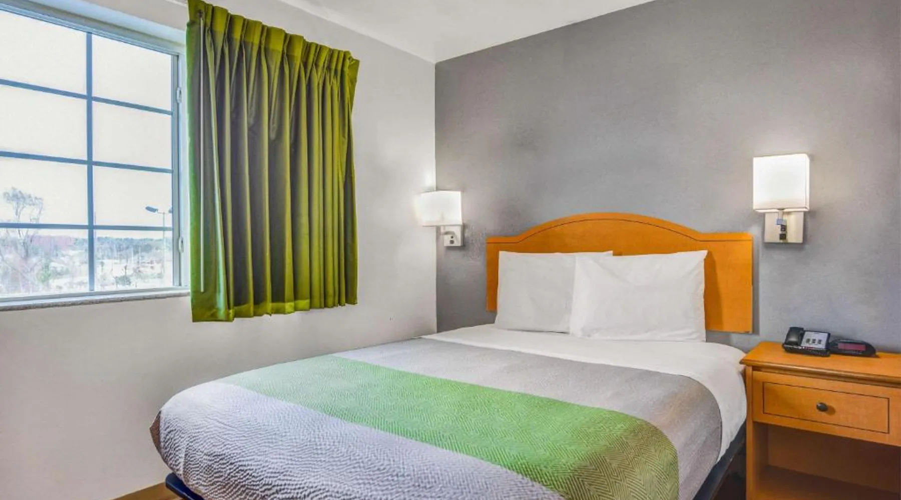 Comfortable Accommodations: Studio 6-Opelika, AL - Auburn Al in Opelika offers 4-star comfort with air-conditioning, kitchenettes, private bathrooms, and free WiFi. Each room includes a coffee machine, TV, and bath or shower. Exceptional Facilities: Guests can enjoy an outdoor swimming pool and a elevator for easy access. The hotel provides a 24-hour front desk, free on-site private parking, and free WiFi throughout the property. Convenient Location: Located 34 mi from Columbus Airport, the hotel is near Auburn University (5.6 mi), Jordan Hare Stadium (6.8 mi), and Toomers Corner (5.6 mi). Other attractions include The Gallery on Railroad (3.1 mi) and Jule Collins Smith Museum of Fine Art (6.8 mi). The double room's kitchenette is available for cooking and storing food. This air-conditioned double room is consisted of of a TV with cable channels and a private bathroom. The unit has 1 bed.