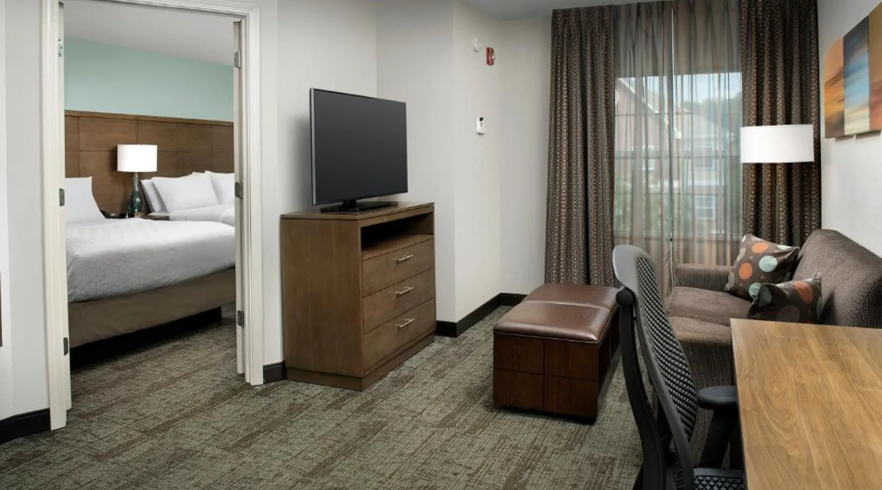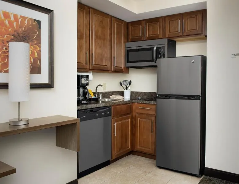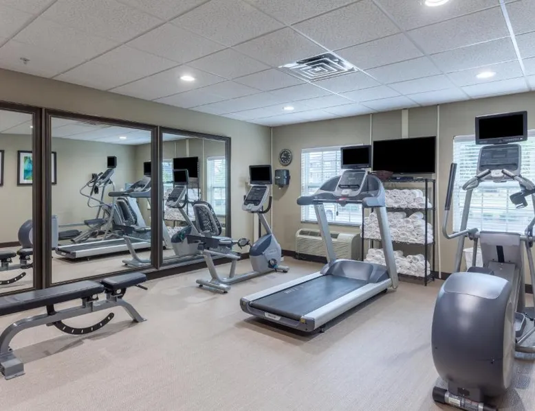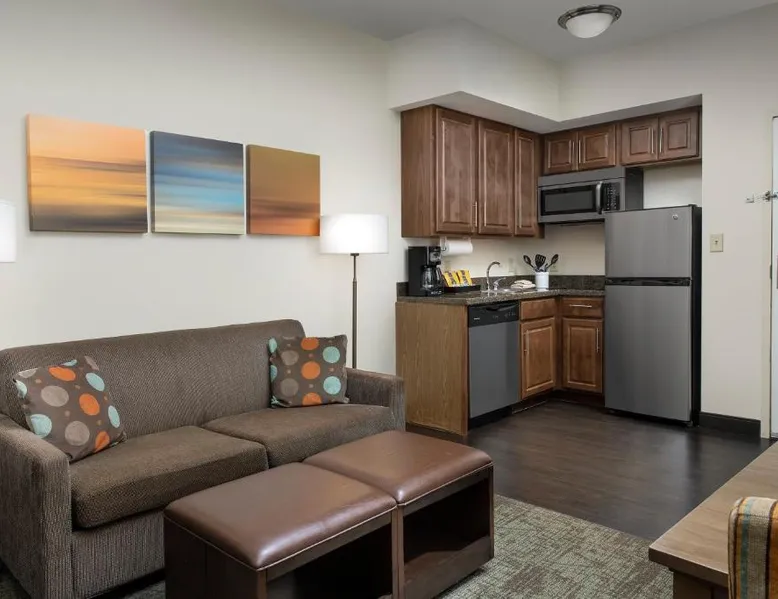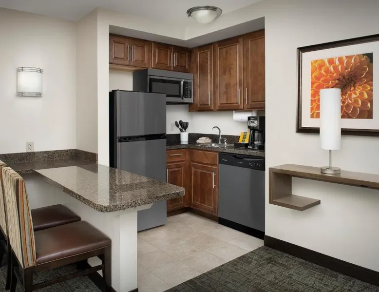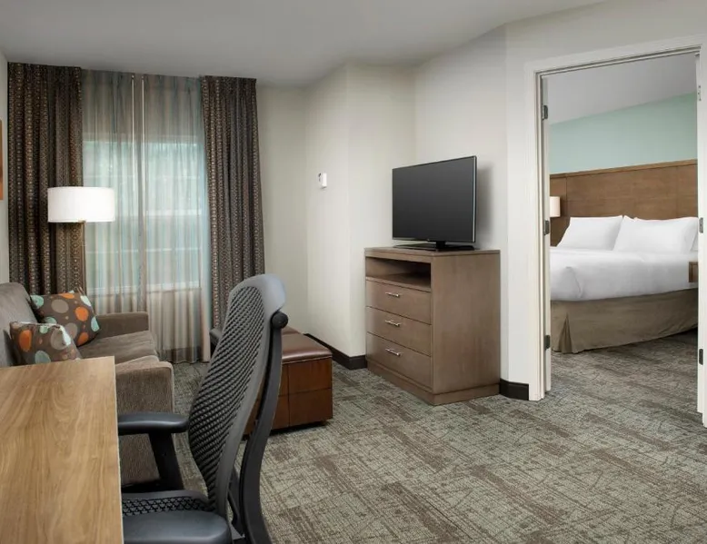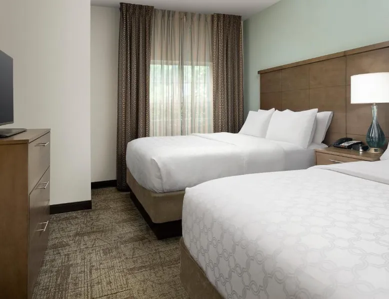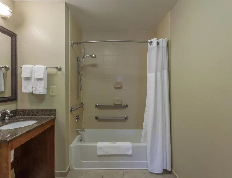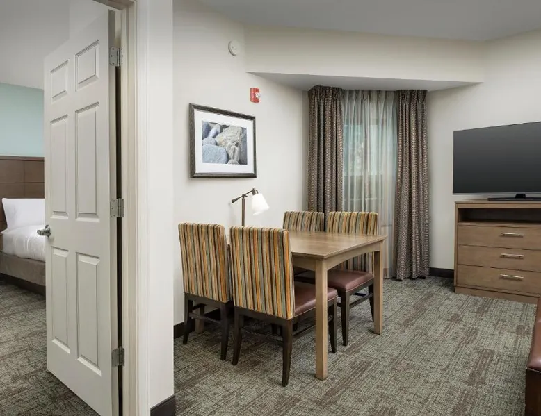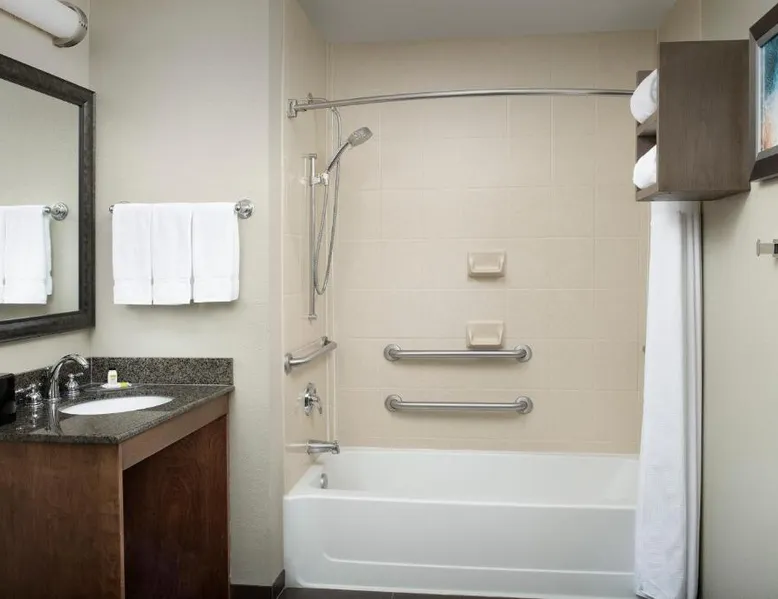 Comfortable Accommodations: Staybridge Suites Greenville I-85 Woodruff Road by IHG in Greenville offers comfortable rooms with air-conditioning, private bathrooms, and fully equipped kitchens. Each room includes a work desk, dining area, and free WiFi. Exceptional Facilities: Guests can enjoy a fitness center, sun terrace, seasonal outdoor swimming pool, and outdoor fireplace. Additional amenities include a lounge, minimarket, business area, and free on-site parking. Delicious Breakfast: A complimentary American buffet breakfast is served daily, highly appreciated by guests. Prime Location: Located 6.8 mi from Greenville-Spartanburg International Airport, the hotel is an 18-minute walk from Frankie S Fun Park. Nearby attractions include Clemson University International Center For Automotive Research (1.9 mi) and Greenville Zoo (7.5 mi). Accessible suite features a separate living room and a kitchenette.