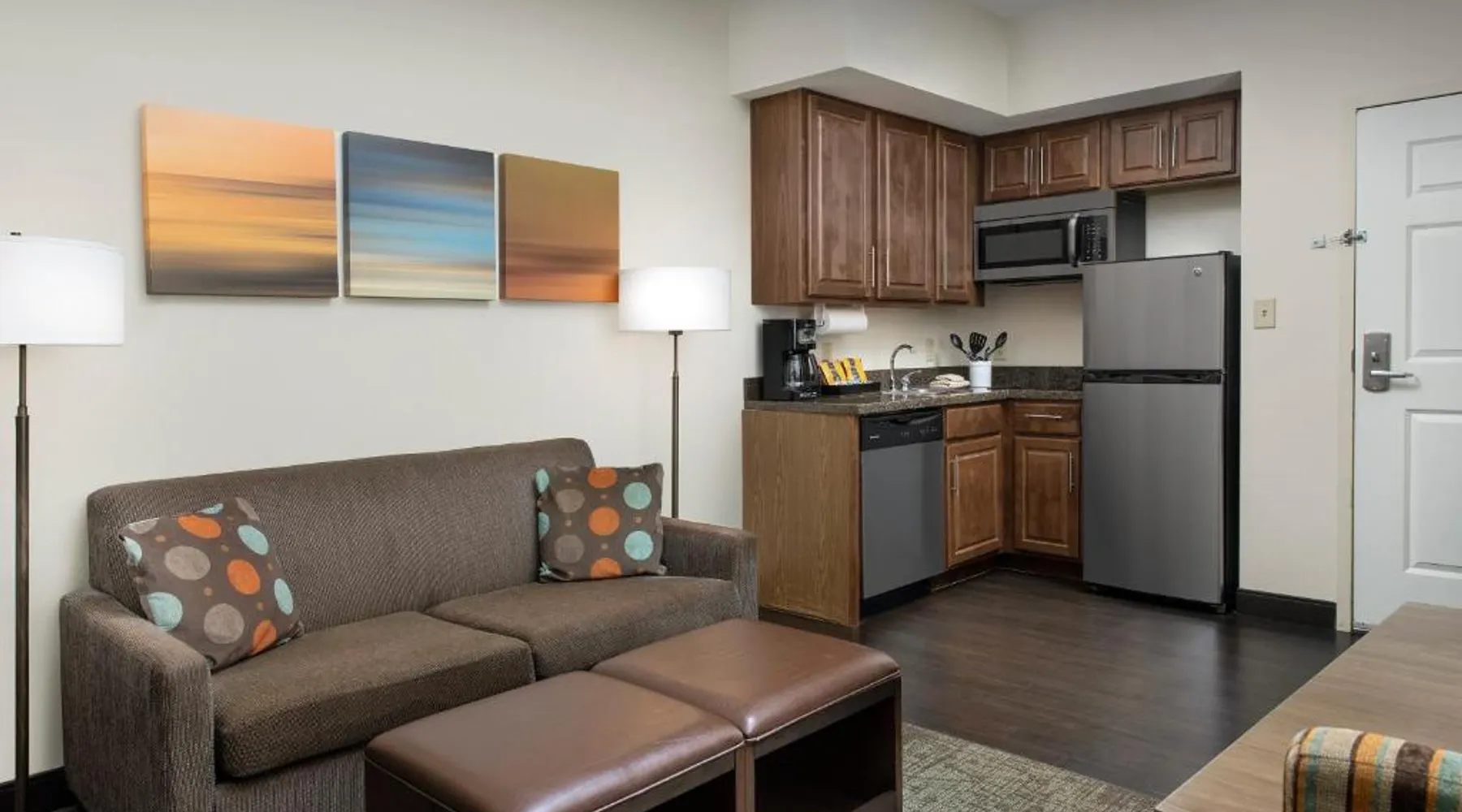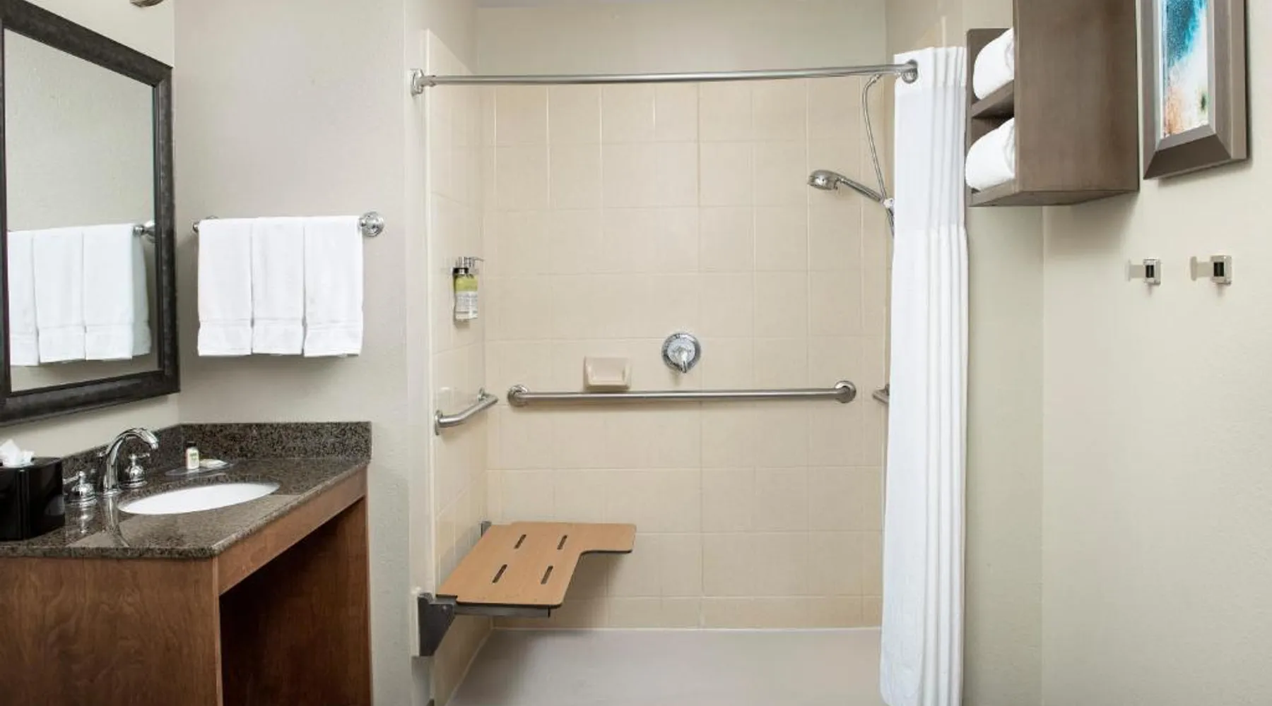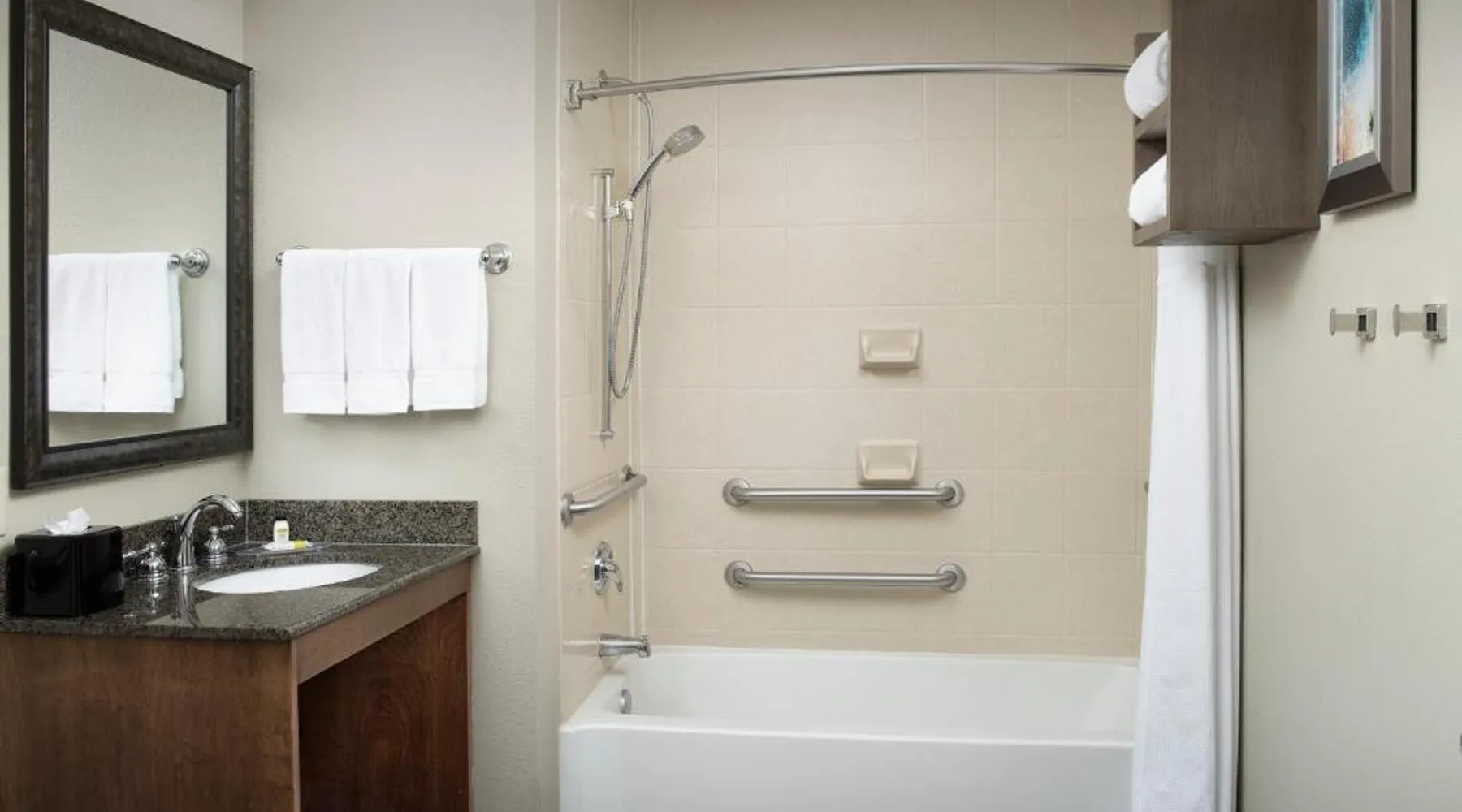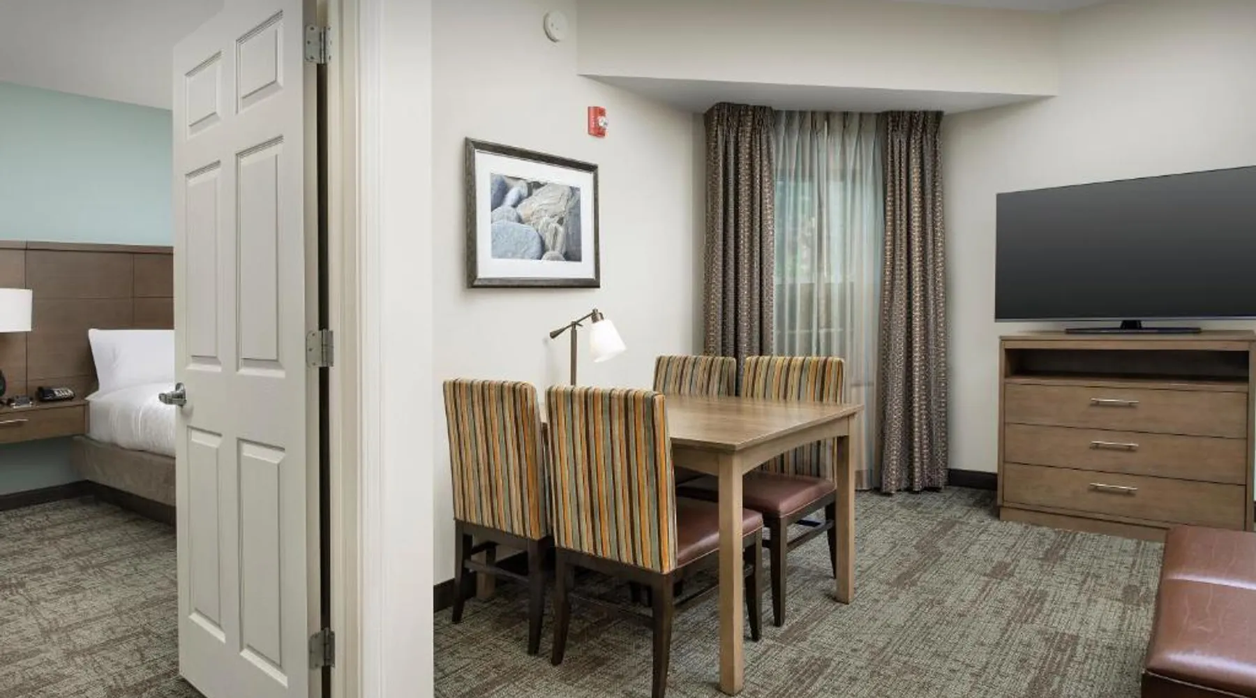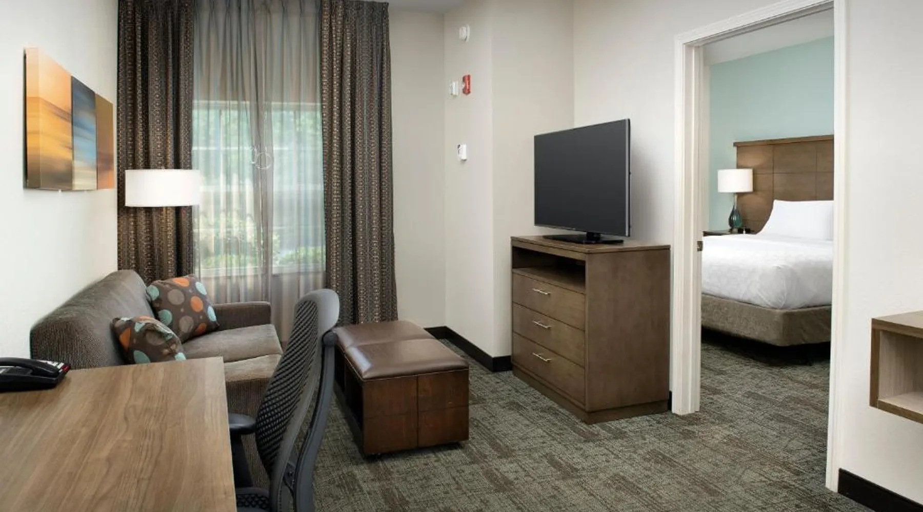 Comfortable Accommodations: Staybridge Suites Greenville I-85 Woodruff Road by IHG in Greenville offers comfortable rooms with air-conditioning, private bathrooms, and fully equipped kitchens. Each room includes a work desk, dining area, and free WiFi. Exceptional Facilities: Guests can enjoy a fitness center, sun terrace, seasonal outdoor swimming pool, and outdoor fireplace. Additional amenities include a lounge, minimarket, business area, and free on-site parking. Delicious Breakfast: A complimentary American buffet breakfast is served daily, highly appreciated by guests. Prime Location: Located 6.8 mi from Greenville-Spartanburg International Airport, the hotel is an 18-minute walk from Frankie S Fun Park. Nearby attractions include Clemson University International Center For Automotive Research (1.9 mi) and Greenville Zoo (7.5 mi). Accessible suite features a separate living room and a kitchenette.