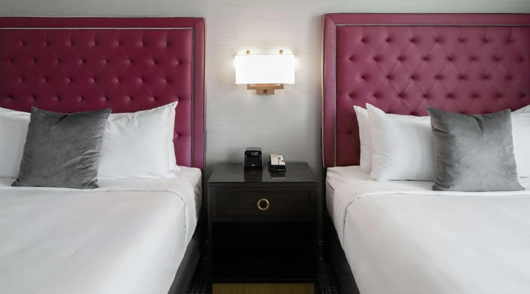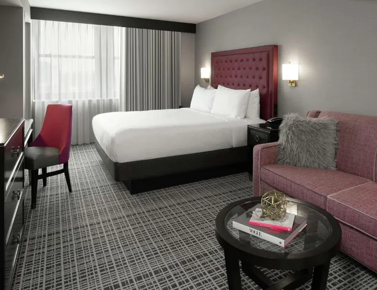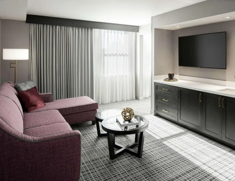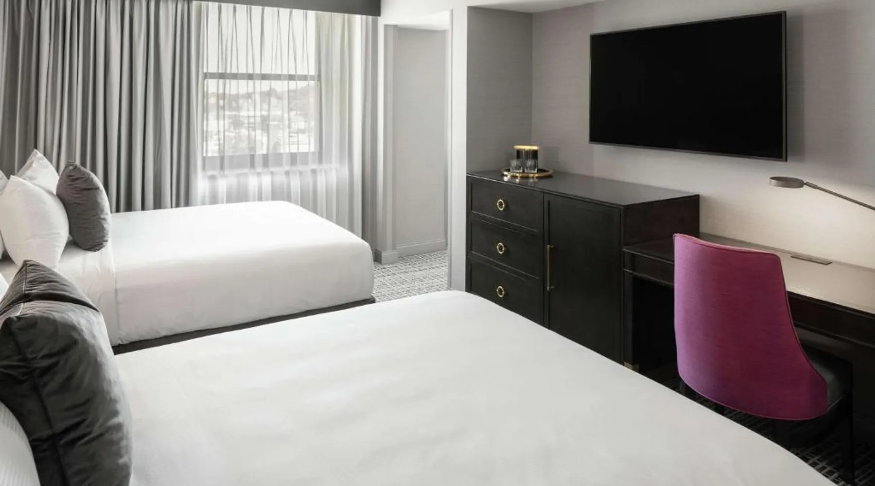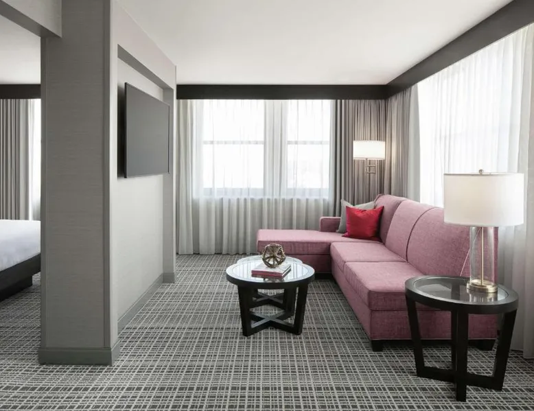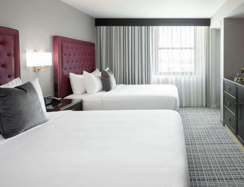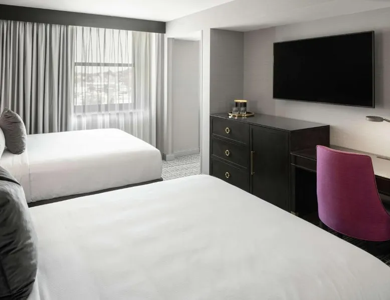 Comfortable Accommodations: The Axis Moline Hotel, Tapestry Collection by Hilton in Moline offers spacious rooms with air-conditioning, free WiFi, and modern amenities. Guests appreciate the room size and comfort. Facilities and Services: The hotel features a fitness center, free airport shuttle service, and free on-site private parking. Additional services include a 24-hour front desk, family rooms, and room service. Prime Location: Located 5 mi from Quad City International Airport, the hotel is less than 0.6 mi from TaxSlayer Center. Nearby attractions include Fryxell Geology Museum (2.2 mi) and Adler Theater (4.3 mi). Guest Satisfaction: Highly rated by guests for its room size, comfort, and location. This suite is air-conditioned and has a flat-screen TV, a tea and coffee maker and heating. The unit has 2 beds.