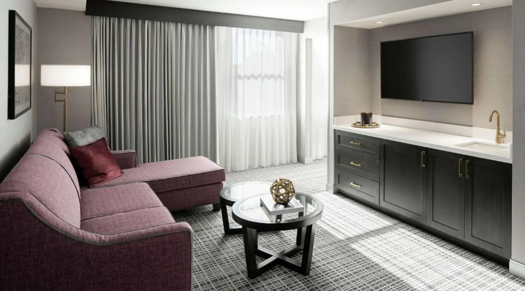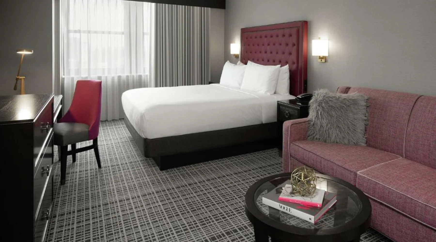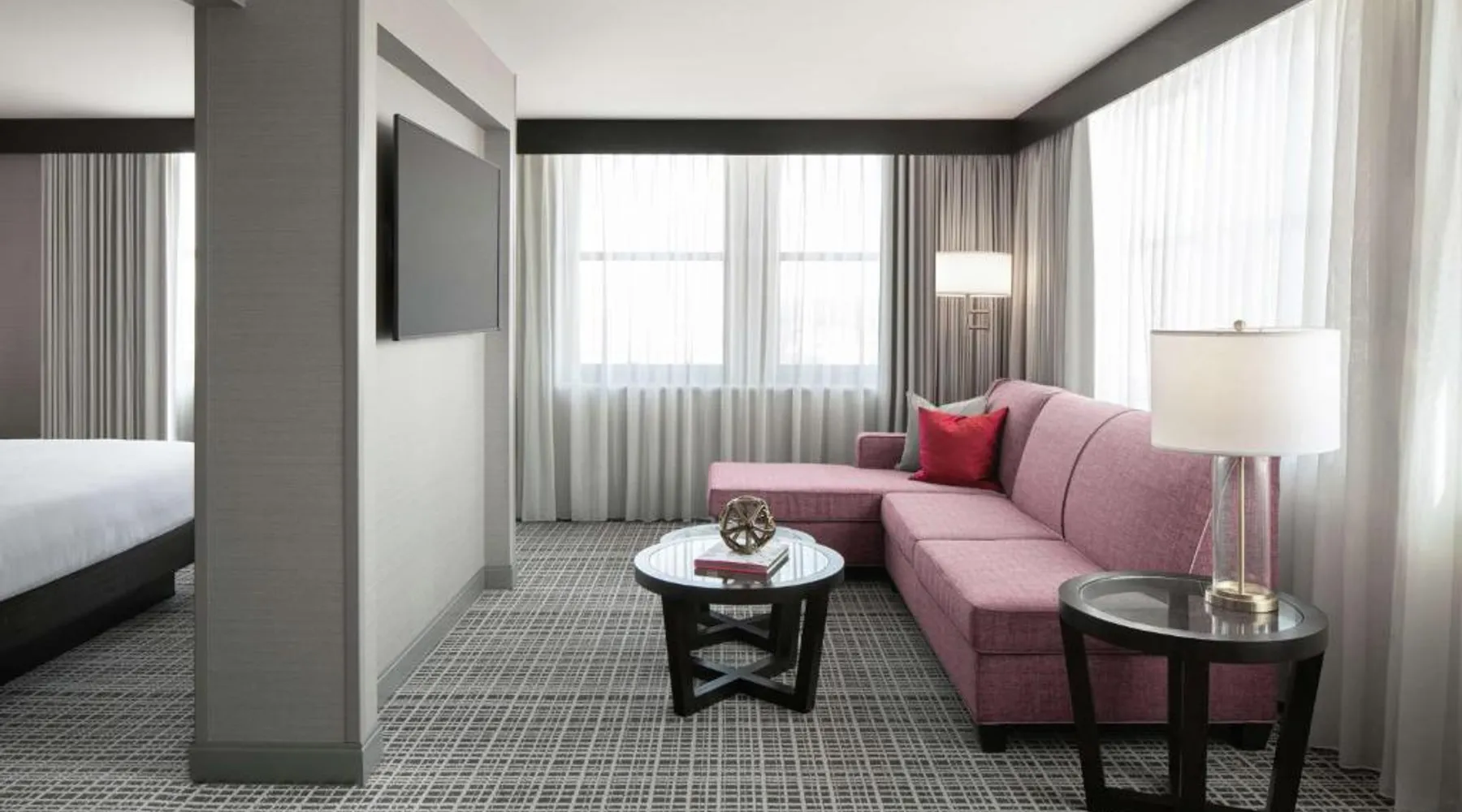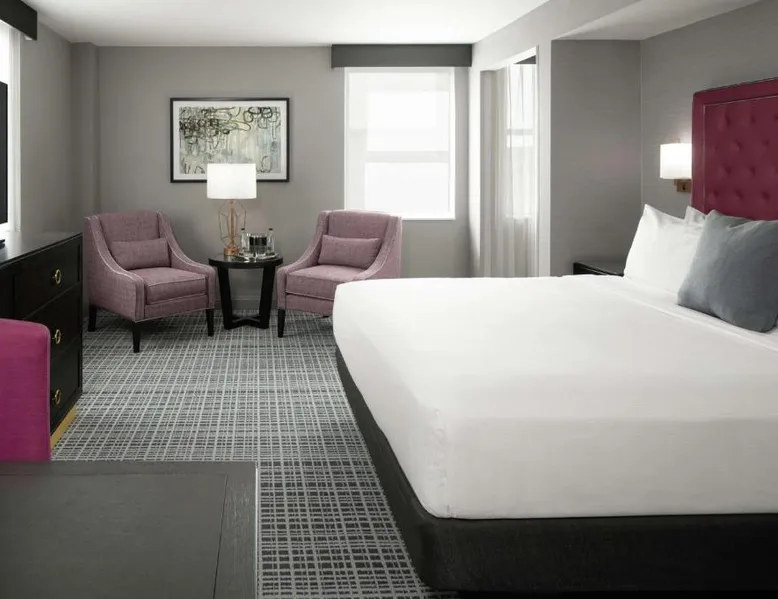 Comfortable Accommodations: The Axis Moline Hotel, Tapestry Collection by Hilton in Moline offers spacious rooms with air-conditioning, free WiFi, and modern amenities. Guests appreciate the room size and comfort. Facilities and Services: The hotel features a fitness center, free airport shuttle service, and free on-site private parking. Additional services include a 24-hour front desk, family rooms, and room service. Prime Location: Located 5 mi from Quad City International Airport, the hotel is less than 0.6 mi from TaxSlayer Center. Nearby attractions include Fryxell Geology Museum (2.2 mi) and Adler Theater (4.3 mi). Guest Satisfaction: Highly rated by guests for its room size, comfort, and location. This suite is air-conditioned and has a flat-screen TV, a tea and coffee maker and heating. The unit has 2 beds.