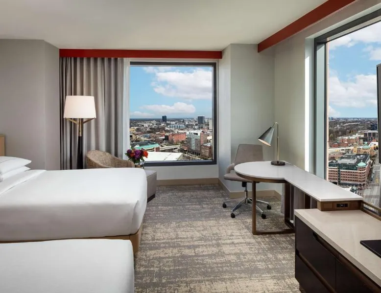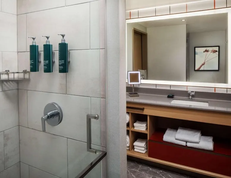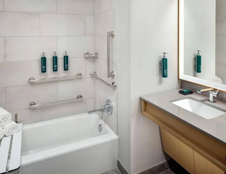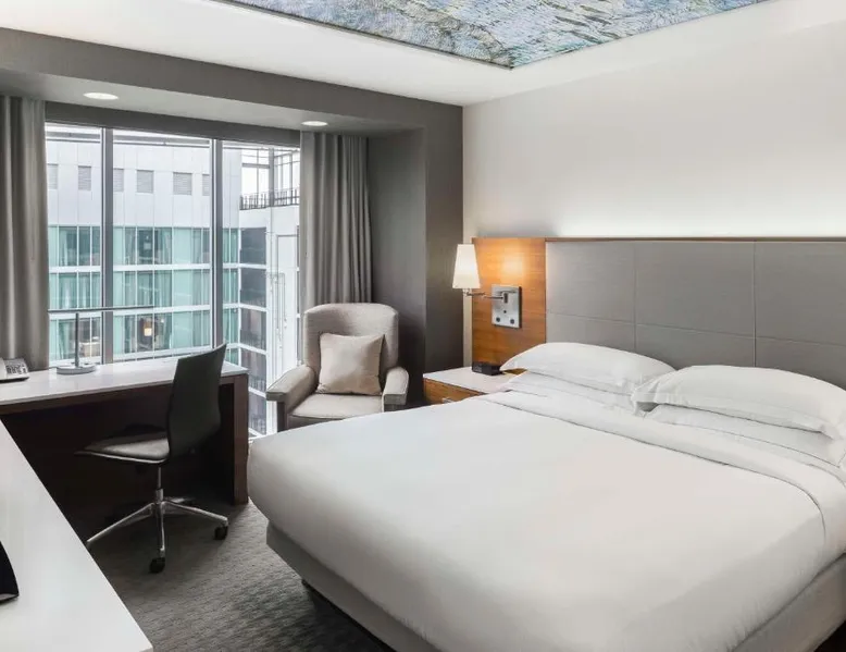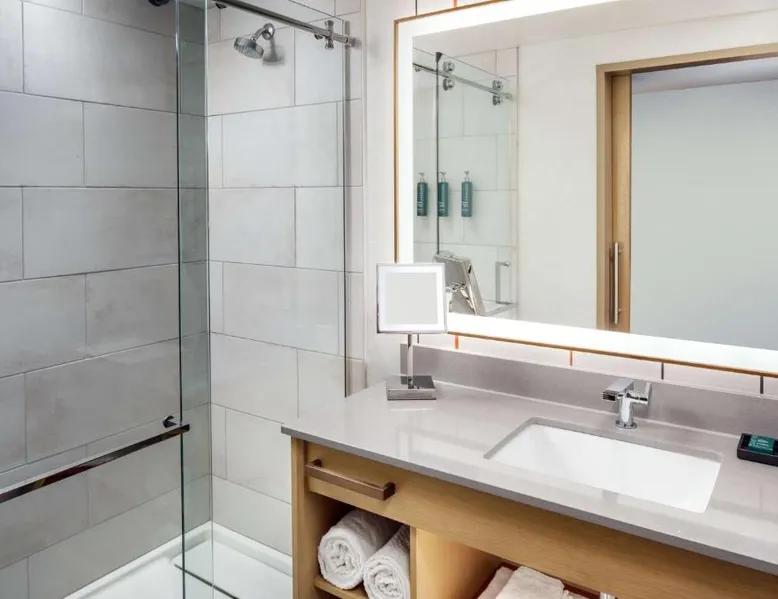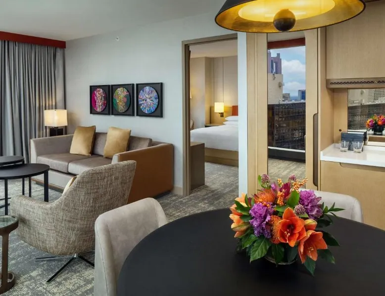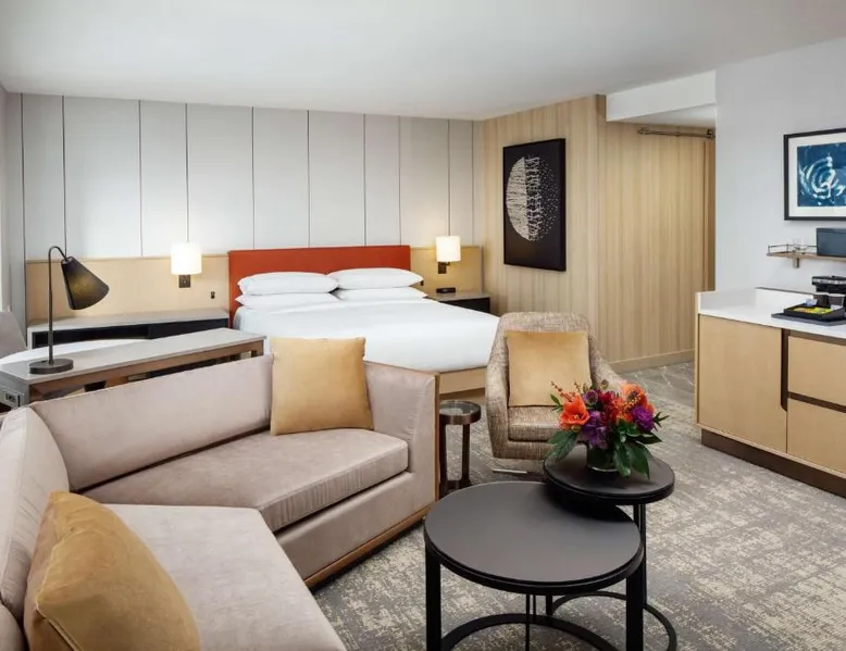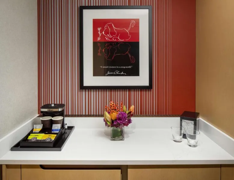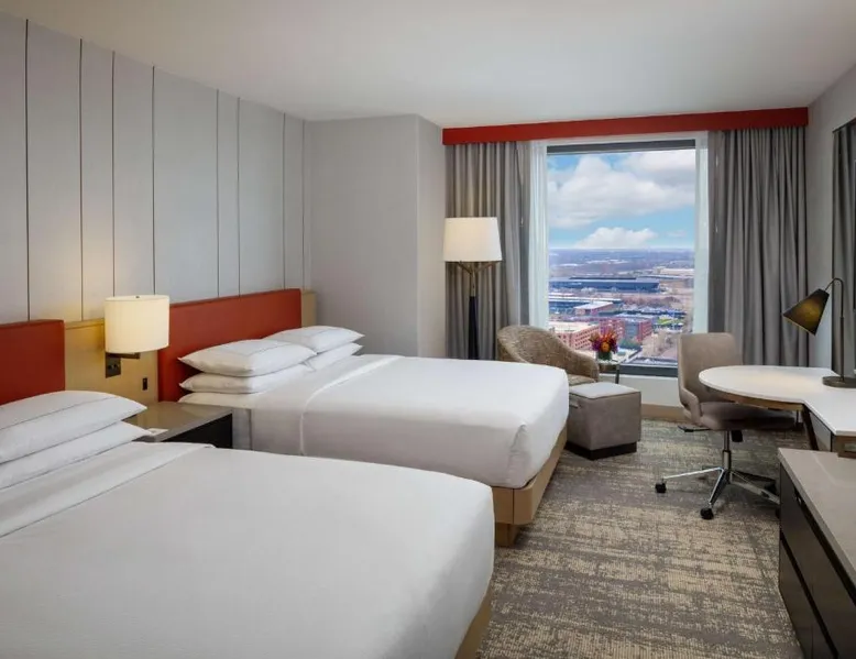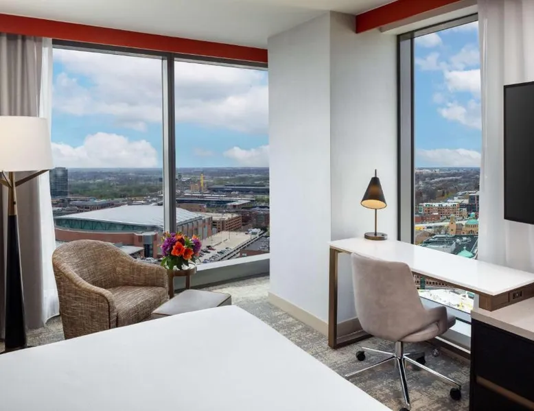 This Hilton hotel in Columbus, Ohio is 11 minutes’ drive to the Port Columbus International Airport and Ohio State University is 2 miles away from the property. The hotel features a stunning art collection which consists of of over 150 original pieces by Central Ohio artists. The artwork is displayed in function spaces, guest rooms and public areas at the hotel—a unique cultural experience. Each room is equipped with a flat-screen cable TV. A refrigerator and free toiletries in the private bathrooms are also included in each room at the Hilton Columbus Downtown. The suites offer a sofa bed. Guests staying at the Downtown Columbus Hilton can enjoy swimming in the indoor pool or working out in the fitness center. Fax and photocopying services are also available. Greater Columbus Convention Center is opposite the hotel, over 300 dining and entertainment venues are within walking distance and Goodale Park is 10 minutes’ walk away. Nationwide Arena 0.3 miles away. A flat-screen cable TV and a refrigerator is included in this room.
