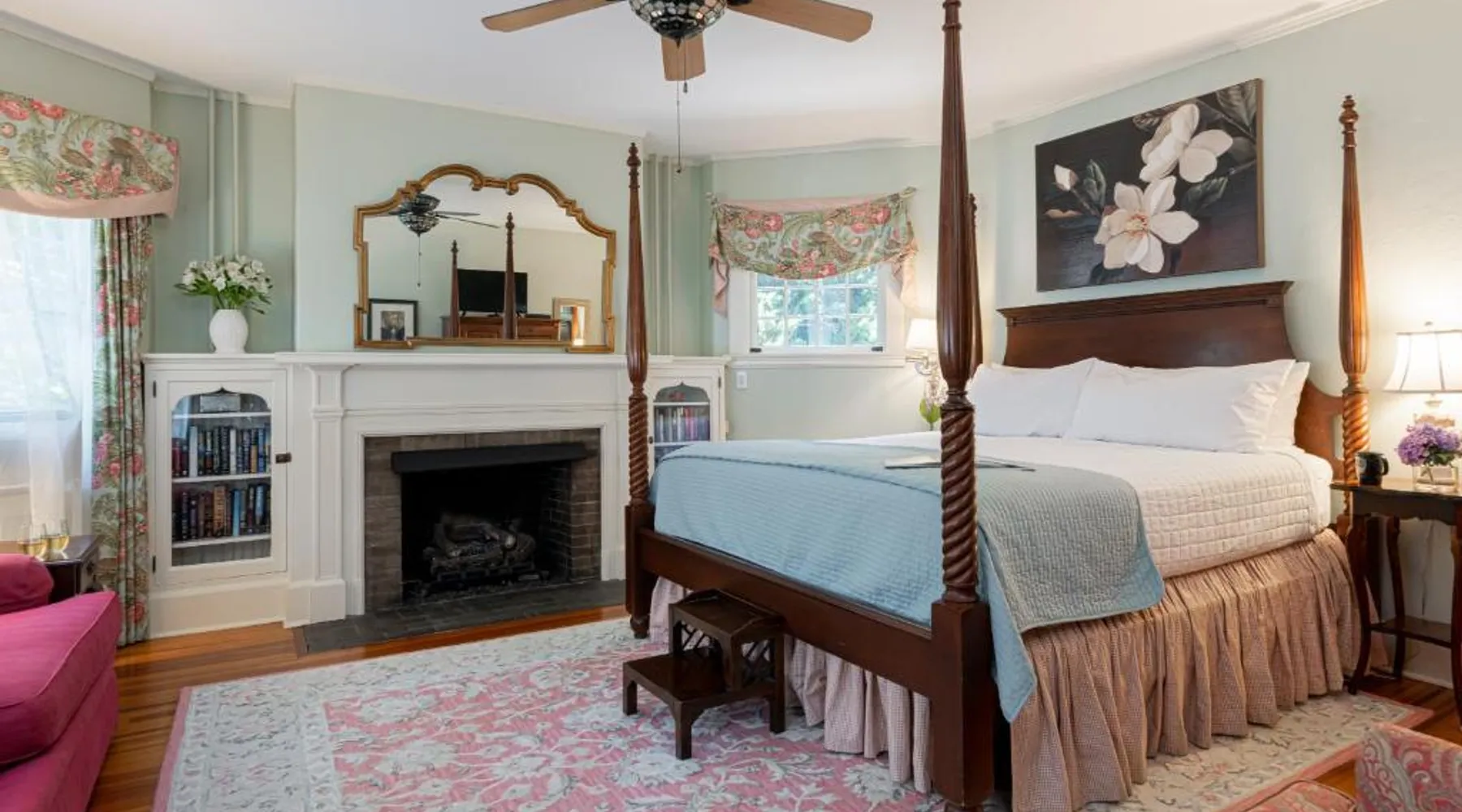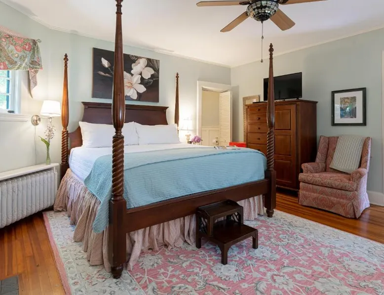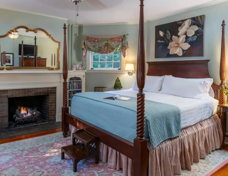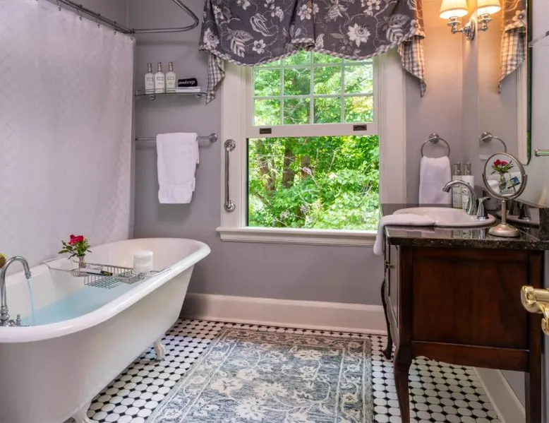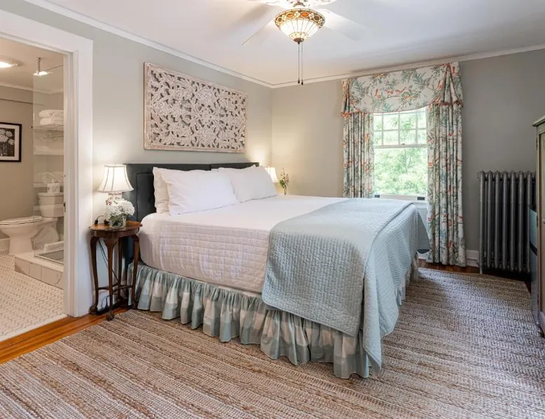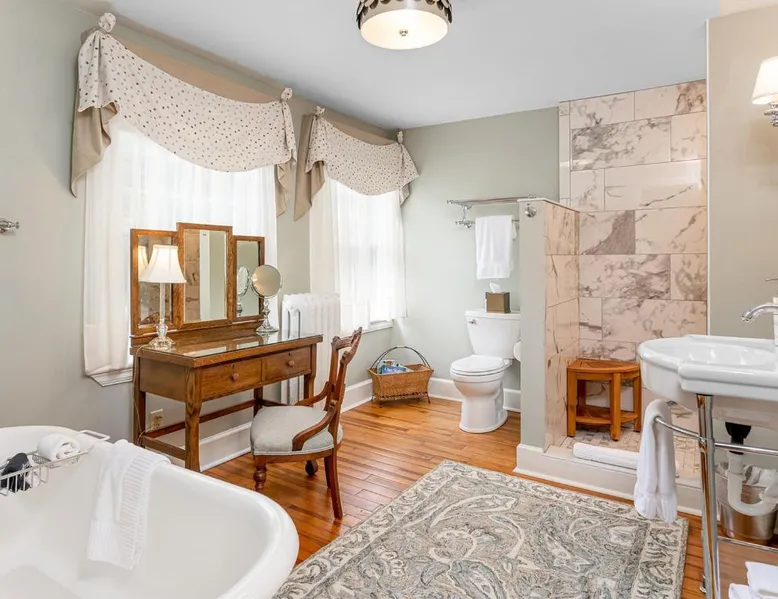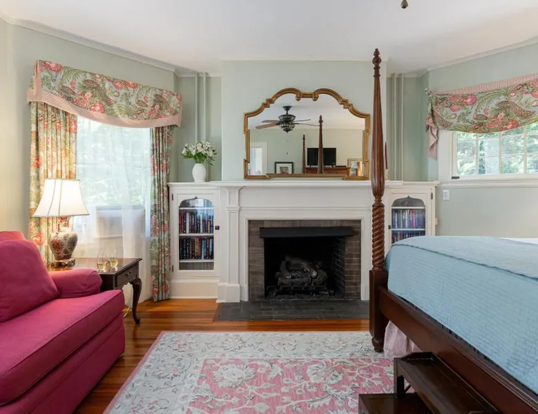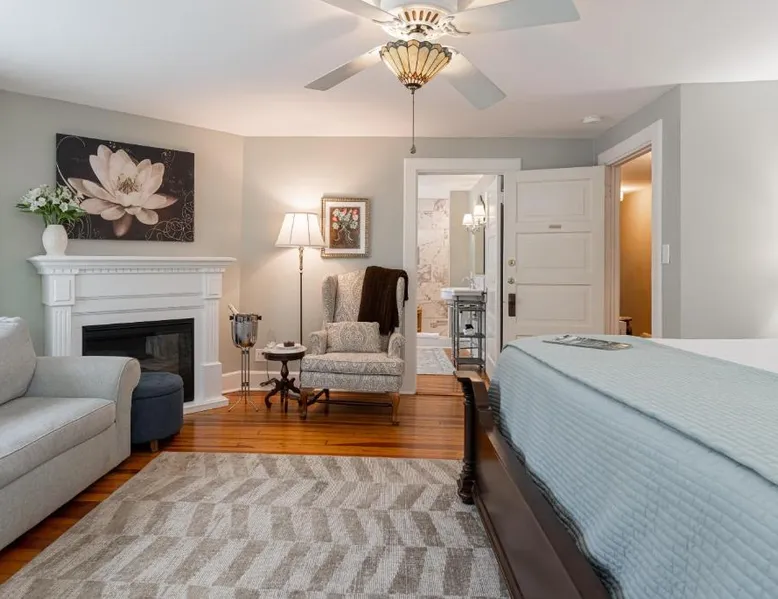 Elegant Accommodations: Pinecrest Bed & Breakfast in Asheville offers a recently renovated adults-only environment with a beautiful garden and terrace. Free WiFi is available throughout the property. Comfortable Amenities: Guests enjoy air-conditioning, private bathrooms with walk-in showers, fireplaces, and garden views. Additional amenities include bathrobes, parquet floors, and free toiletries. Delicious Breakfast: A variety of breakfast options are available, including American, vegetarian, vegan, and gluten-free. Local specialties, fresh pastries, pancakes, cheese, fruits, and warm dishes are served. Convenient Location: Located 13 mi from Asheville Regional Airport, the property is close to attractions such as the Botanical Gardens (16-minute walk) and Biltmore Estate (6.2 mi). Boating is available in the surroundings. Highly rated by guests. Located on the second floor, this room features a mahogany Victorian bed and wood floors. A seating area with an electric fireplace is provided. A private bath with a claw foot tub/shower combination and antique vanity is included.